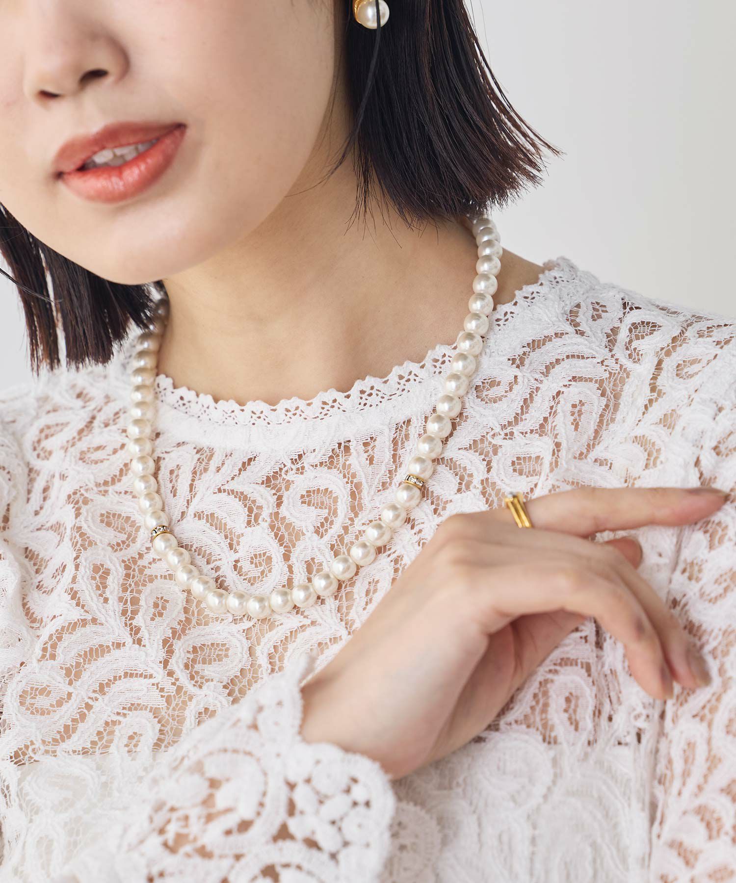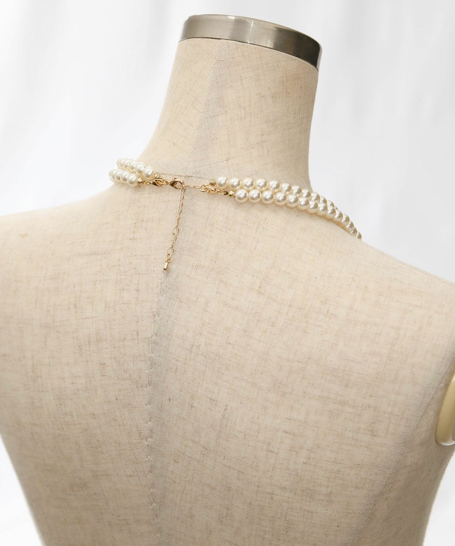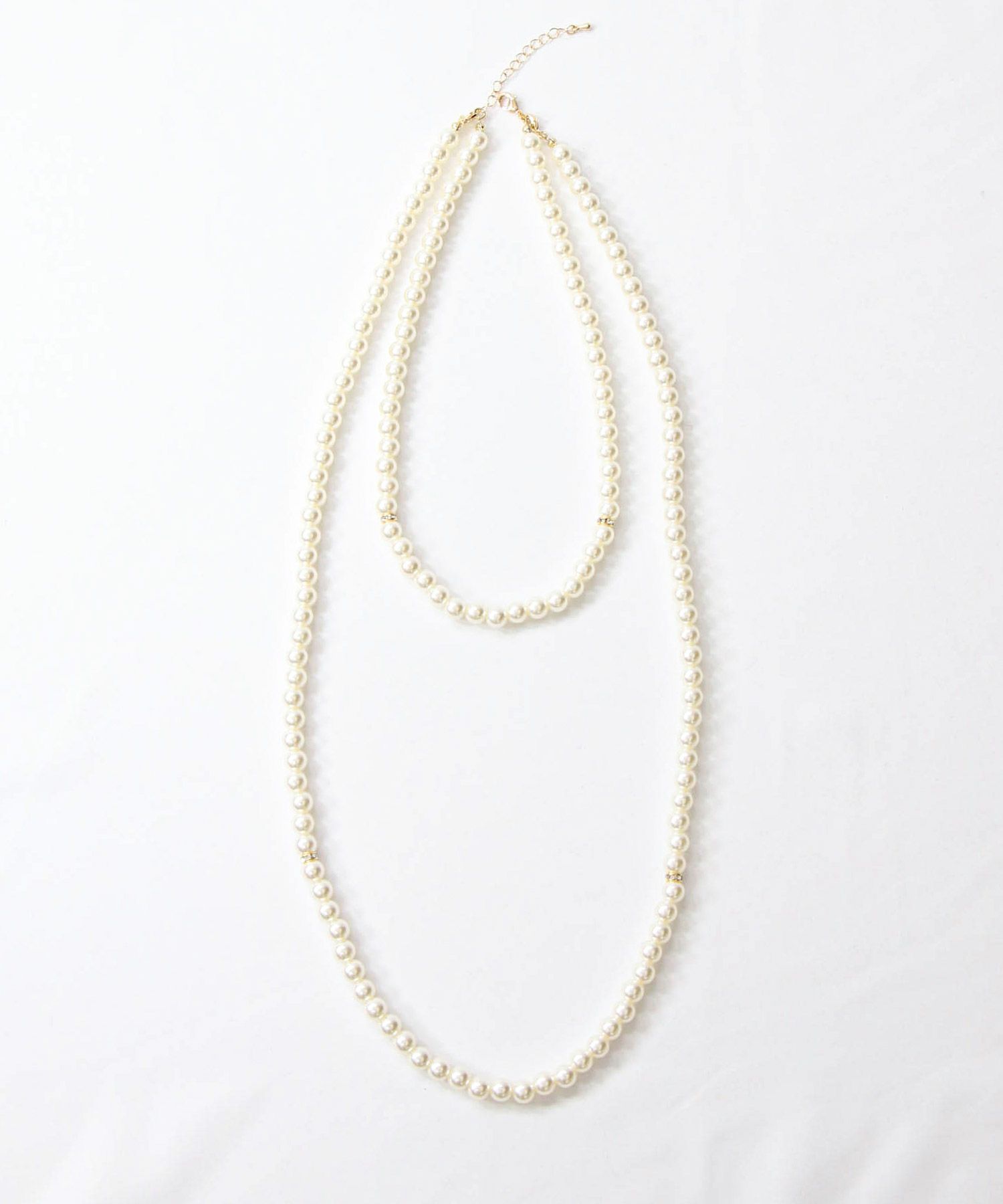 春にかけて増えるフォーマルなシーンに便利なパールネックレスは長さ違いの2連になっていて、別々使っても、重ねても使える3WAY仕様。