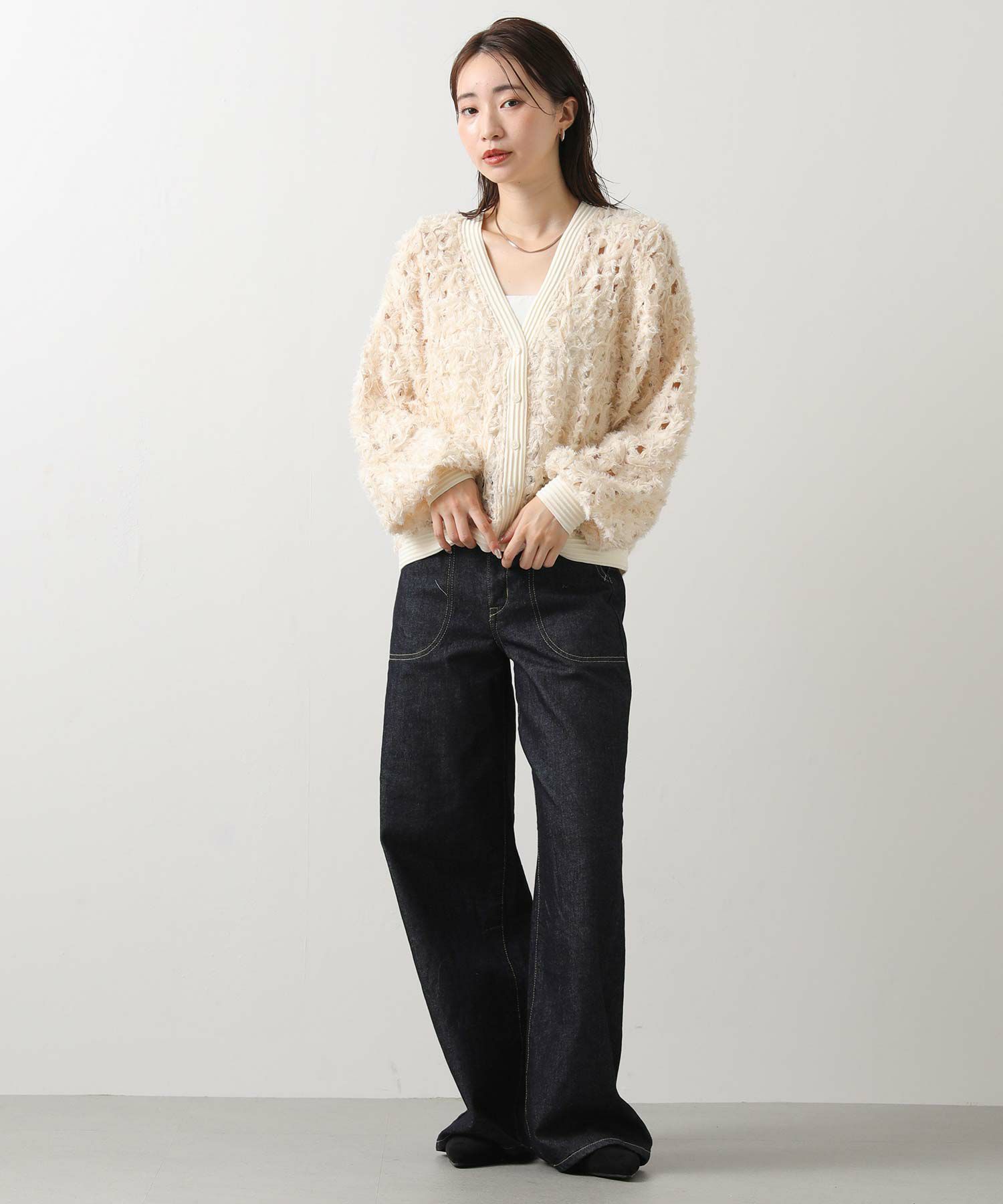※着用画像は撮影状況、光の当たり具合で色みが違って見える場合がございます。実際の色みについては、画像一覧の最後に掲載している詳細画像をご参照ください。