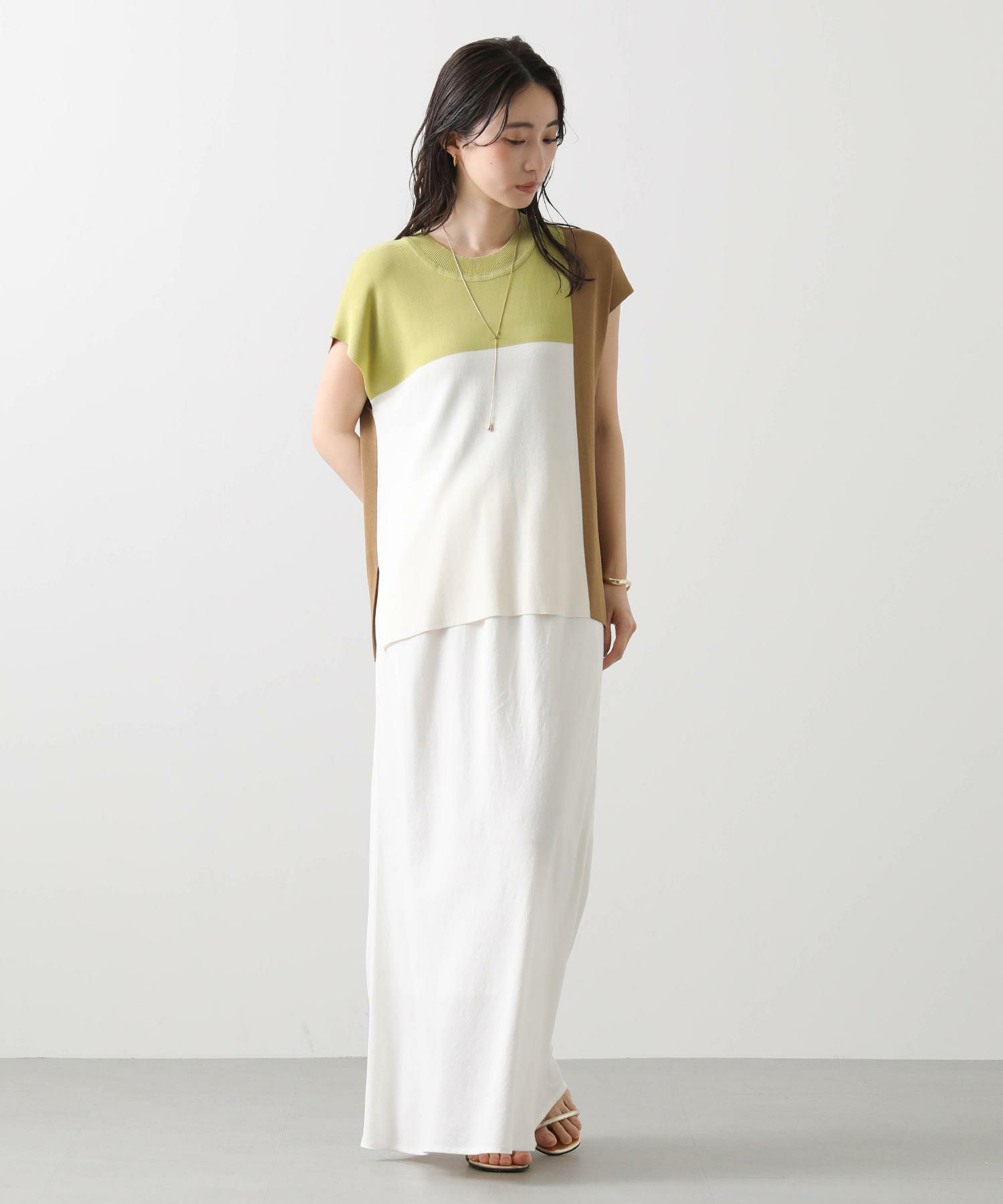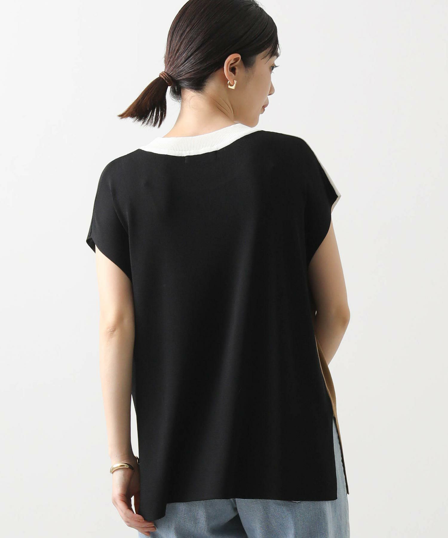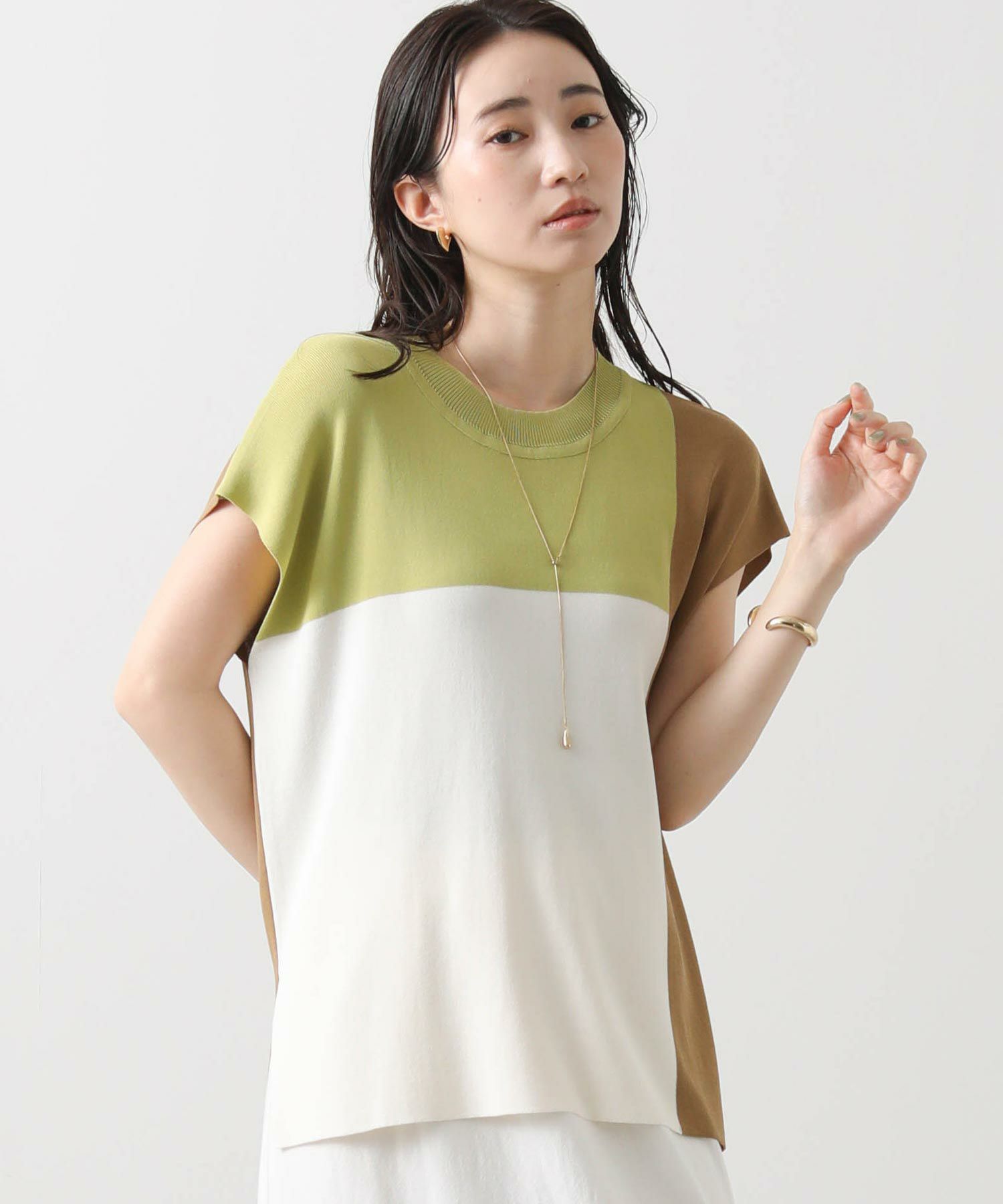 カラー配色が目を惹くサマーニットトップス。