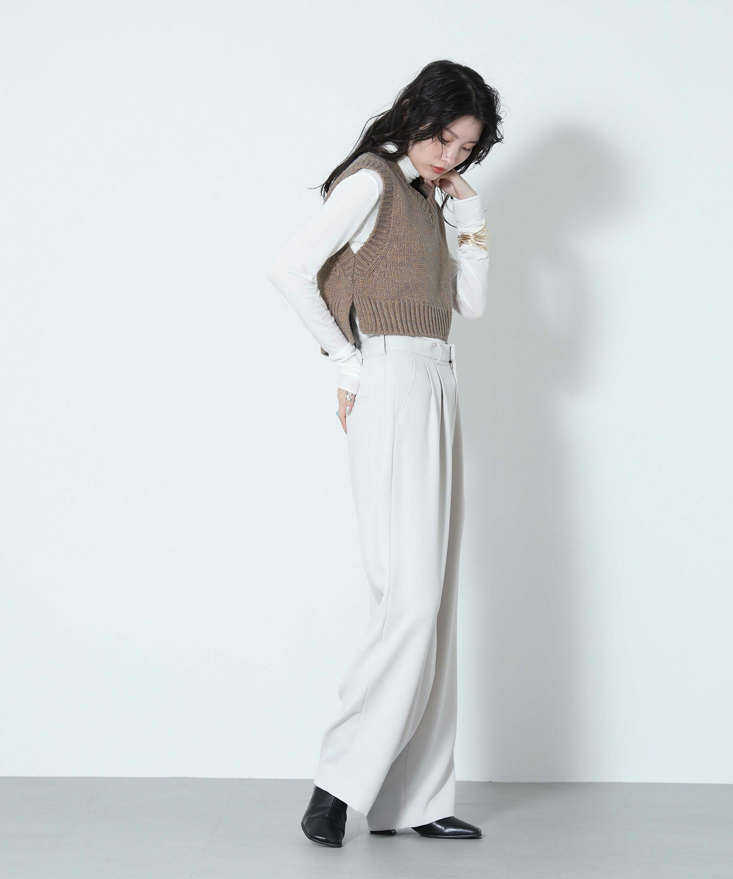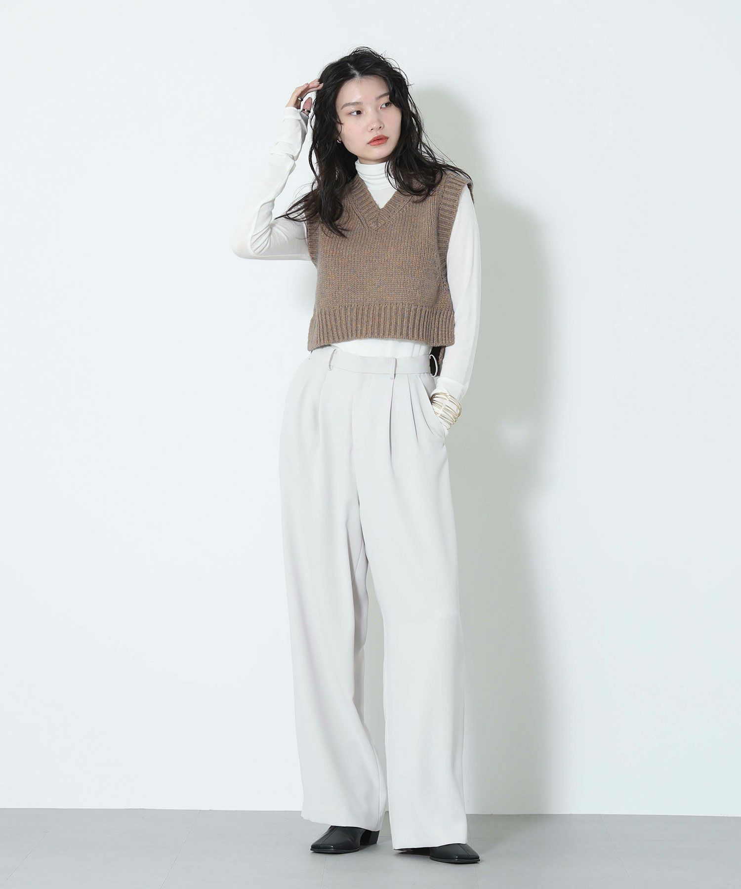 ※着用画像は撮影状況、光の当たり具合で色みが違って見える場合がございます。実際の色みについては、画像一覧の最後に掲載している詳細画像をご参照ください。