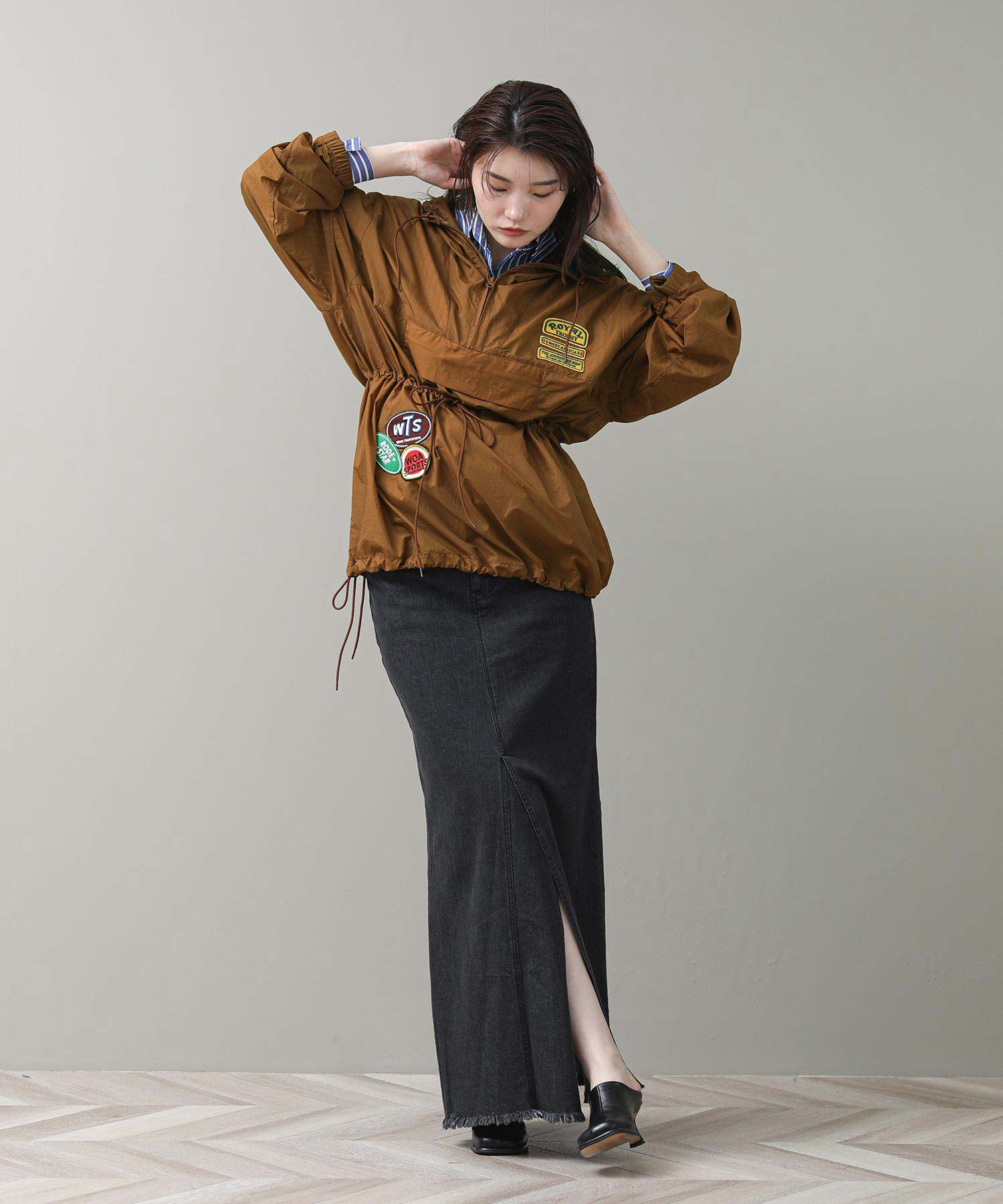 キャッチーなワッペンが目を惹くKENDAIらしいユニークなアイテムです。オーバーサイズなのでウエストをぎゅっと絞って着るのとバランス◎シャツをインしたり、タイトスカートなど女性らしいアイテムをのミックススタイルがおすすめです。