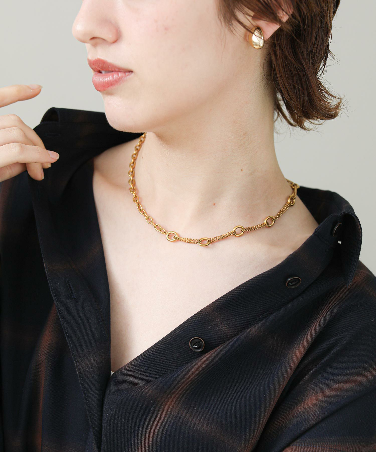 コンパクトで装着しやすく、カジュアルからきれいめまで幅広いスタイリングにマッチするのが魅力。シックなゴールドカラーが上品で顔回りに華やかさをプラスしてくれます。