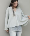 光沢のある糸が上品な印象です。程よいハリ感があり肌離れも良く快適な着心地です。デコルテが綺麗に見えるVネックもポイント。スナップ釦なので前を留めてきるとすっきりと着ていただけます。