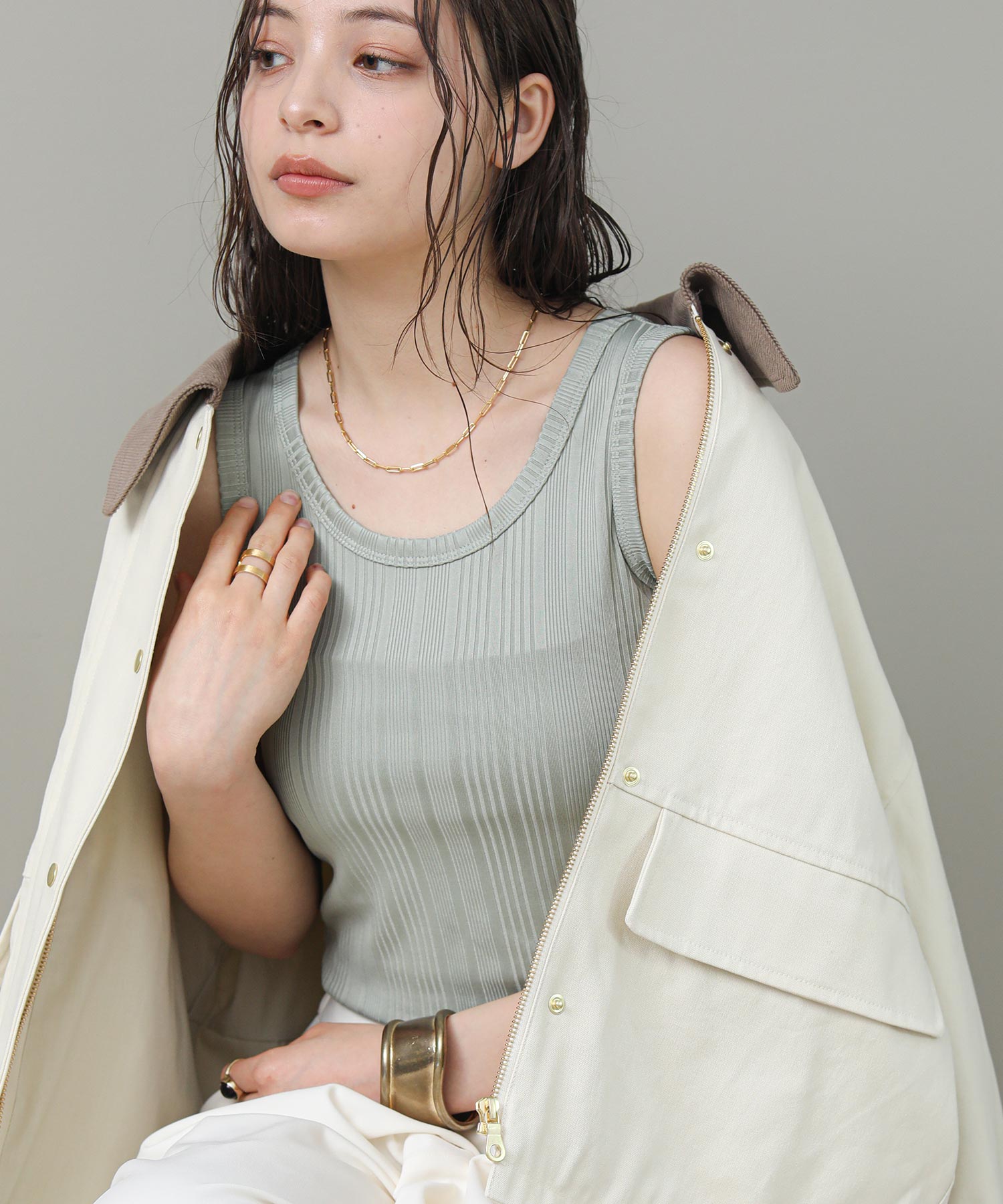 ※着用画像は撮影状況、光の当たり具合で色みが違って見える場合がございます。実際の色みについては、画像一覧の最後に掲載している詳細画像をご参照ください。