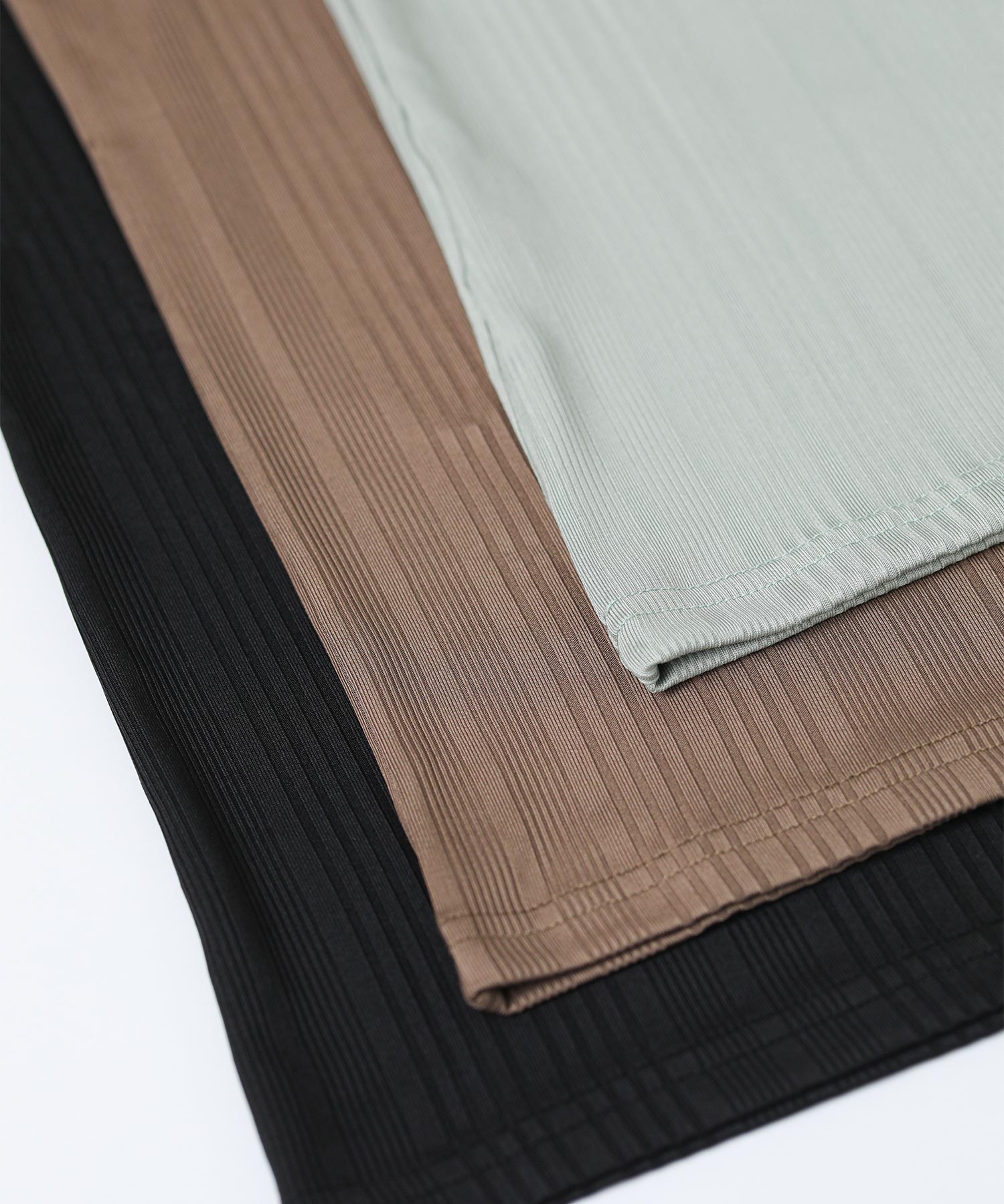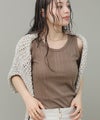 程よく光沢のある素材感とランダムなテレコでツヤがあり、大人な雰囲気です。これからのシーズンシャツやジャケットのインナーに重宝します。さりげなく、アメスリになっているので、1枚でヘルシーな肌見せも◎