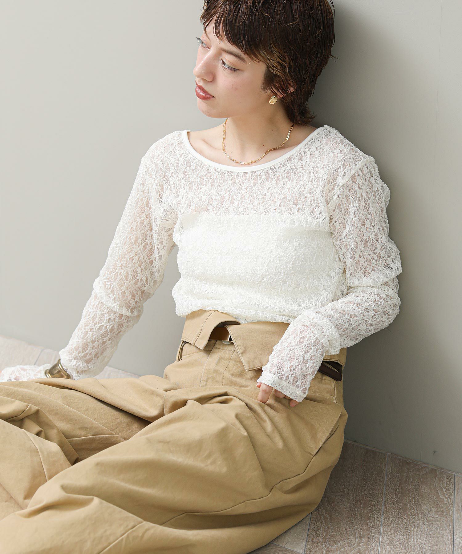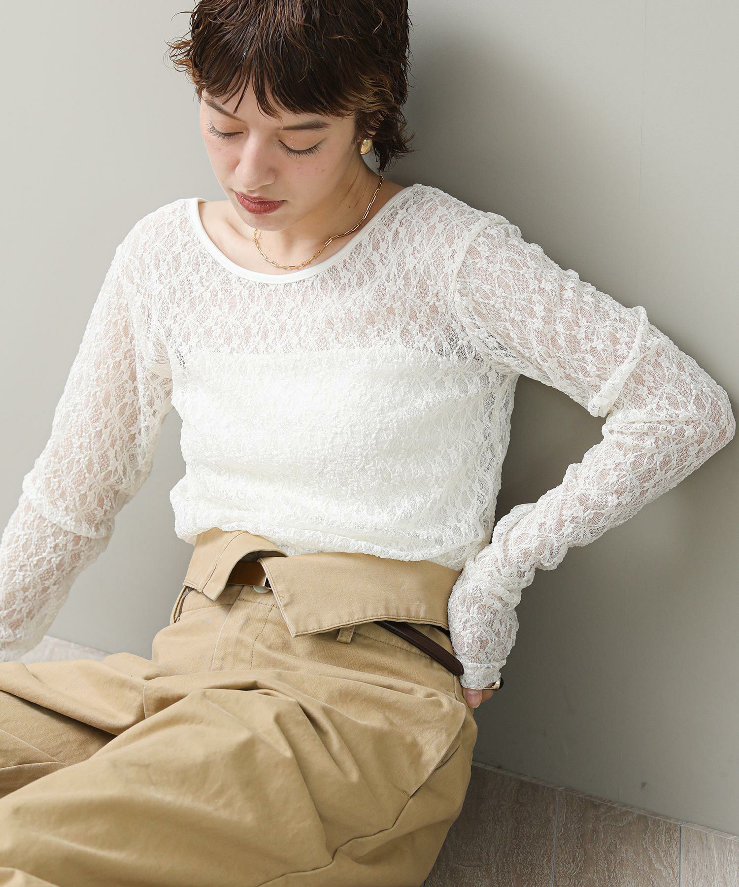 エレガントな雰囲気とは相反してしっかりとしたストレッチがあり、着心地抜群です。程よいシアー感でスタイルに奥行きを与えてくれるアイテム。ニットやシャツの下からレースの袖を覗かせてくしゅっとさせるスタイリングもおすすめです。 一枚で着てもレイヤードのインナーとしても着用でき、長く愛用していただけます。