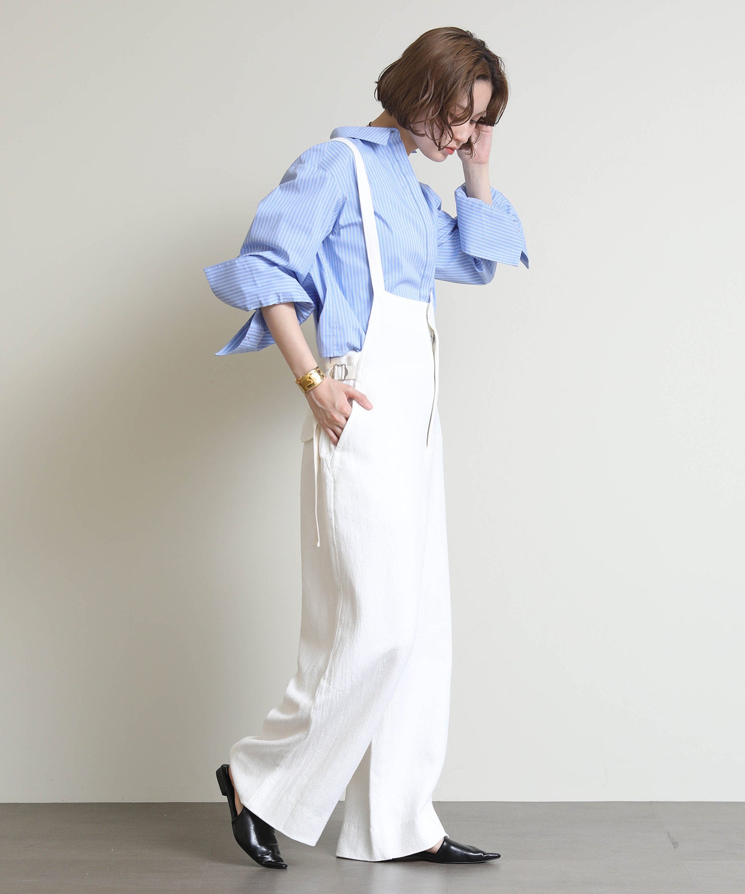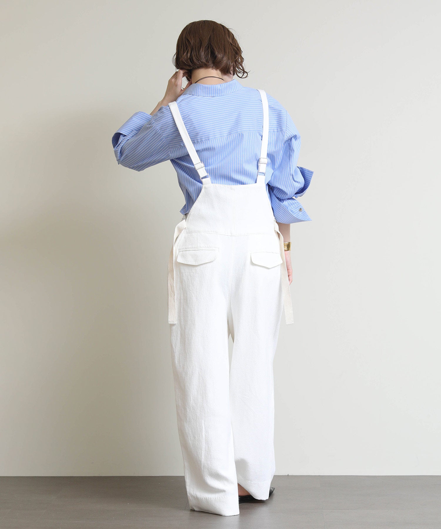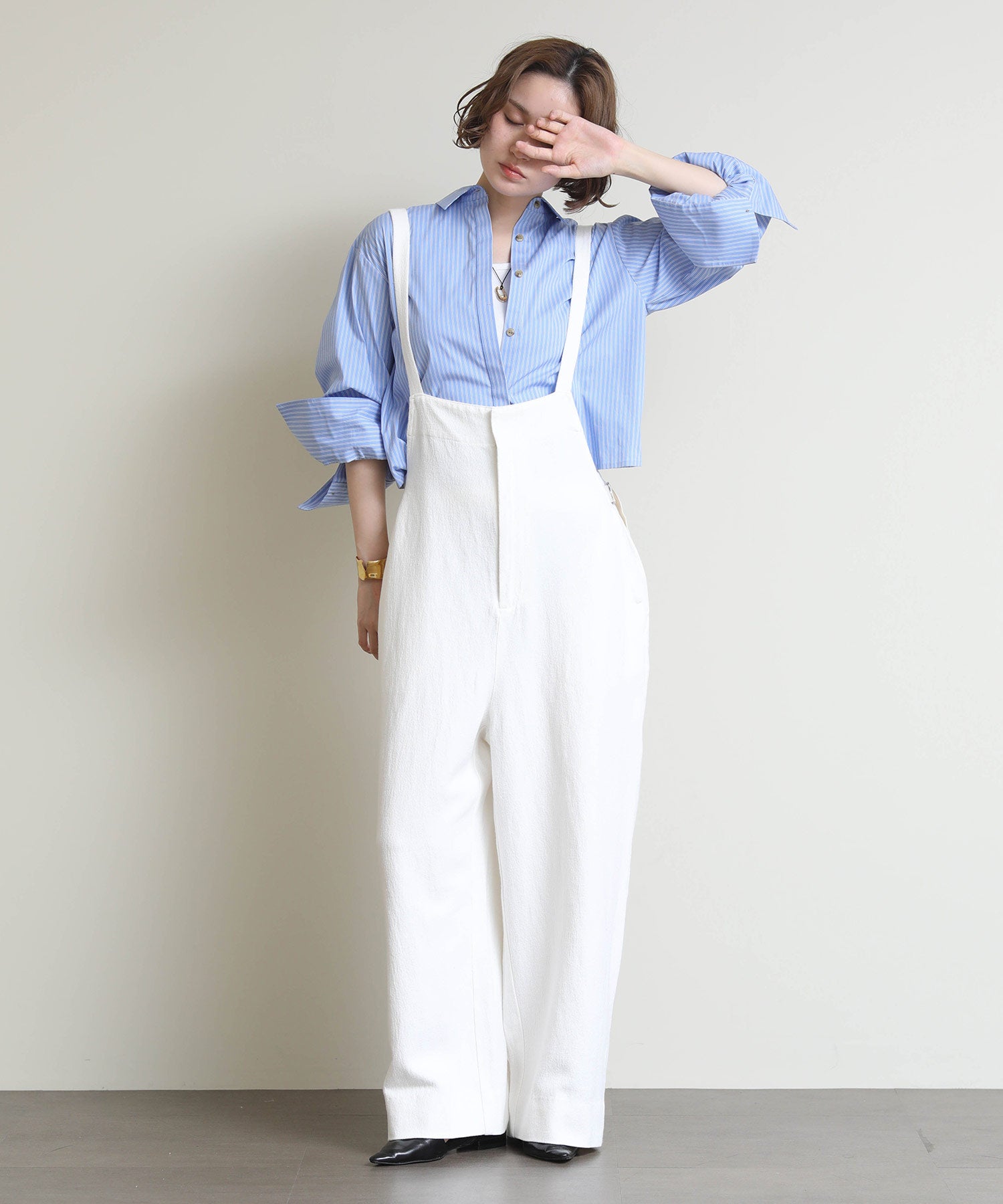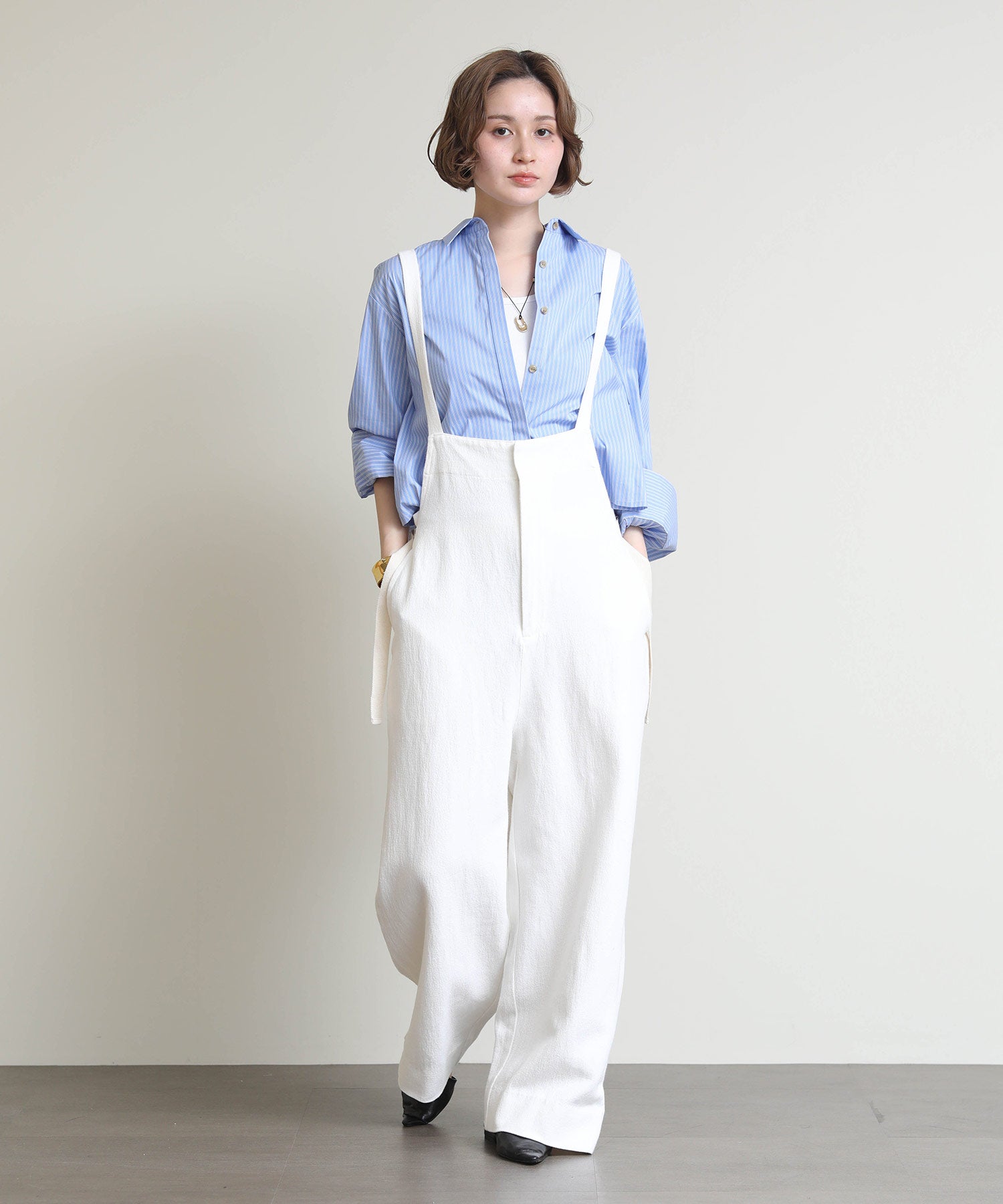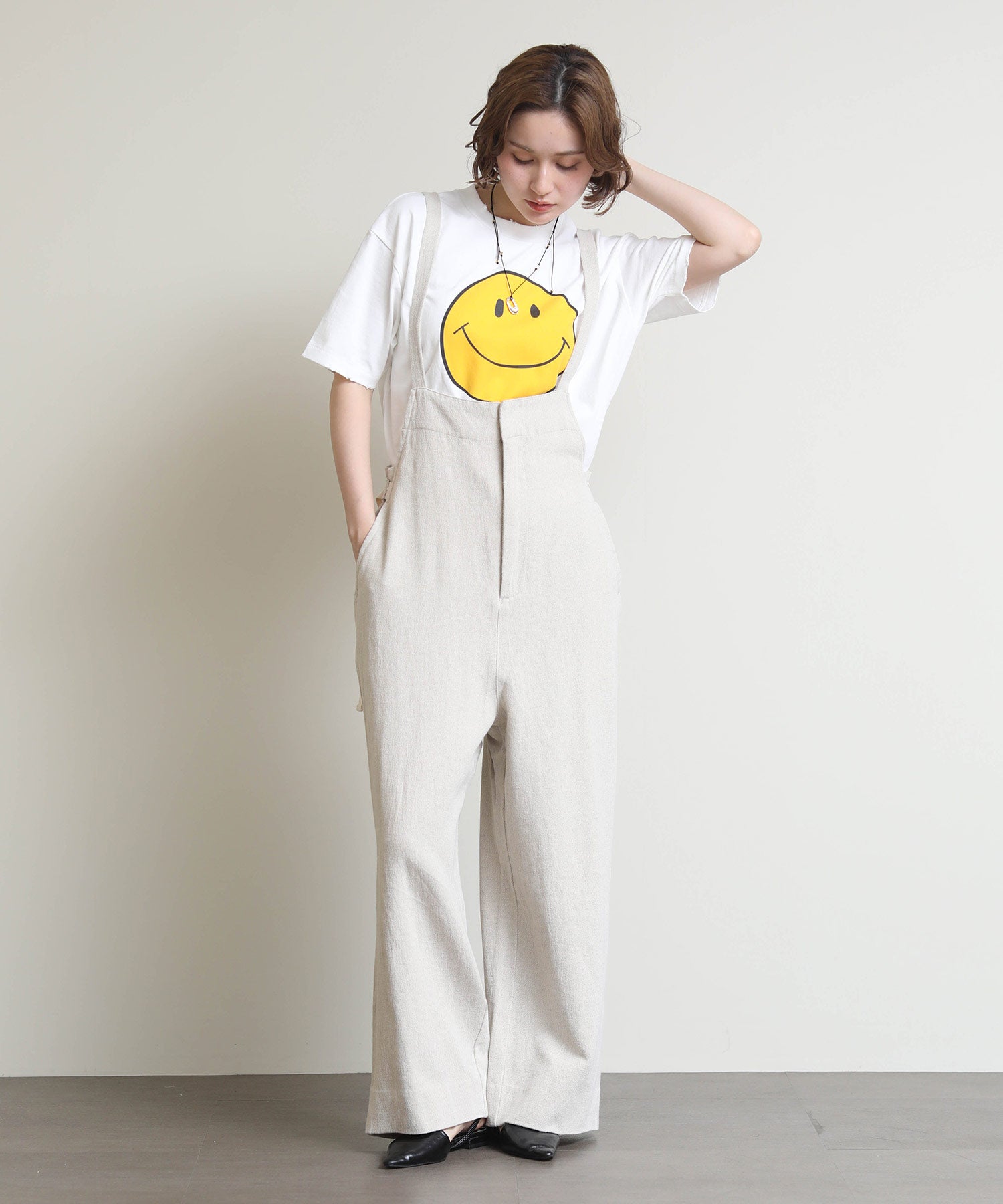 こなれ感たっぷりのシーズンライクなデッキサロペット。