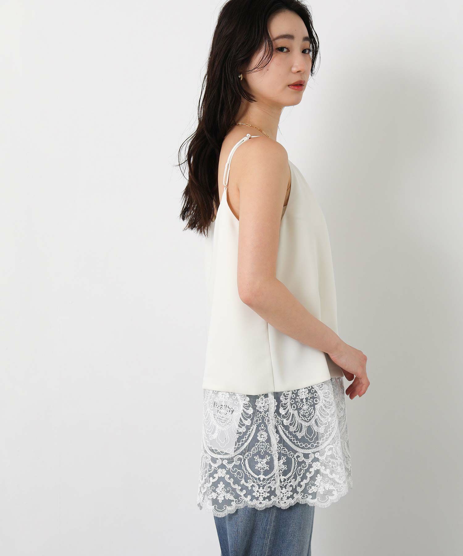 たっぷり刺繍を施した華やかなレースがポイント。肩紐は調節可能なので着丈のアレンジも可能。