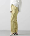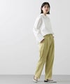 上品なツヤとコシのあるテンセル生地は、程よく落ち感があり脚のラインを拾いにくく細見え効果も抜群。両サイドに入れた切替のラインが脚をまっすぐ長く見せてくれます。