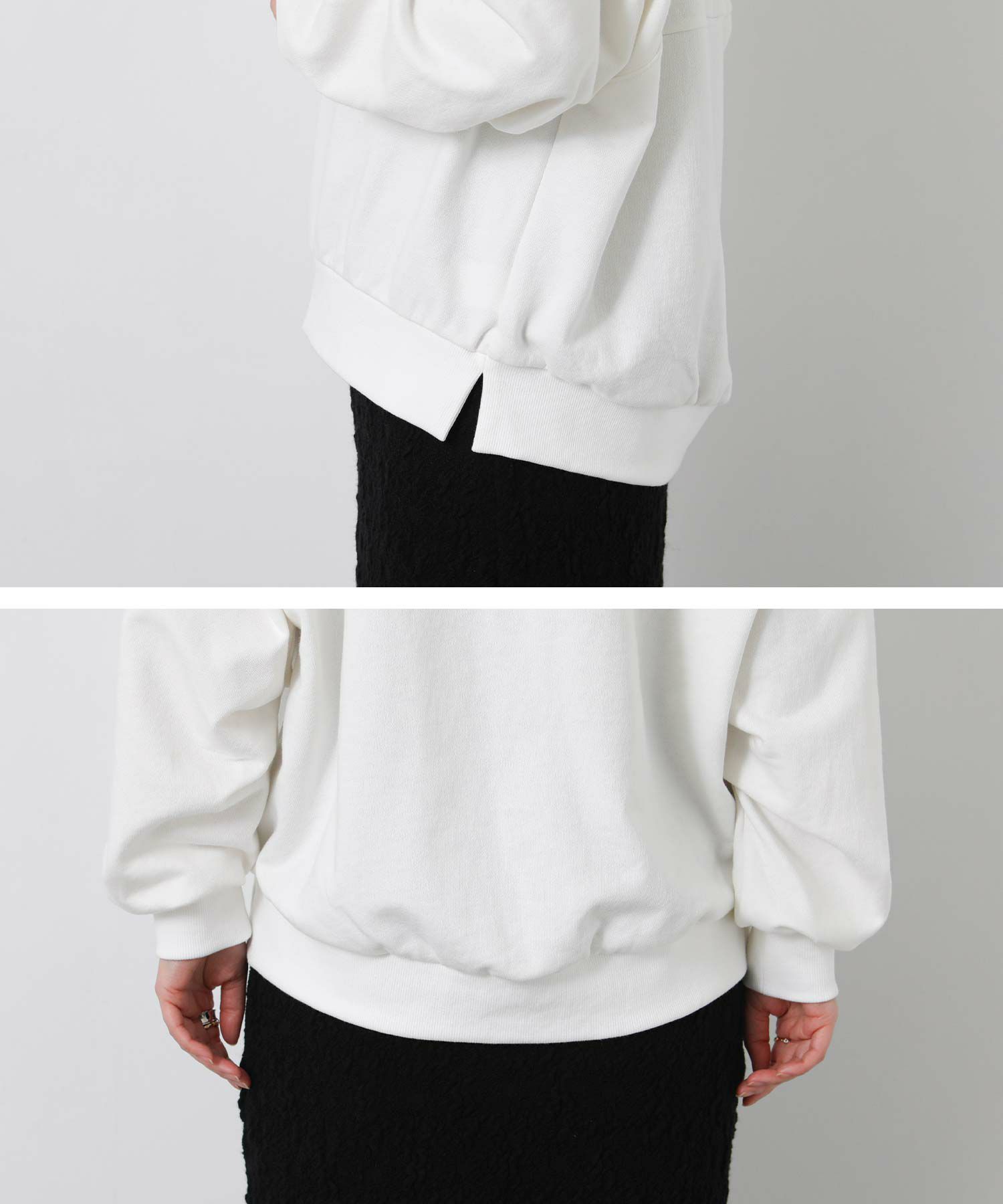 長いシーズン着用できる厚すぎない裏毛で、春のカジュアルスタイルにオススメ。