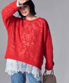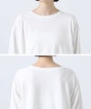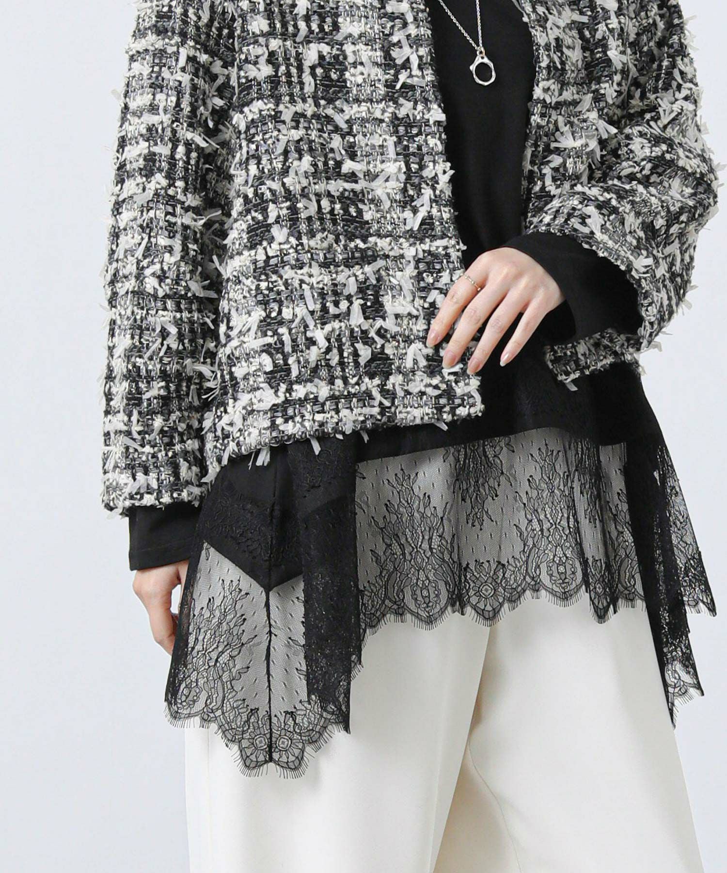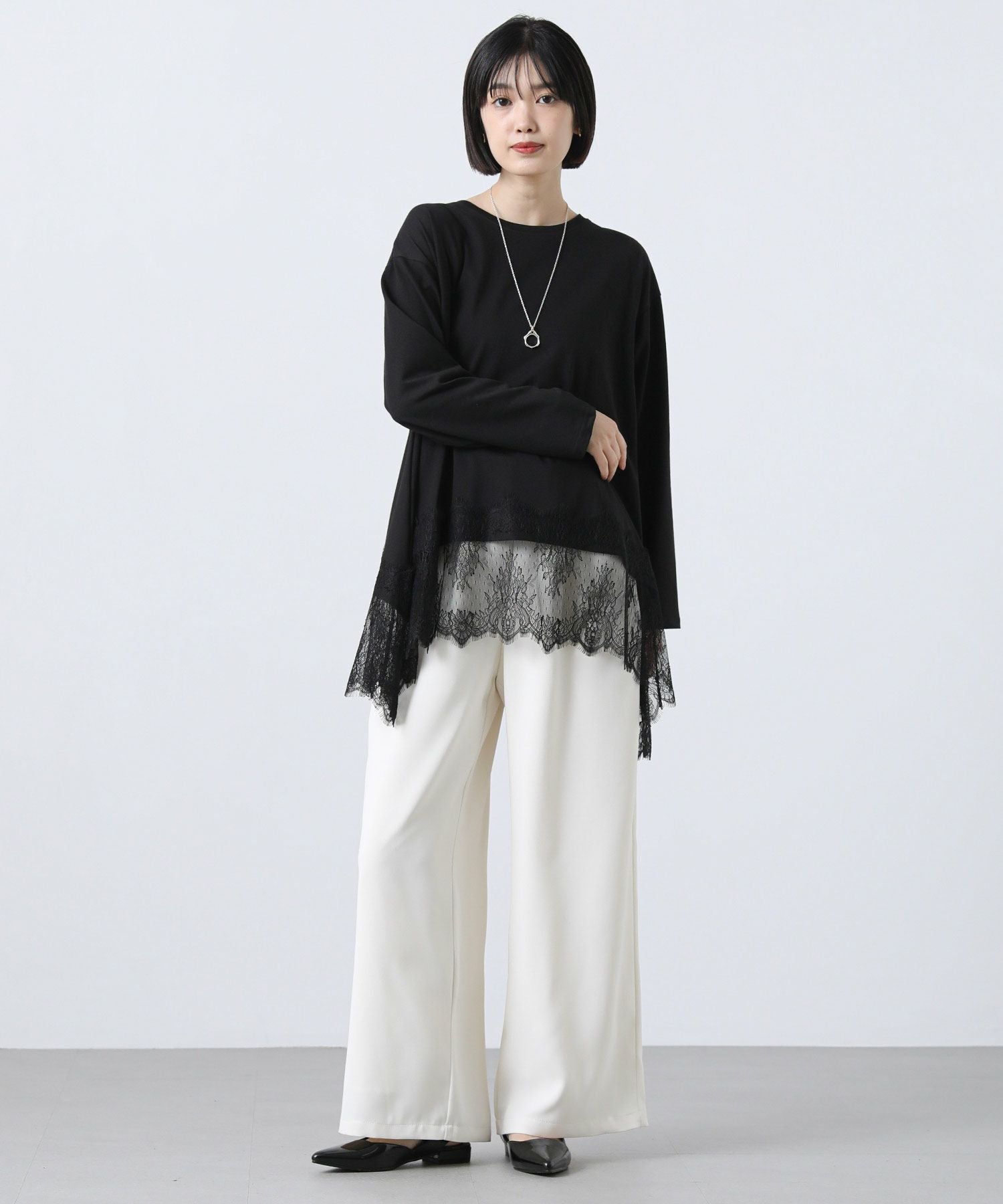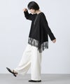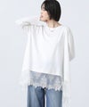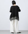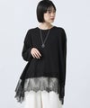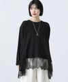 身頃にスムースカットソーを使用し、裾に繊細なレースをあしらったチュニック丈トップス。