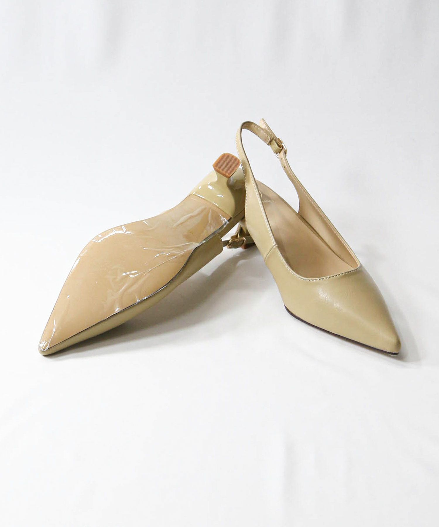 オフィスやオケージョンシーンに使いやすい、バックストラップのパンプス。