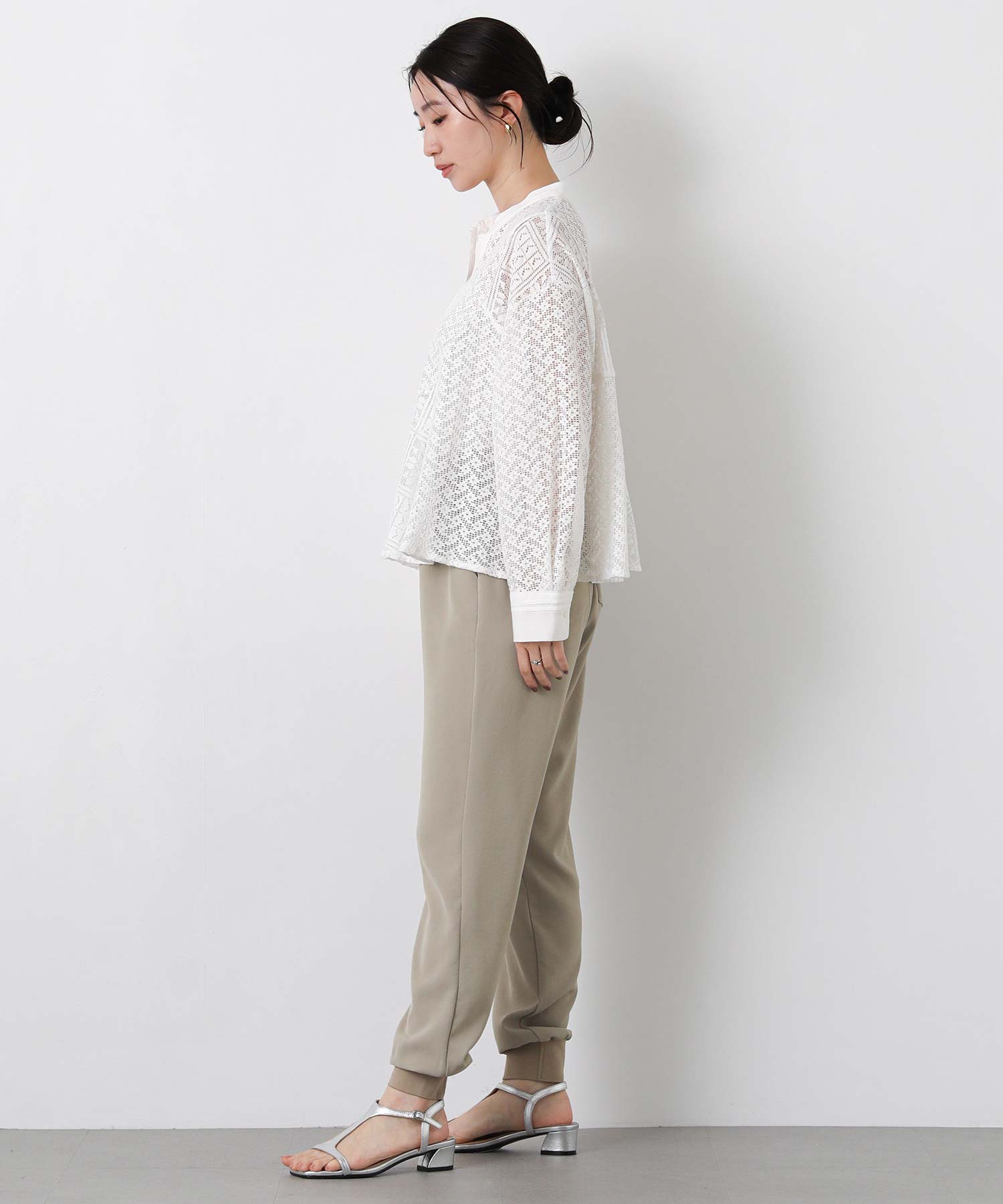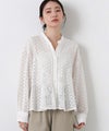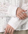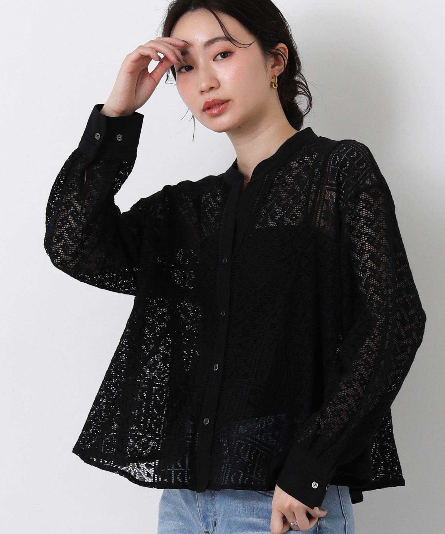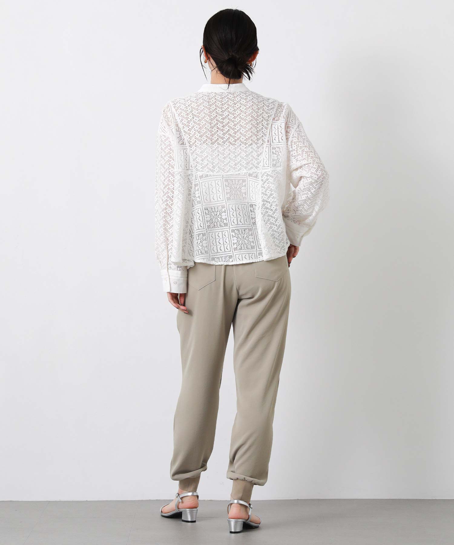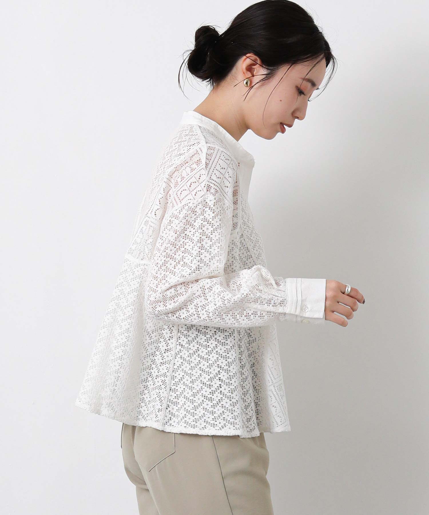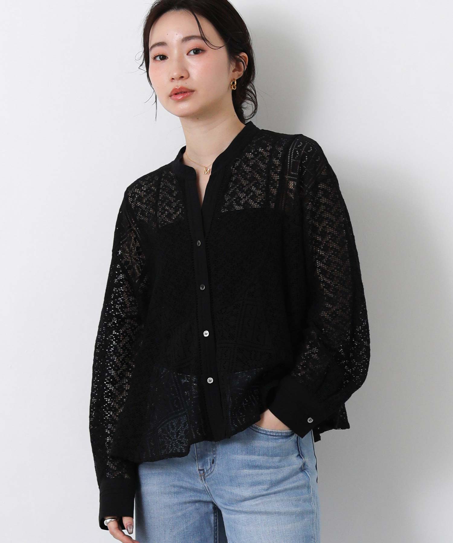 ラフなムードを演出する総レースのシャツは、ジオメトリックなレースとパッチワーク風のレースを切り替えたクラフト感のあるデザイン。