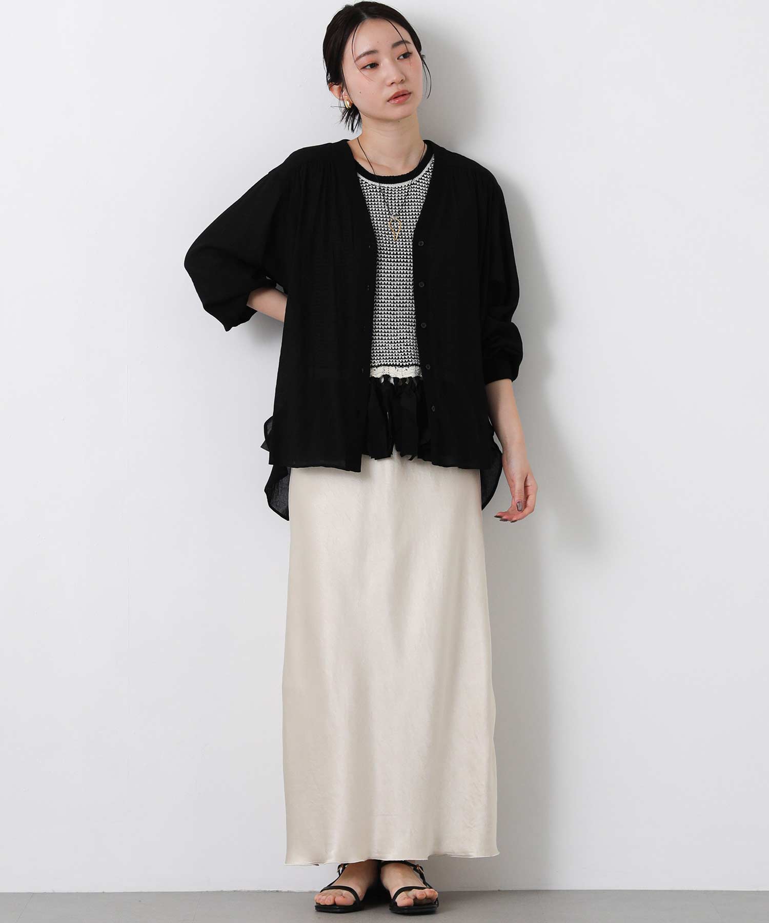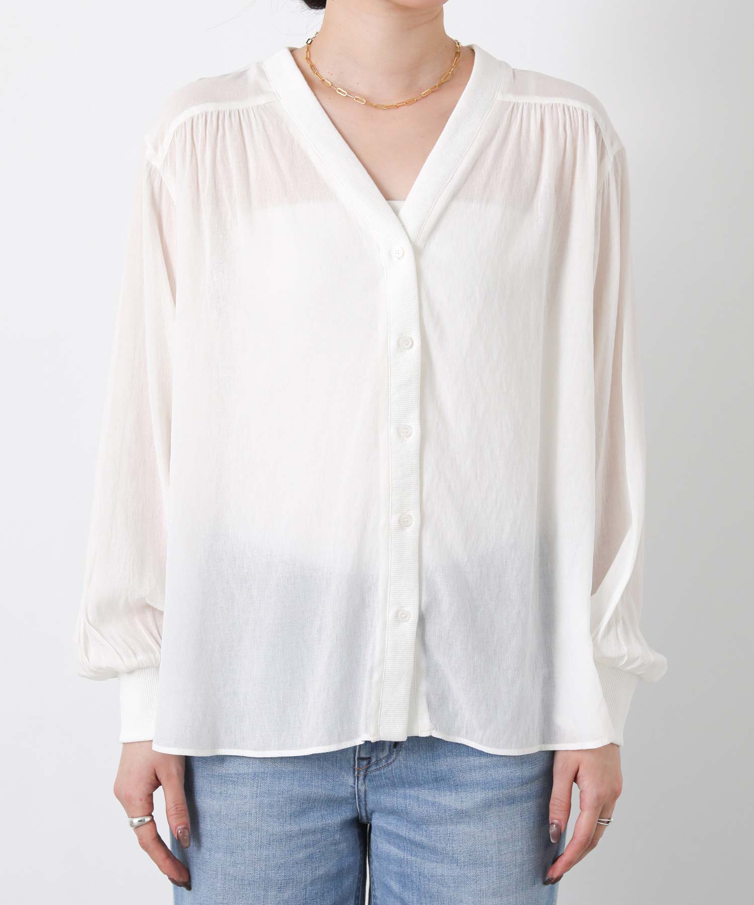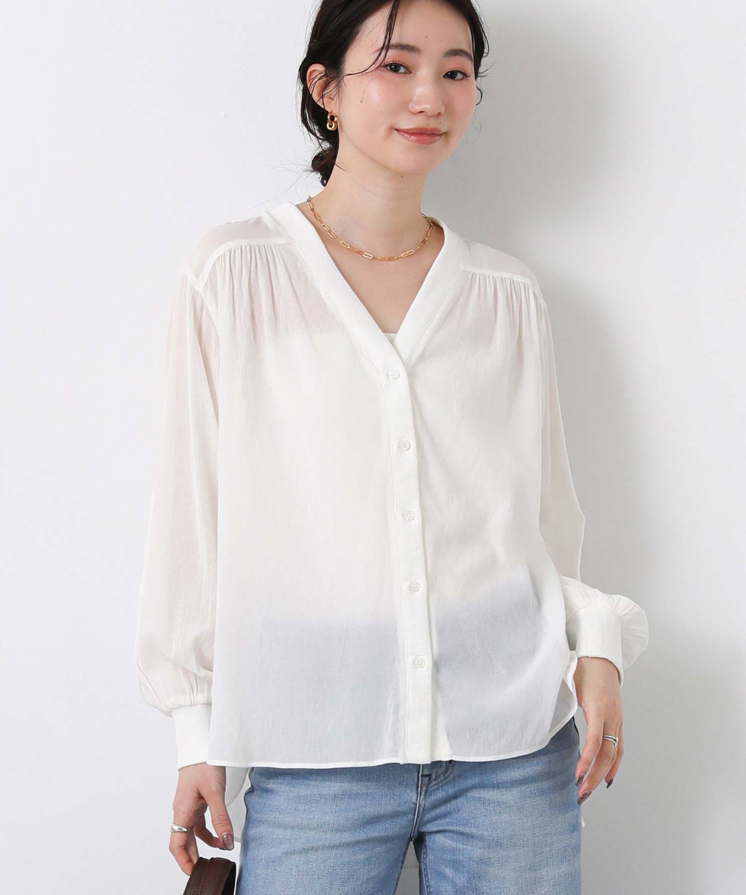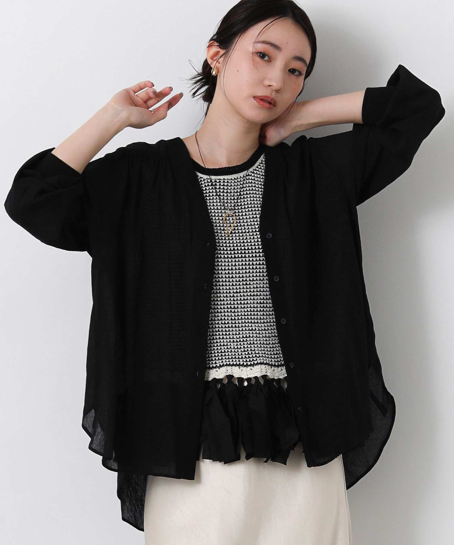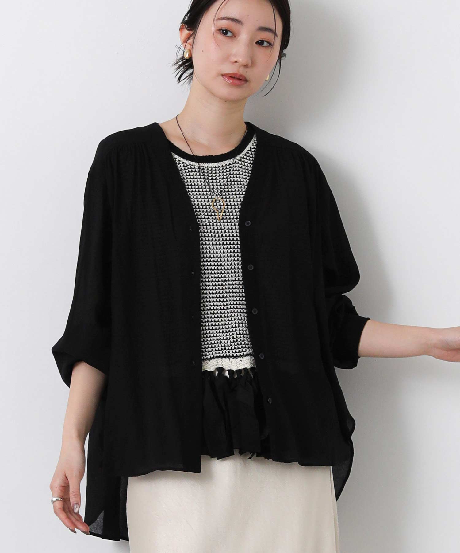 サッと羽織りやすい!1枚で着映えするシアーシャツカーディガン。