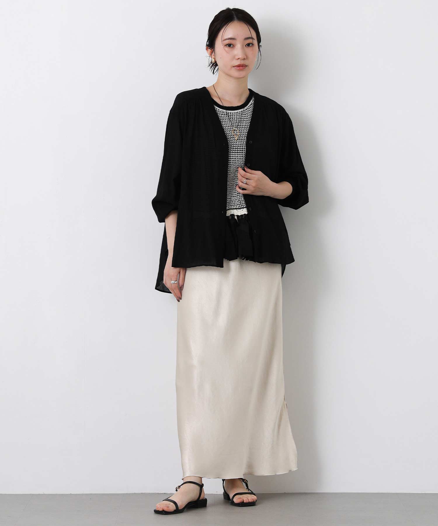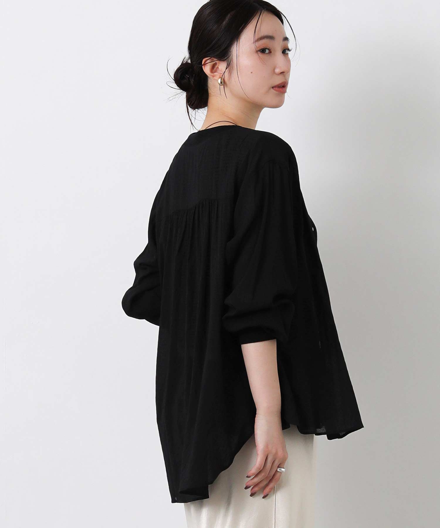 表情のあるワッシャー生地で程よい透け感を楽しめます。