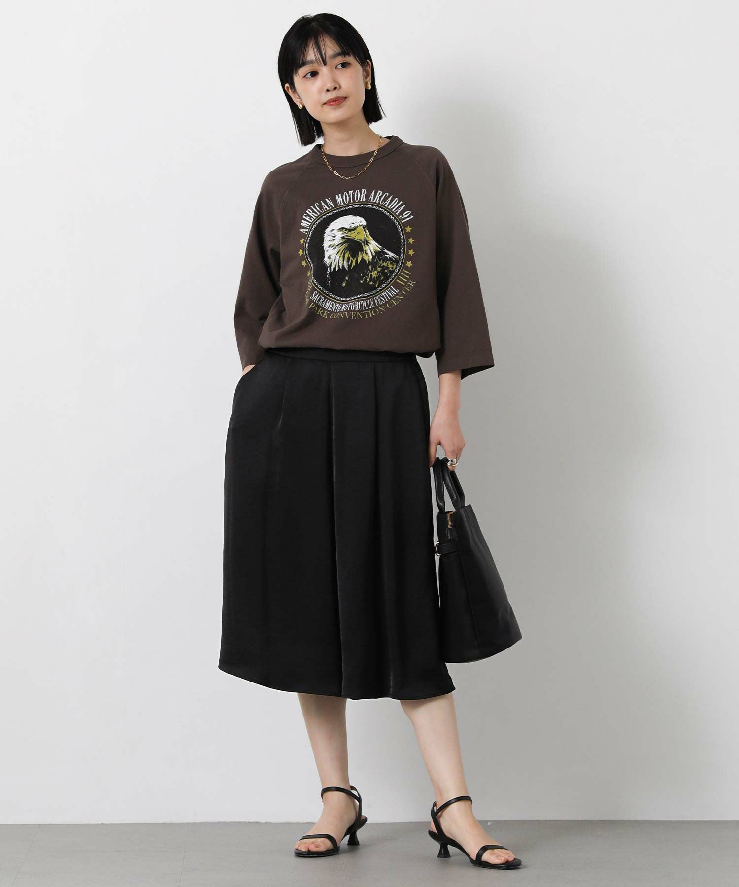 とろみ感のあるサテン生地を使用したガウチョパンツ。