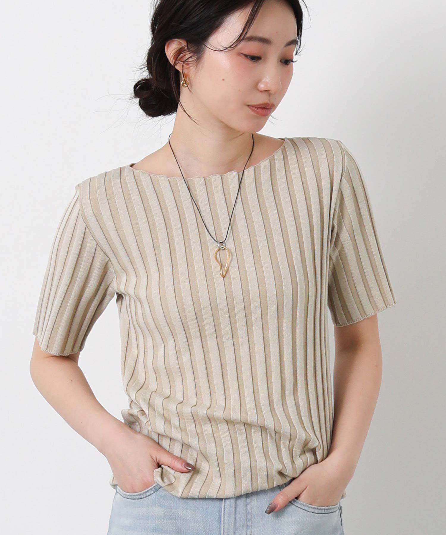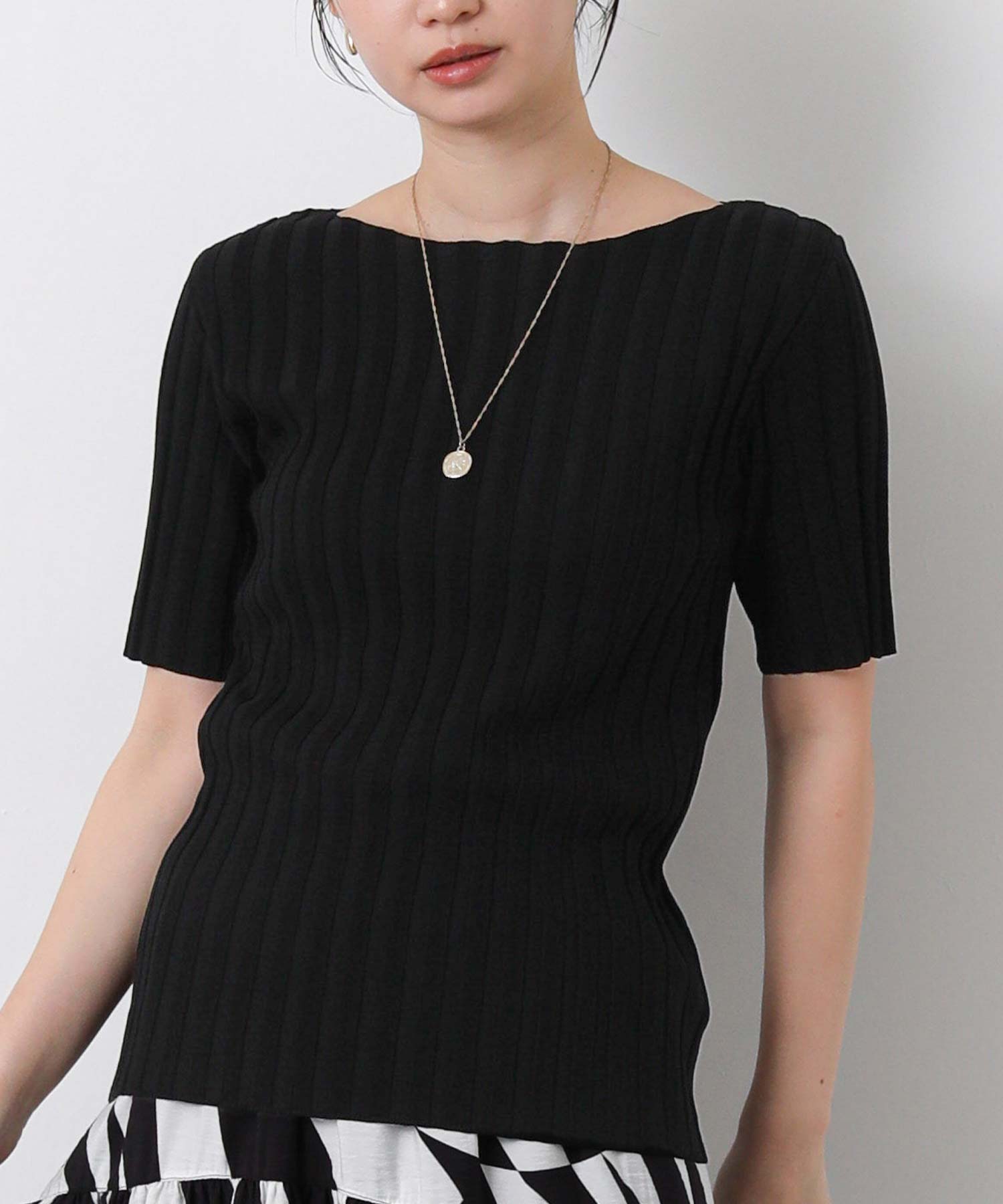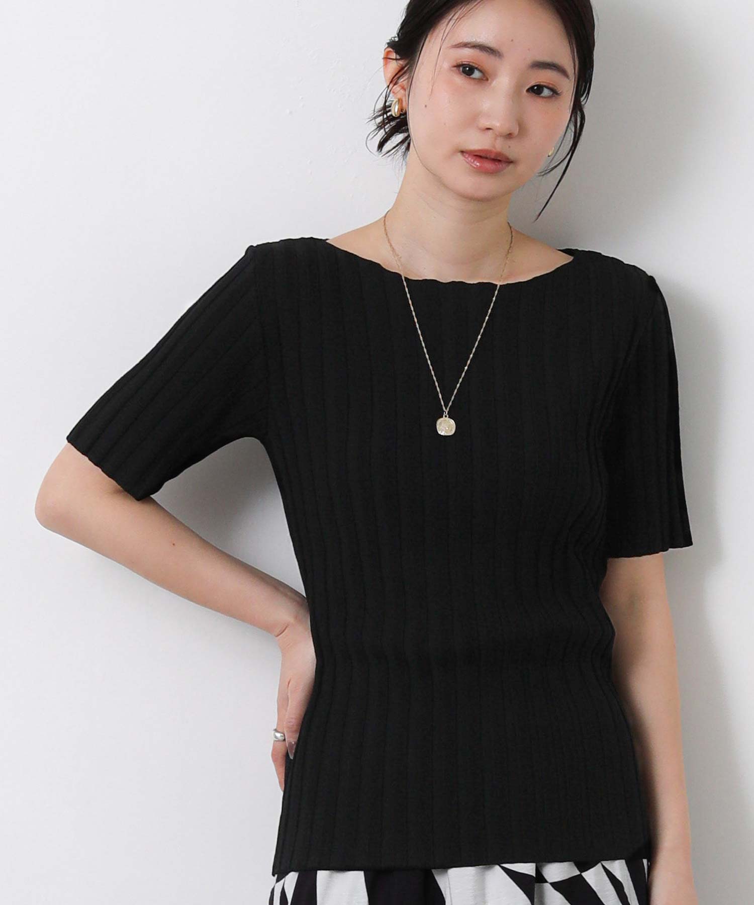 綺麗めからカジュアルまで、オンオフ兼用で着回せる半袖のニットプルオーバー。