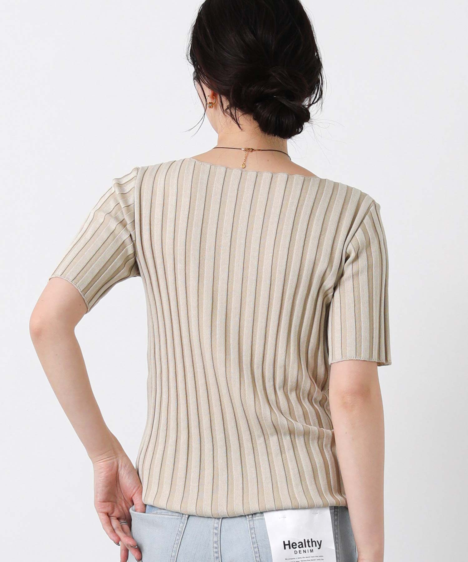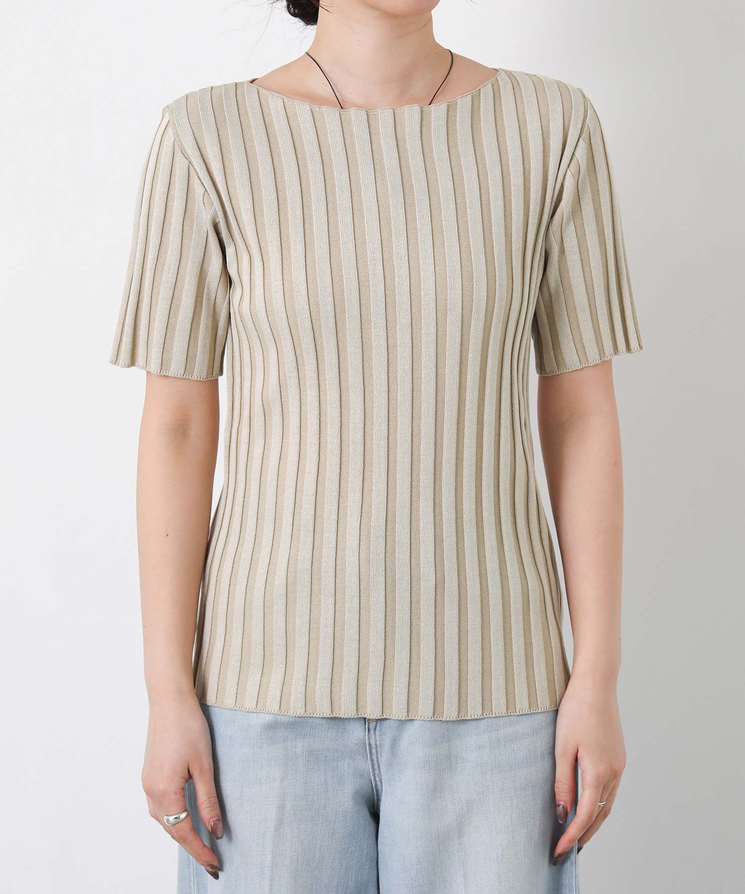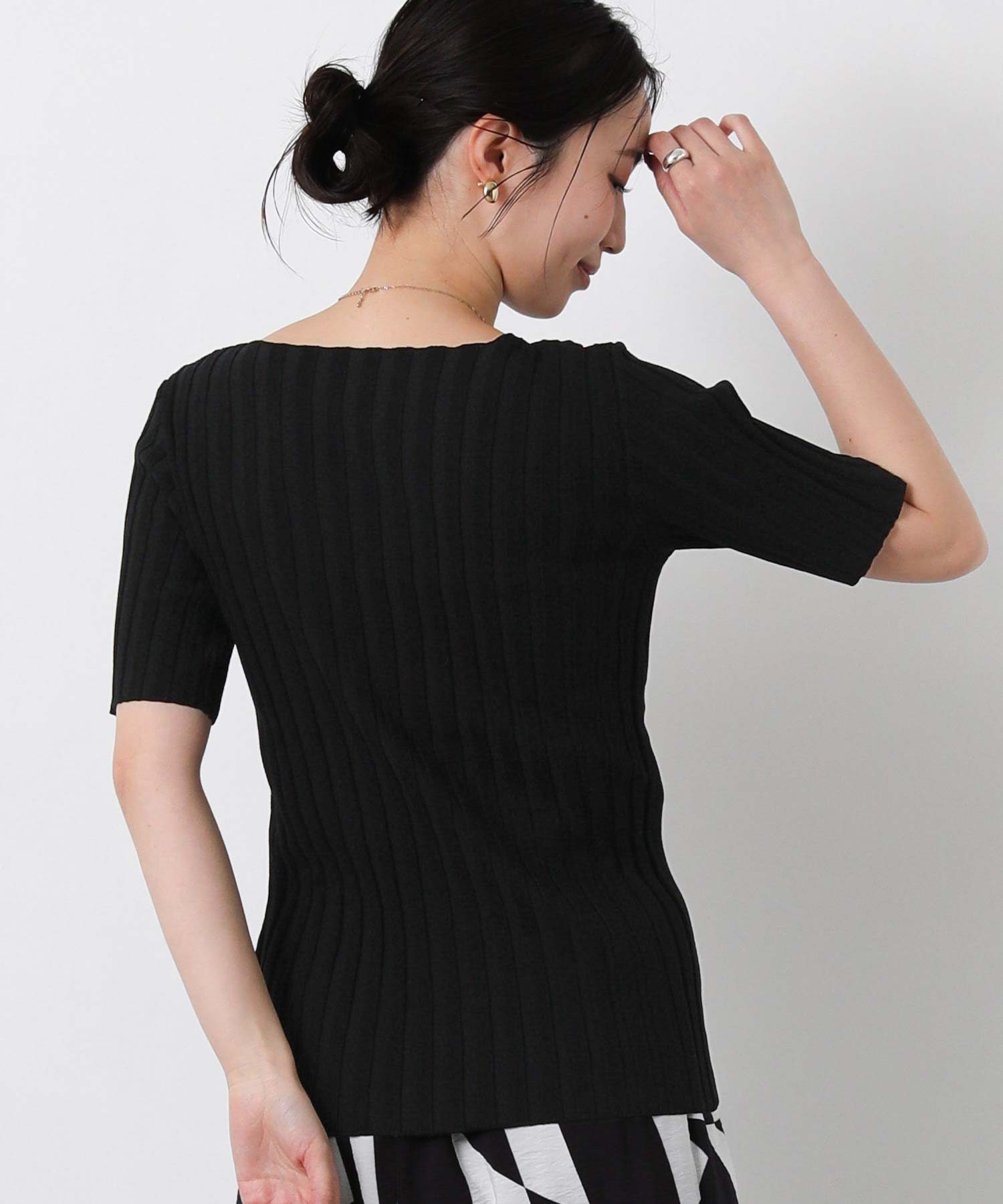 綺麗めからカジュアルまで、オンオフ兼用で着回せる半袖のニットプルオーバー。