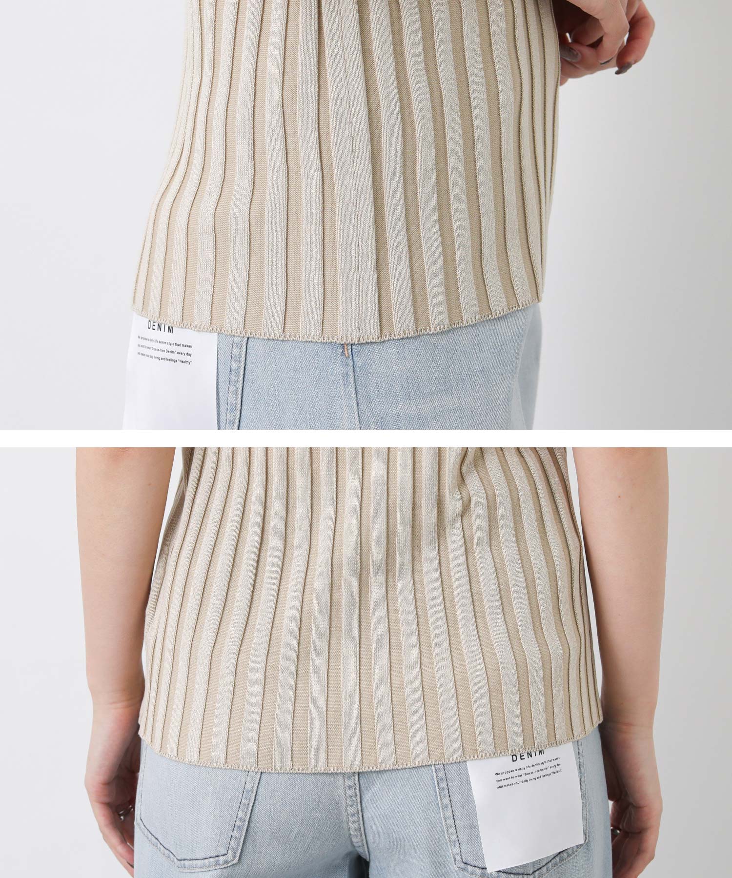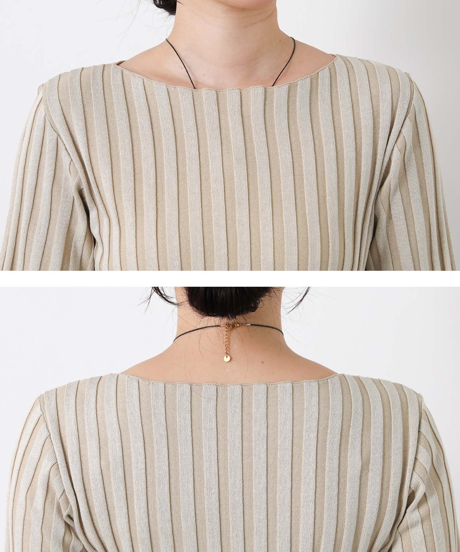 すっきりとしたクルーネックと太めのリブ編みがポイント。 Tシャツのように着れる手軽さと上品なルックスを兼ね備えた1枚。