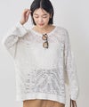 表情豊かなテープヤーンの糸を使用した、シアー感のあるジャガード柄が魅力的なニットプルオーバー。