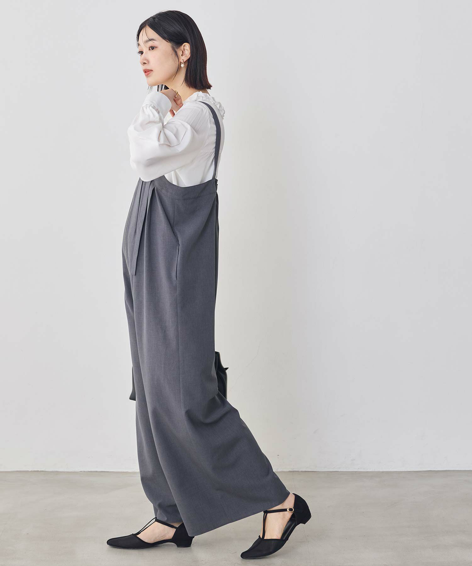 機能性素材のReflaxECOウエザークロスを使用したワイドサロペット。