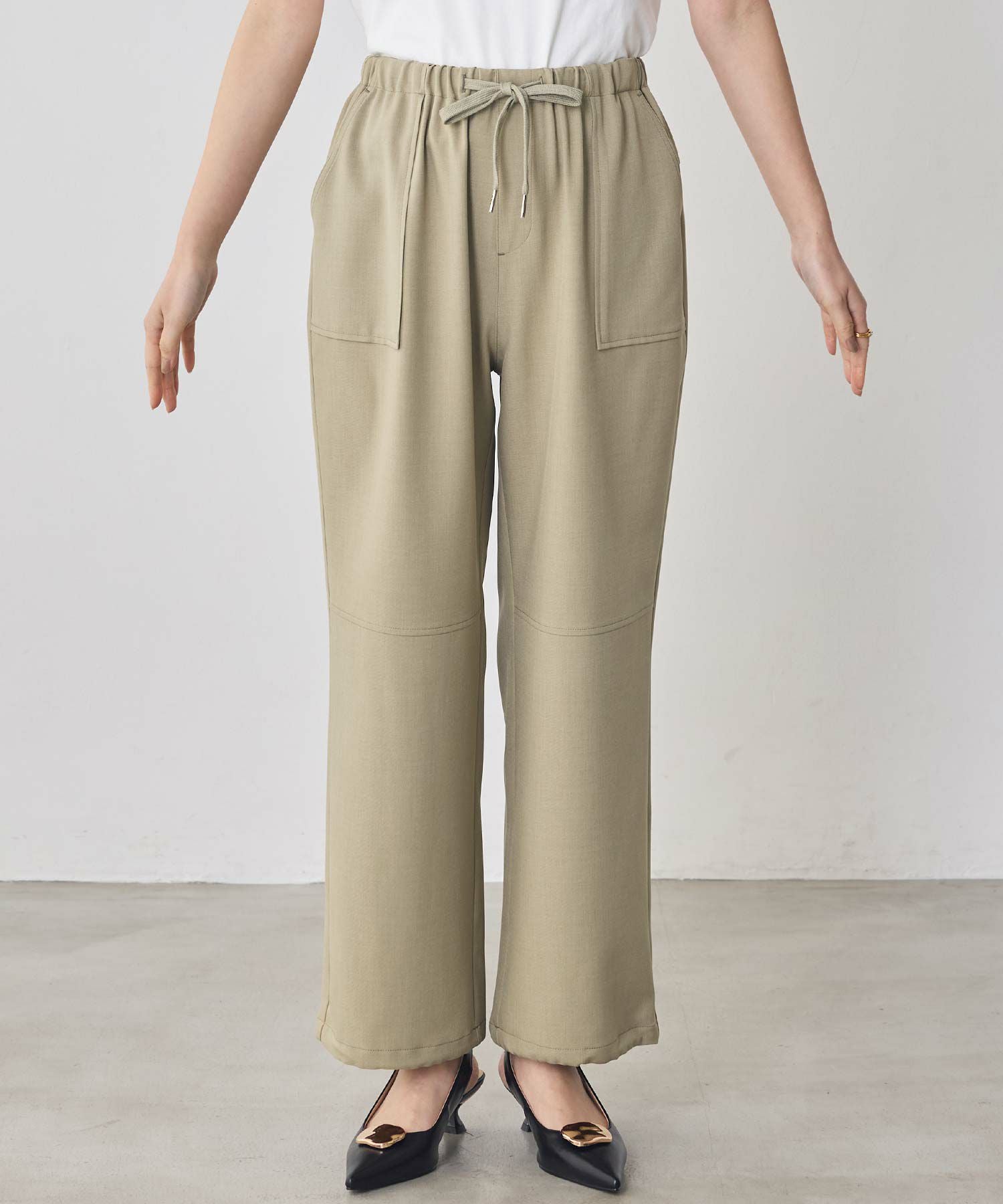 ウエストは総ゴム仕様でラフな着用感ながらも、脚のラインを綺麗に魅せてくれるシルエットにこだわった1着。