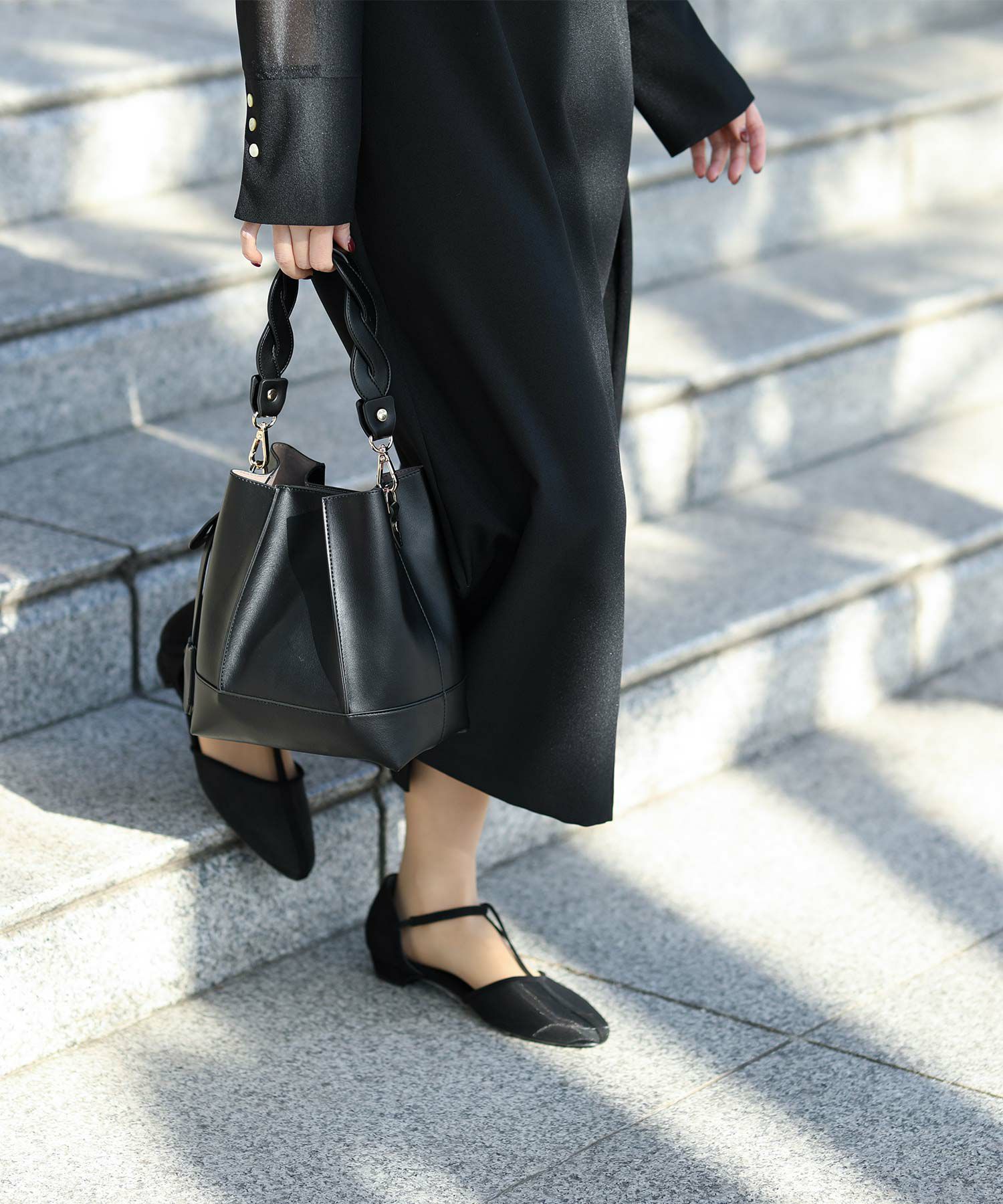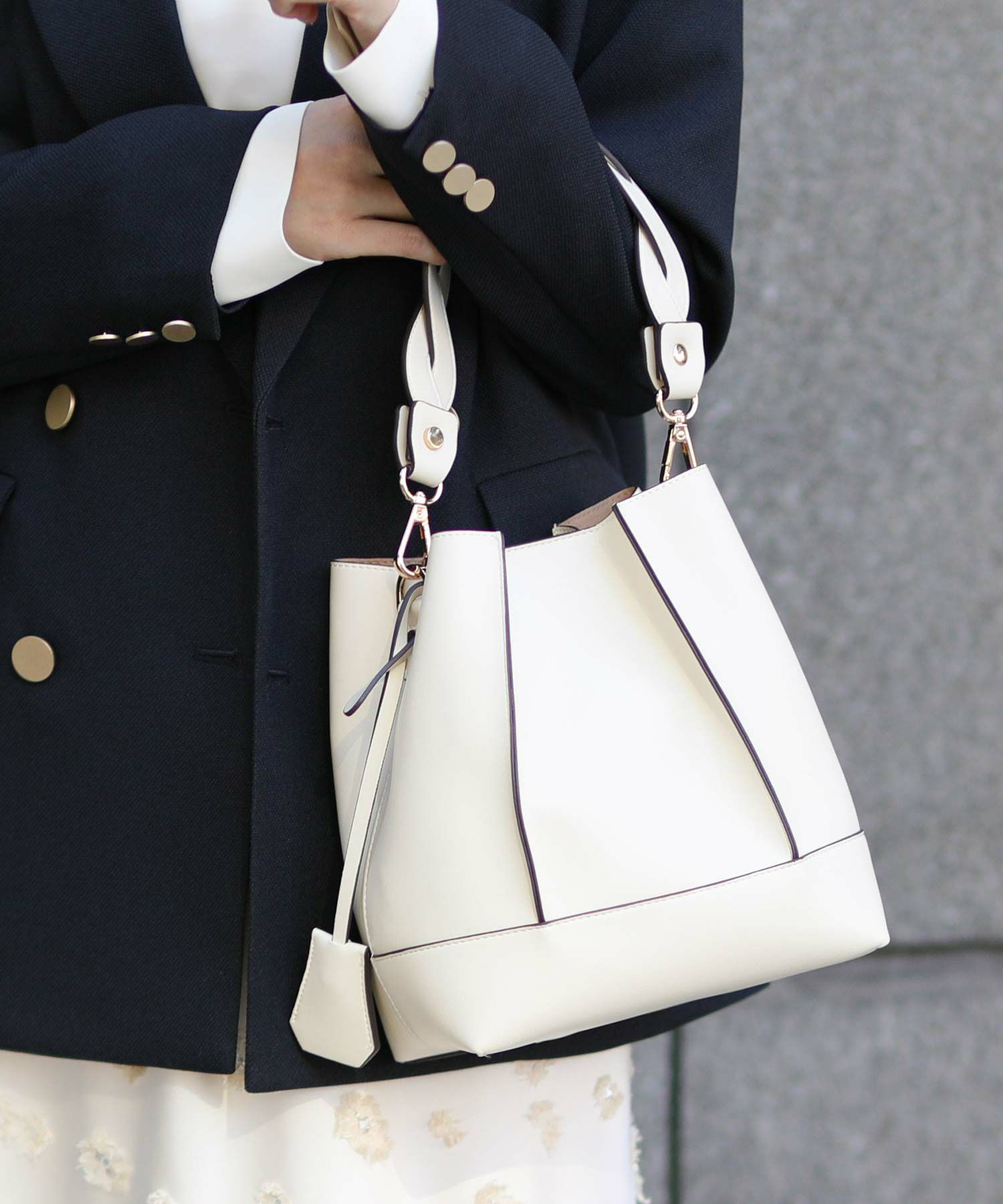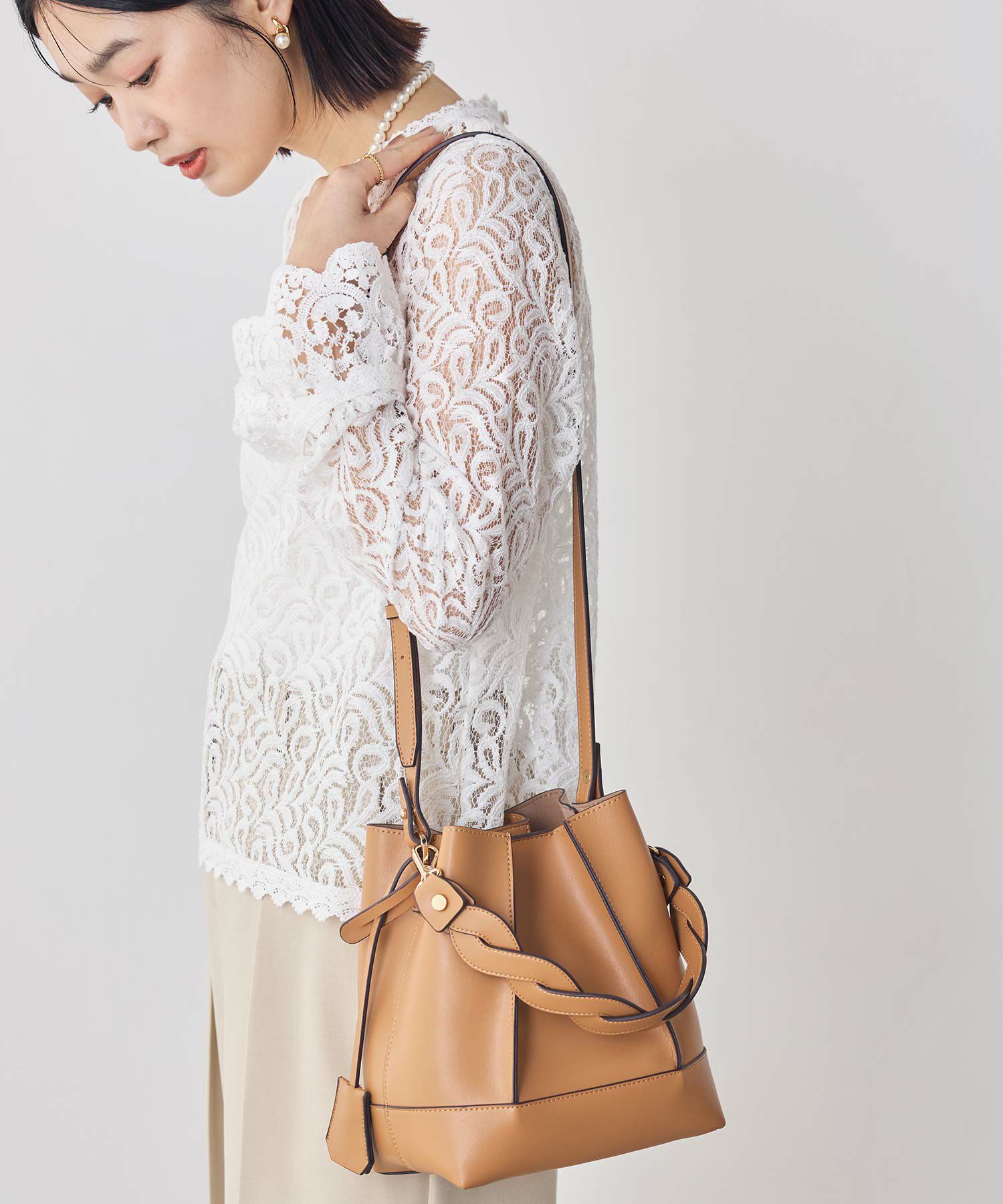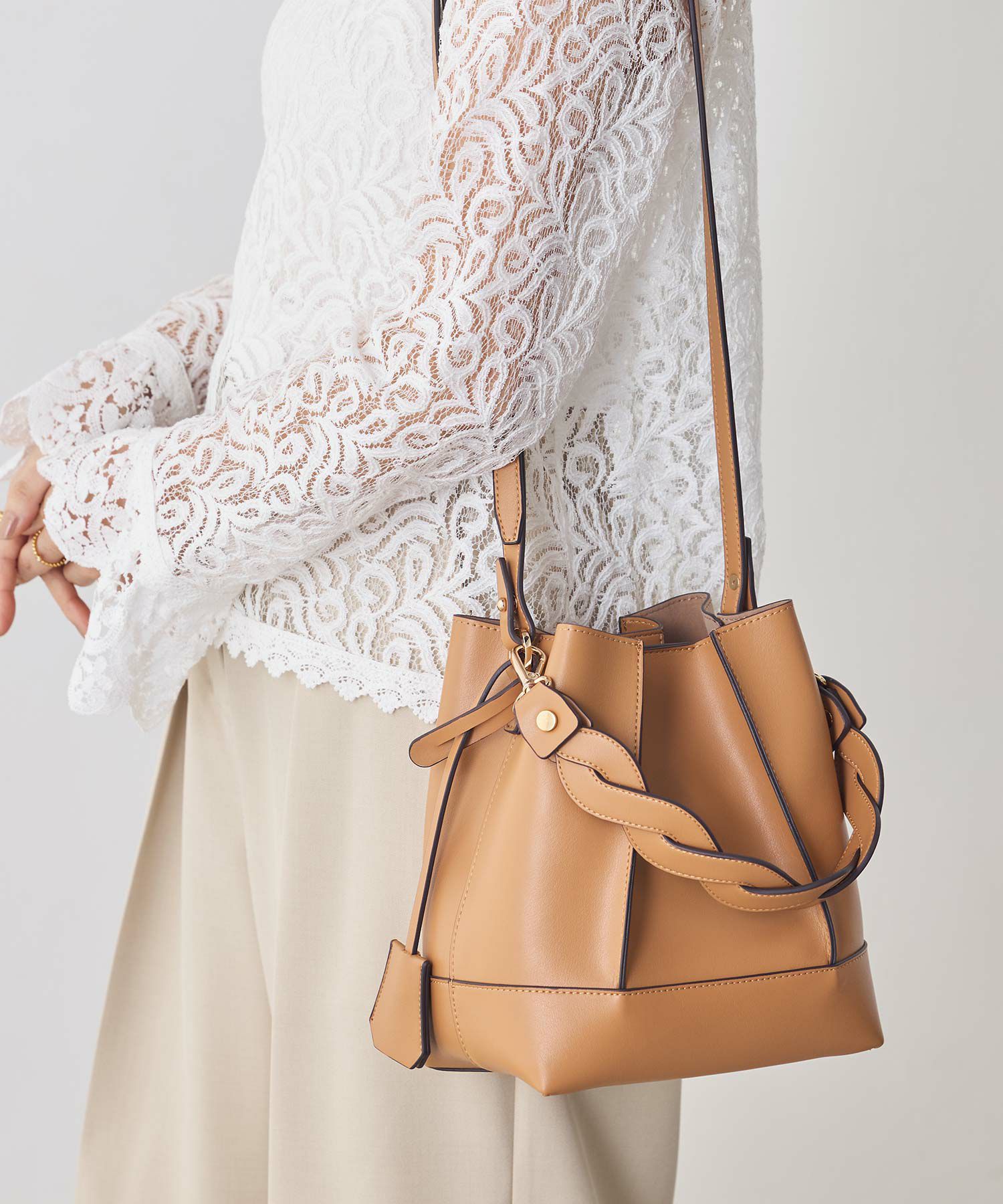 ハンドルはツイストされたデザインのハンドルとショルダーストラップの2way仕様。