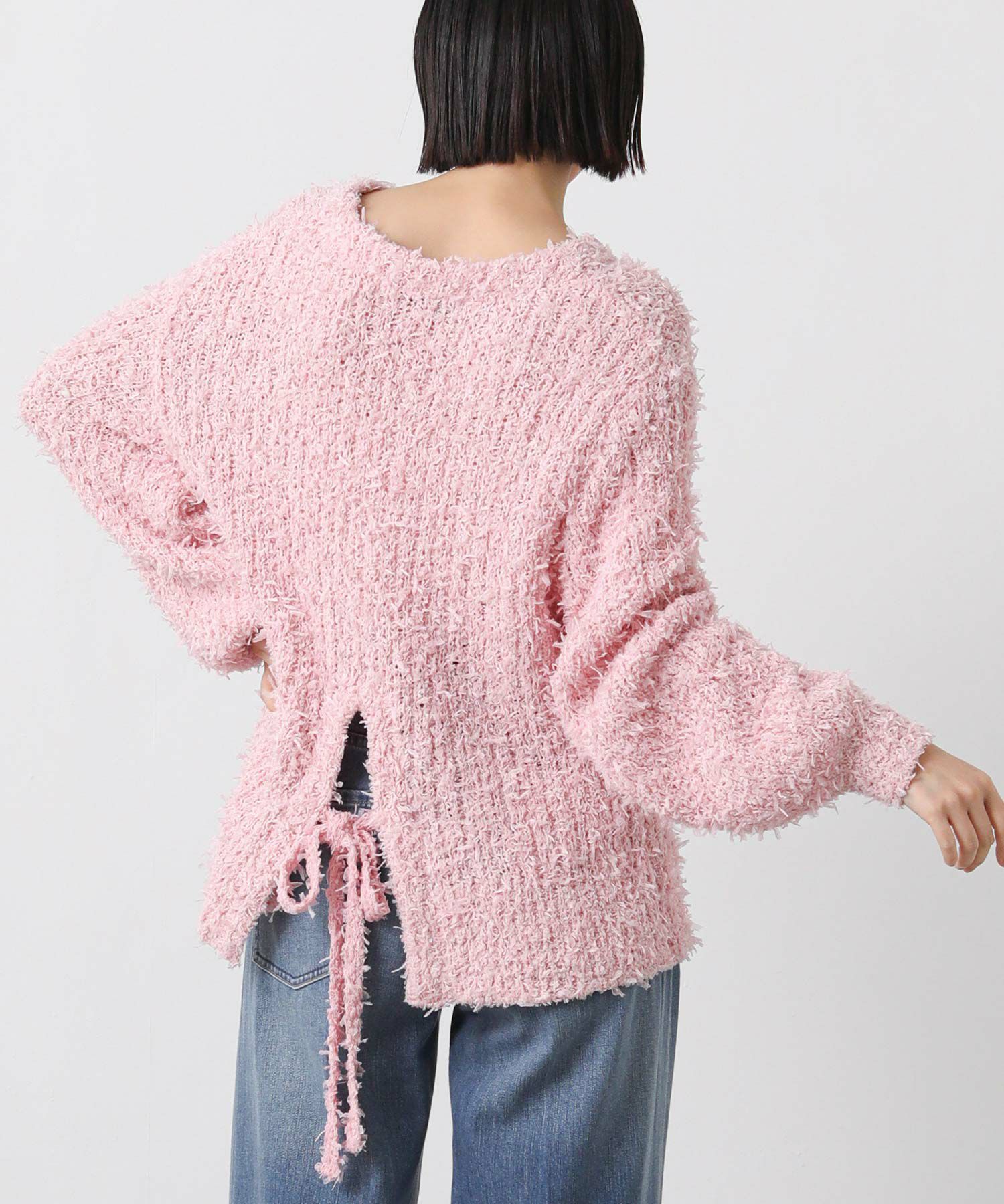 ベーシックに使えるシルエットで、バックデザインのリボンが映える1枚。