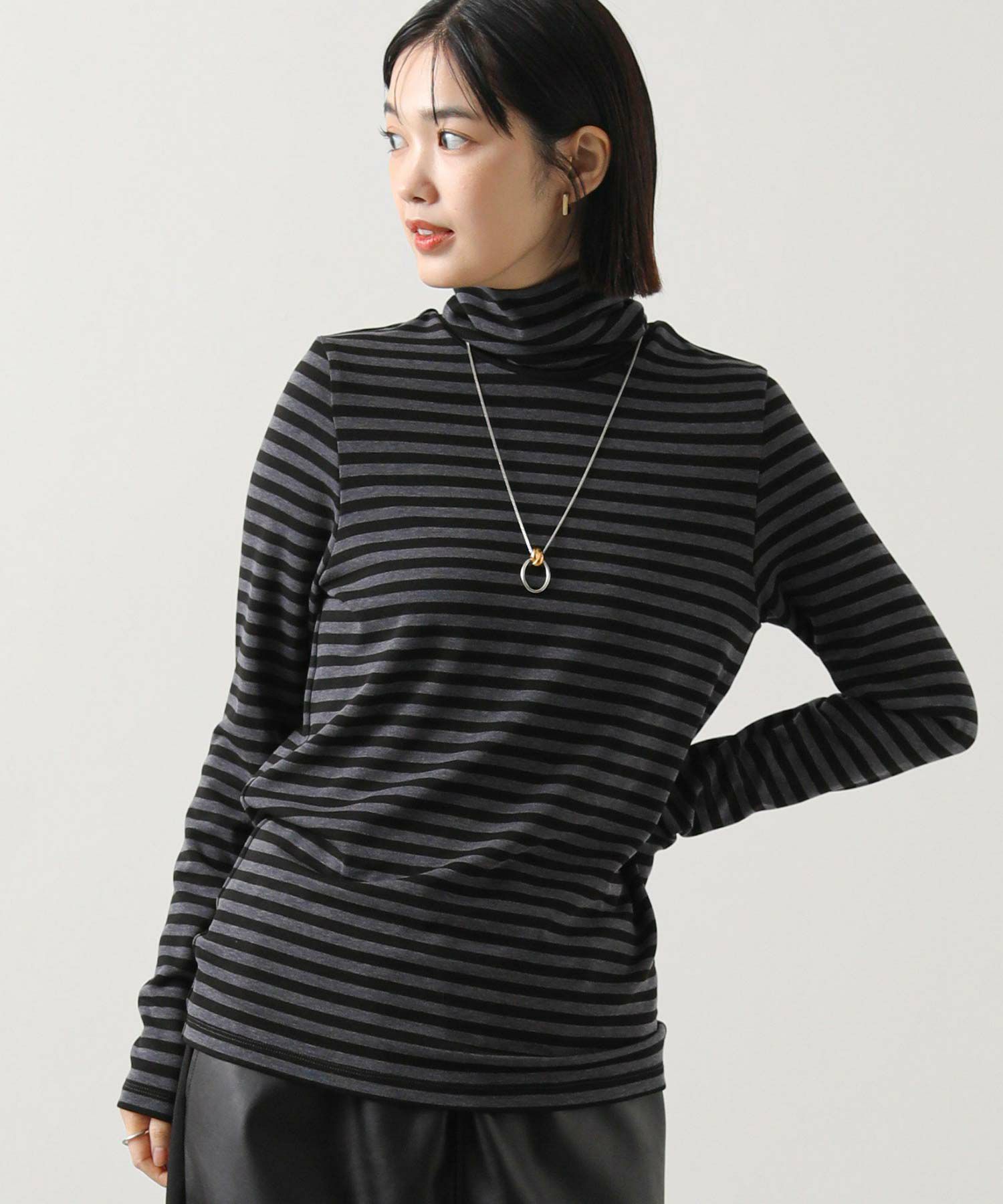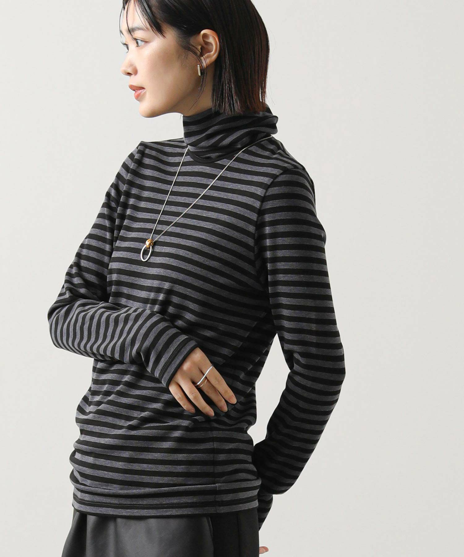 寒い季節にうれしい、首までしっかり暖かいカットソー。