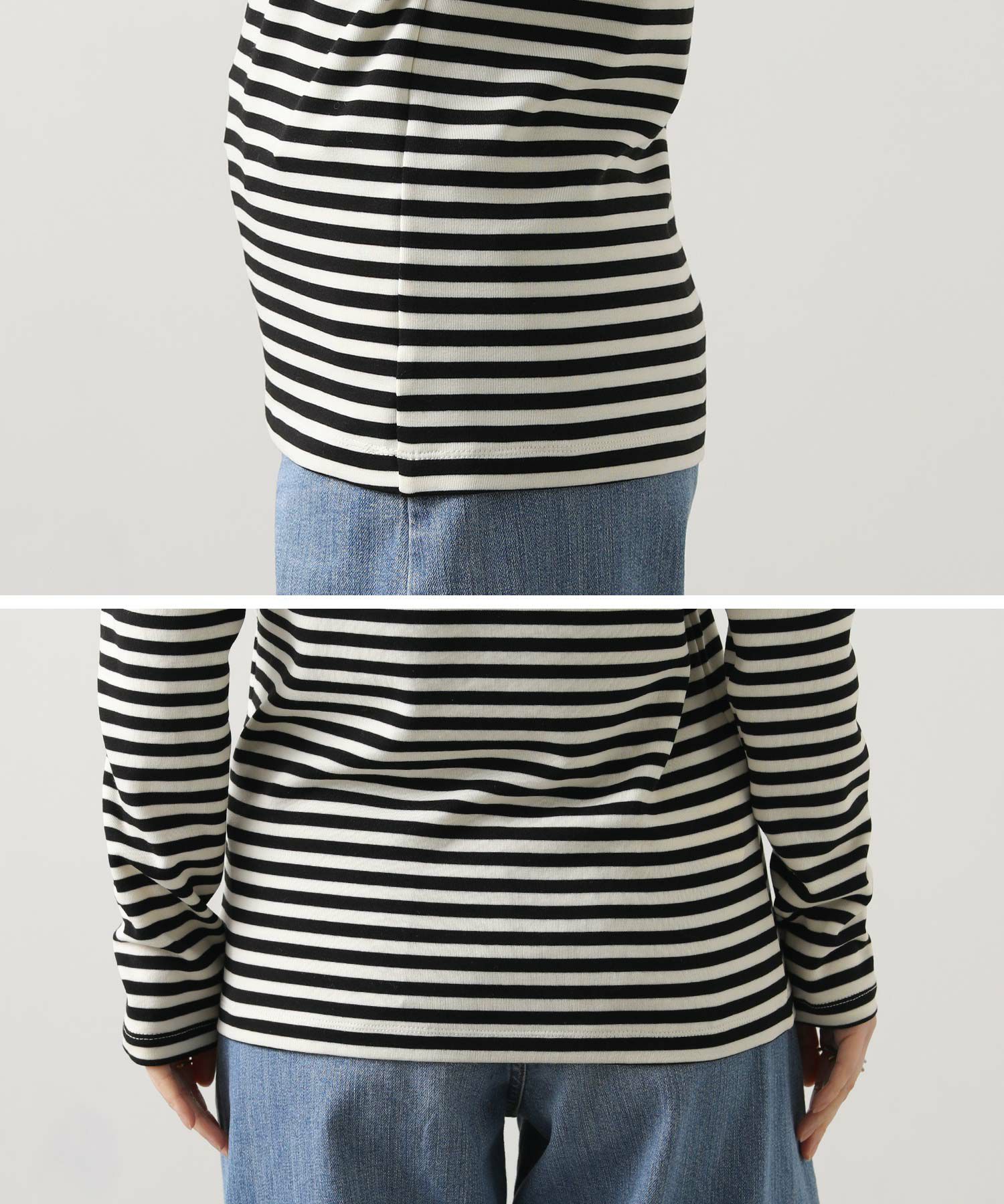 フライスボーダータートルネックトップス