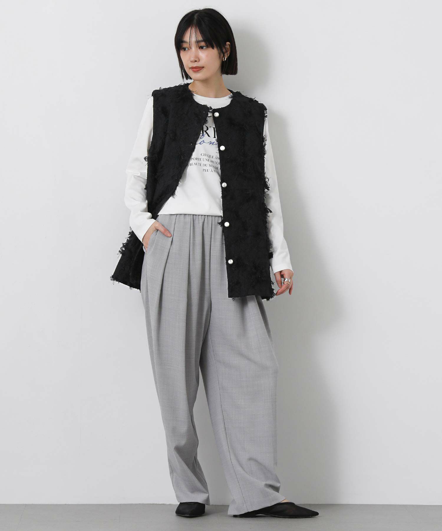 ※着用画像は撮影状況、光の当たり具合で色みが違って見える場合がございます。実際の色みについては、画像一覧の最後に掲載している詳細画像をご参照ください。