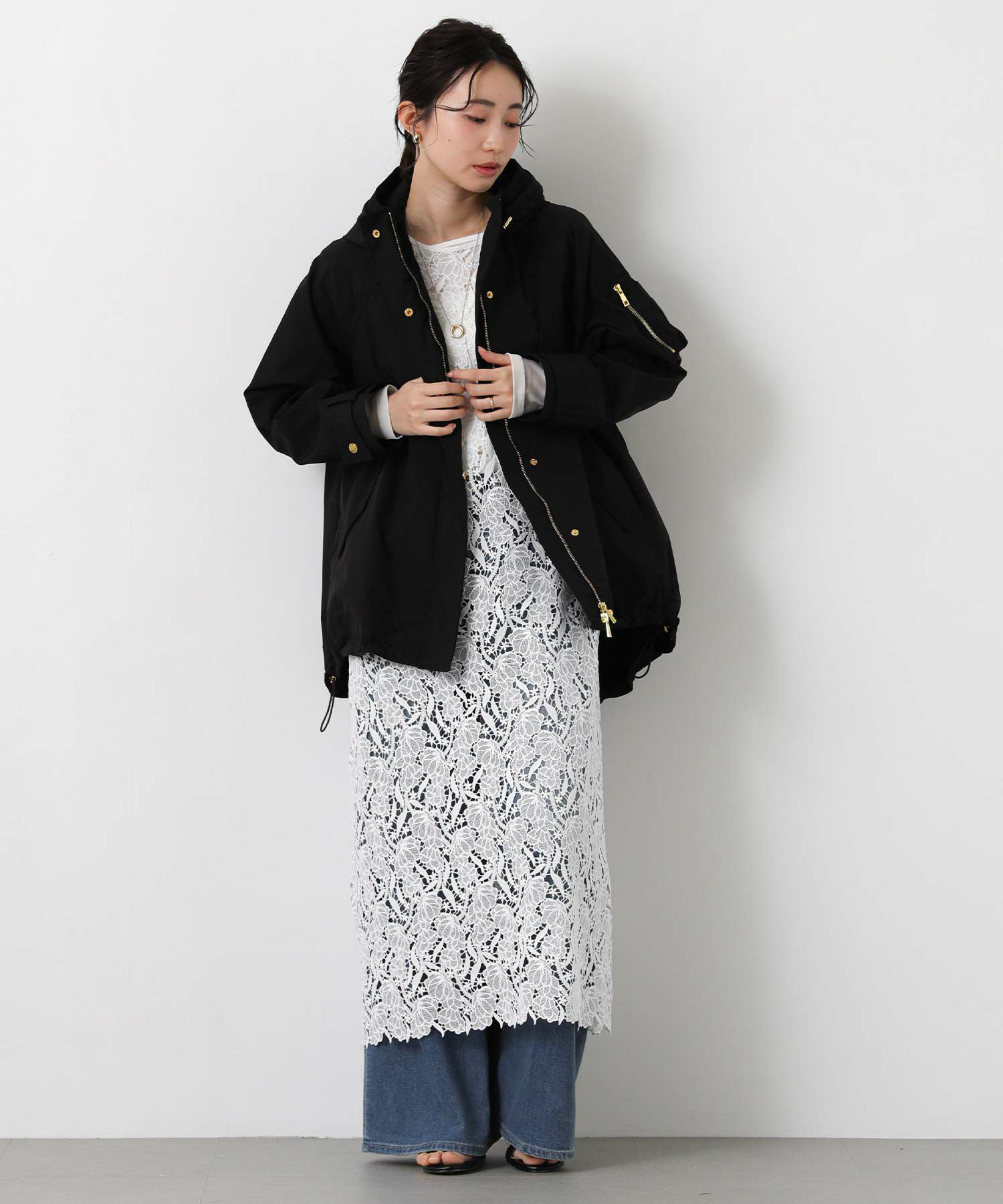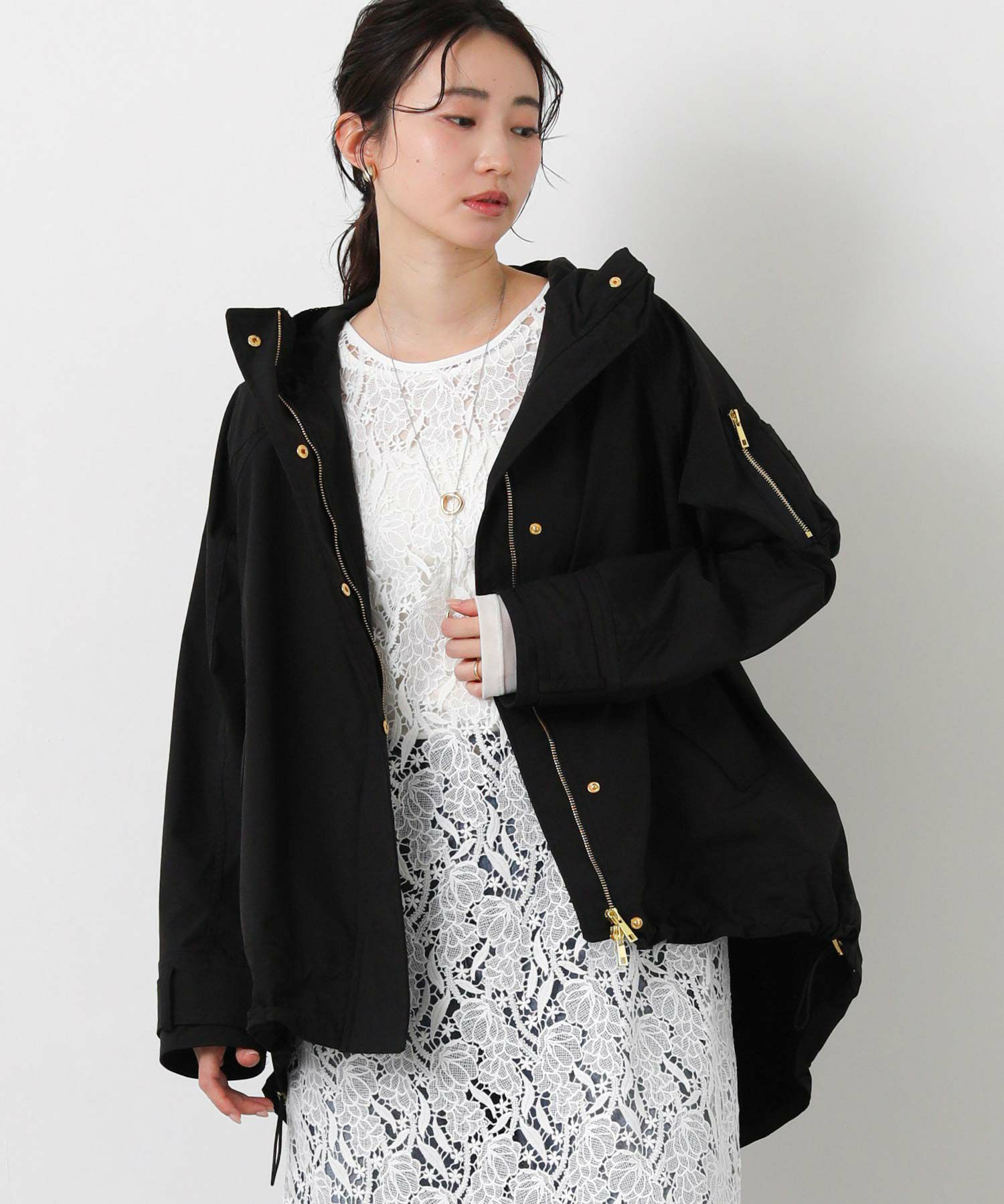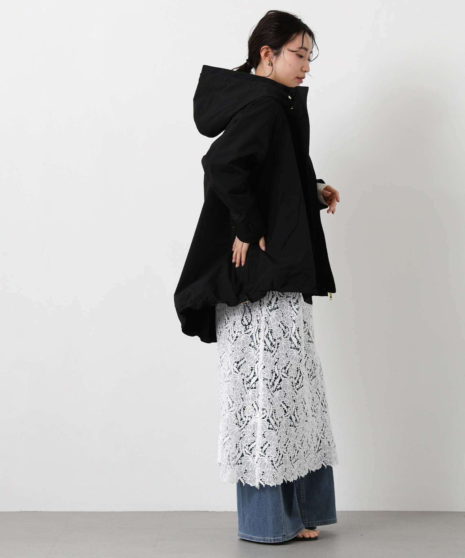 裾のドロストでシルエット調整もでき、パンツにもスカートにもバランス良く合わせられます。
