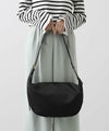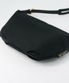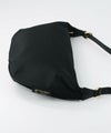 弱撥水性のあるカジュアルなナイロン素材にレザーのショルダーベルトの組み合わせが上品なボディバッグ。さり気ないゴールドパーツも華やかなアクセントに。