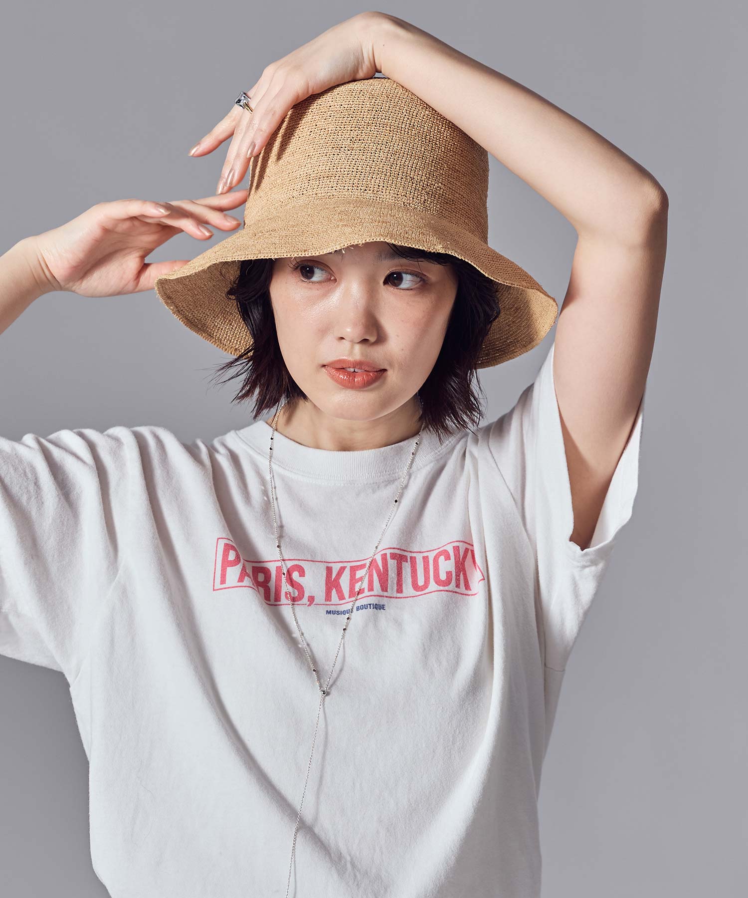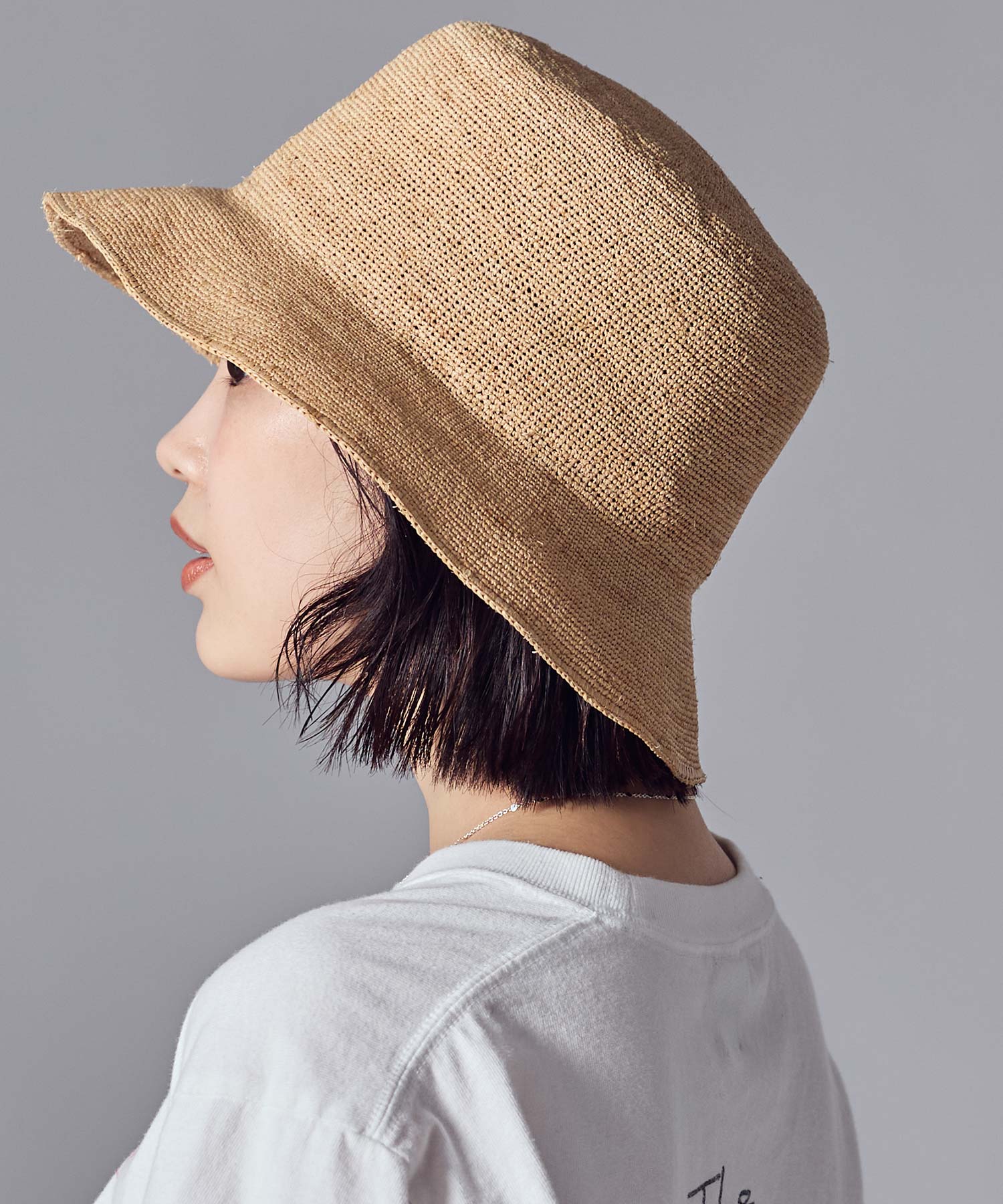 夏の日差しもガードしてくれるラフィアハットは、繊細に編み上げることでカジュアルに寄りすぎない大人の上品な雰囲気に仕上げました。