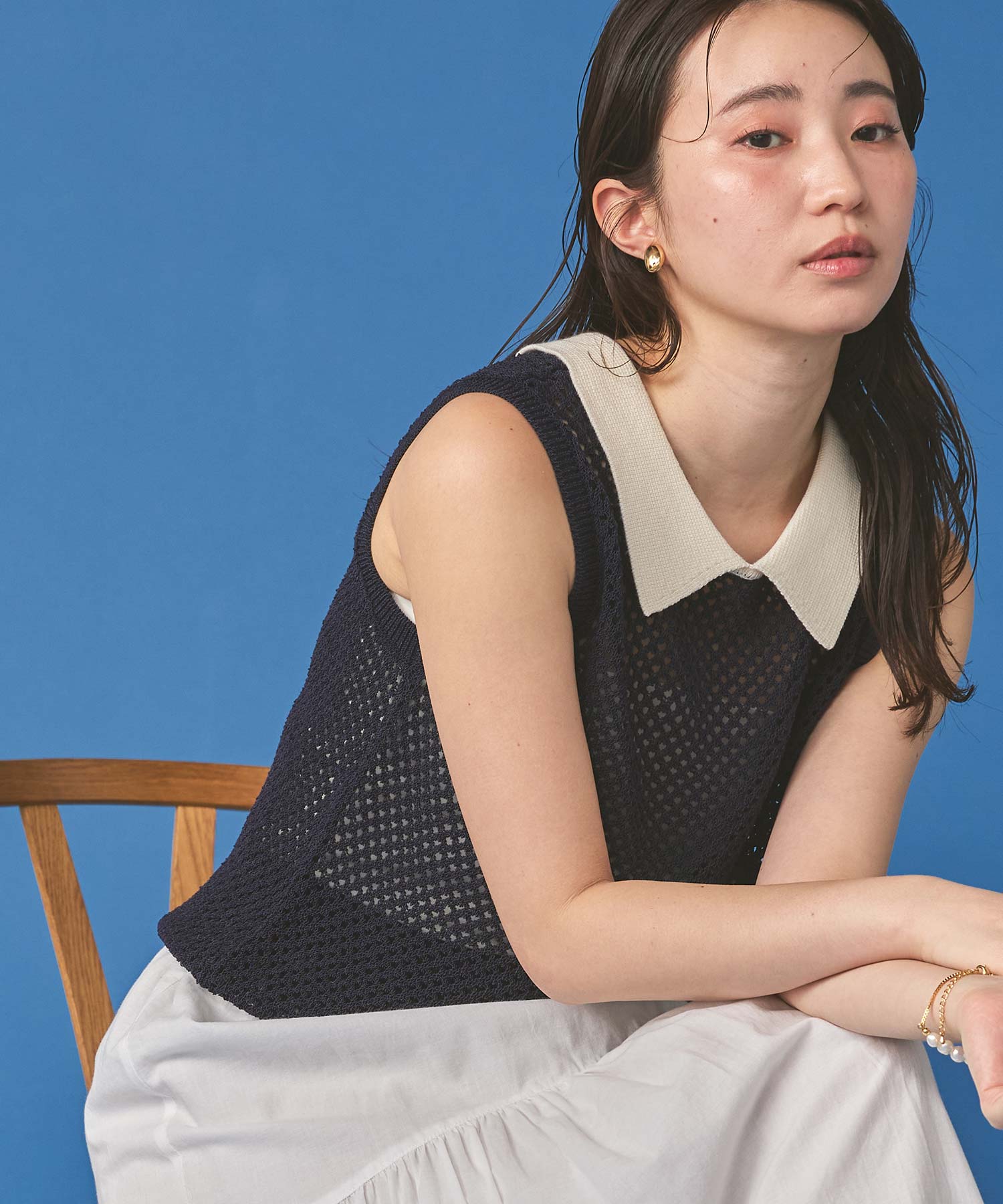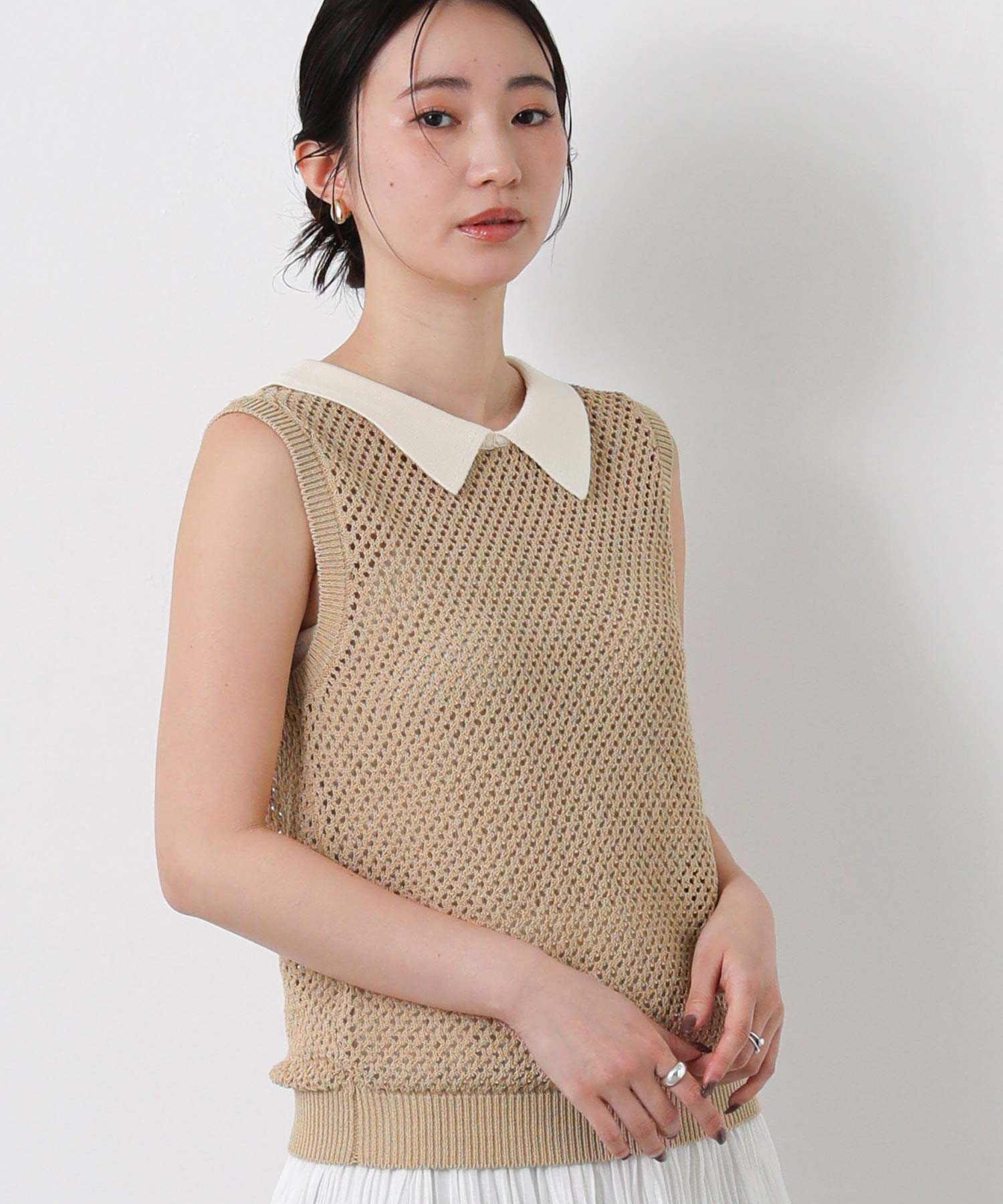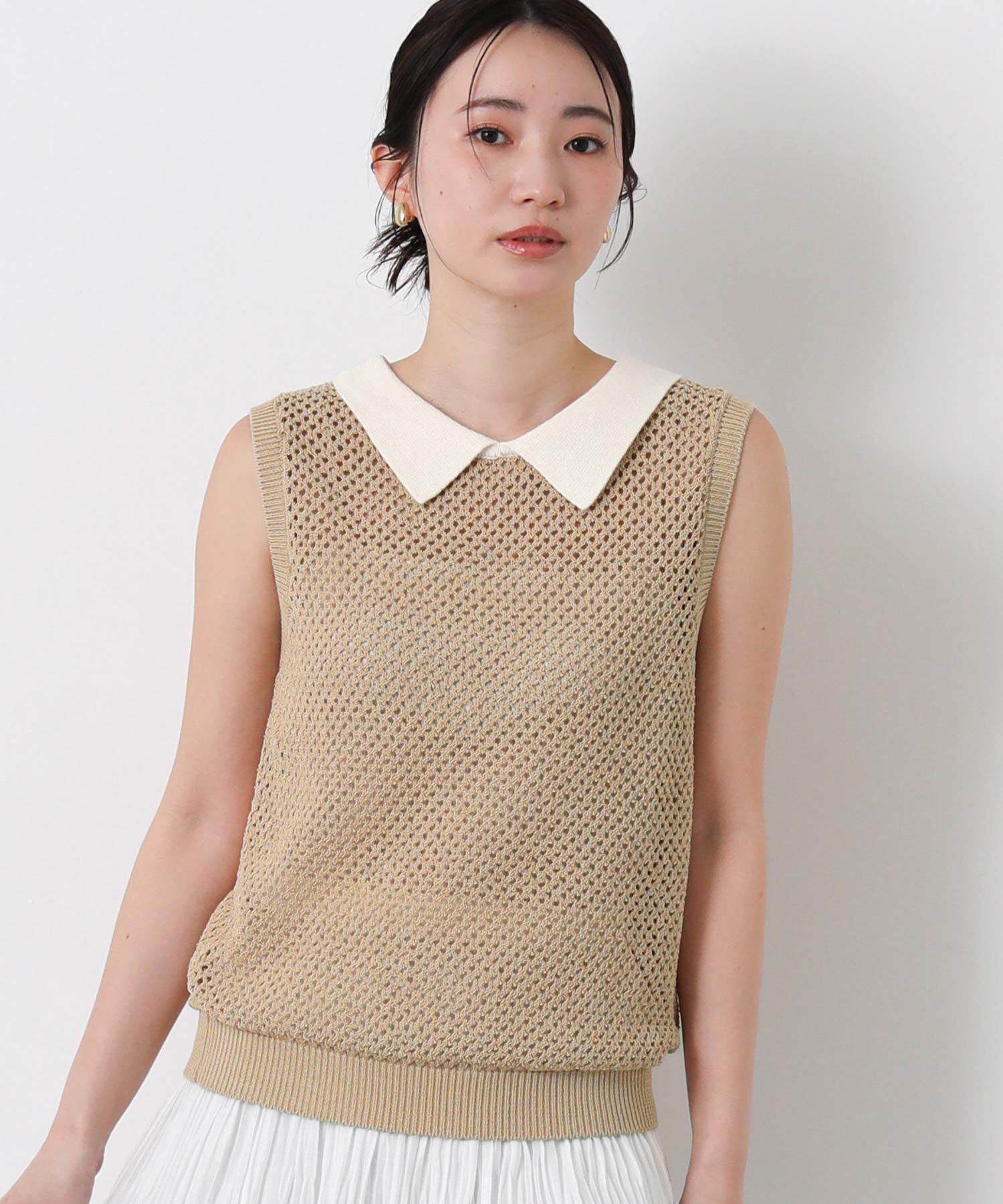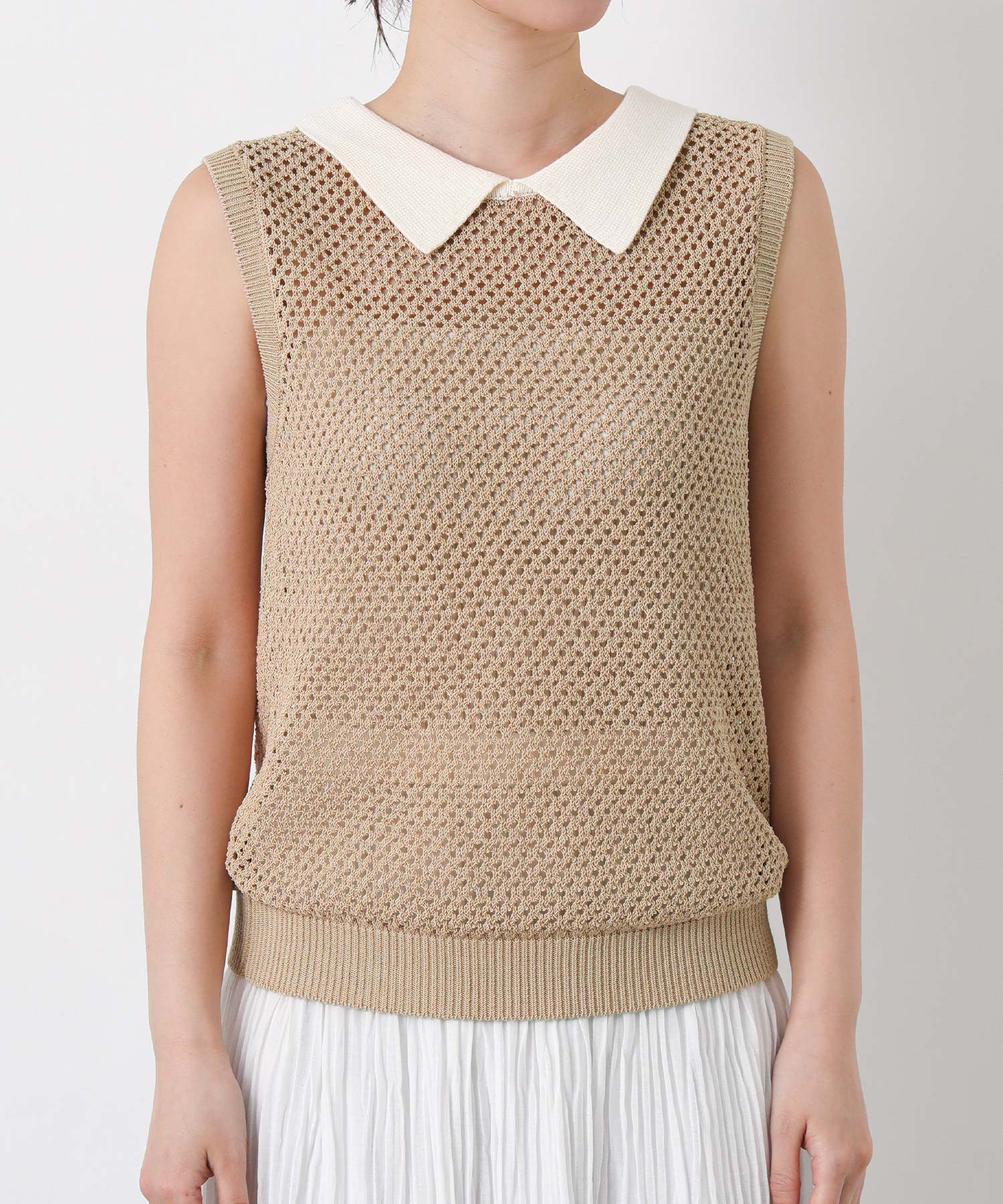 【TorrazzoDonna(トラッツォドンナ)】から、上品なメッシュ編みにポロ衿を付けたサマーニットをセレクト。