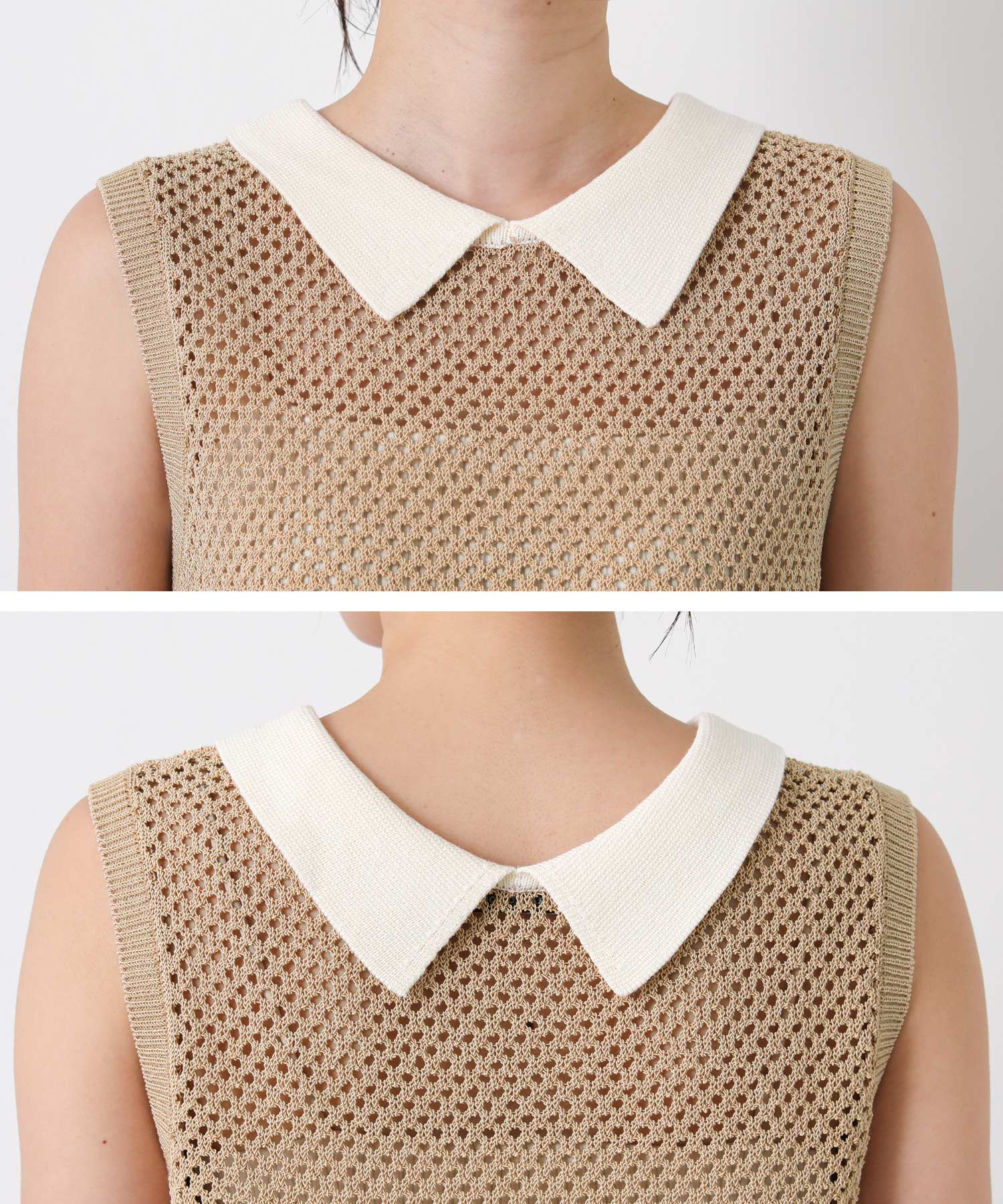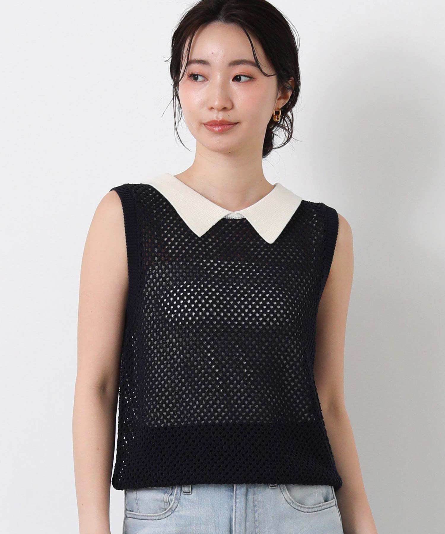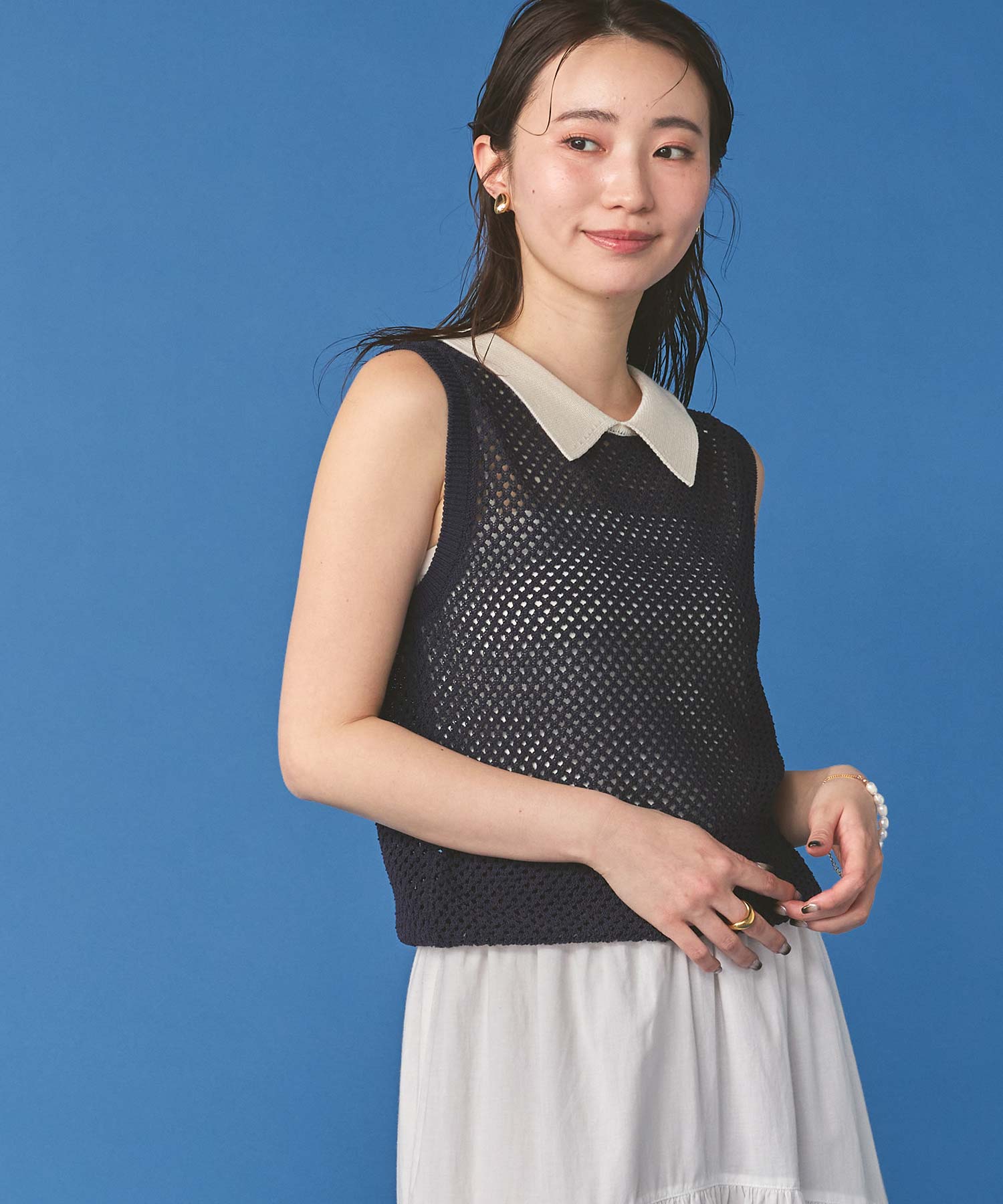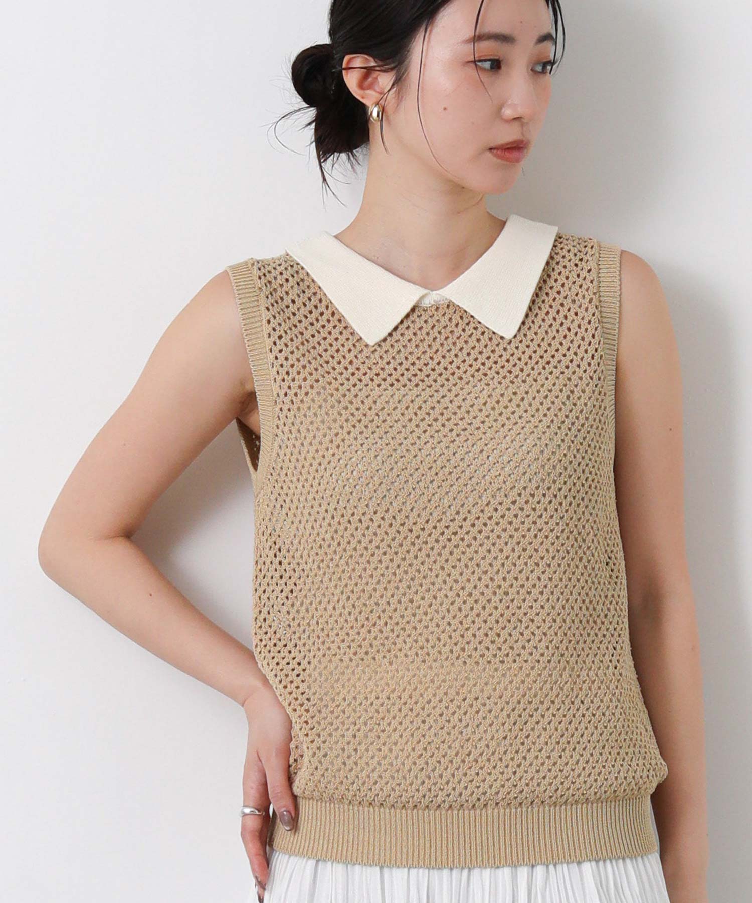【TorrazzoDonna(トラッツォドンナ)】から、上品なメッシュ編みにポロ衿を付けたサマーニットをセレクト。