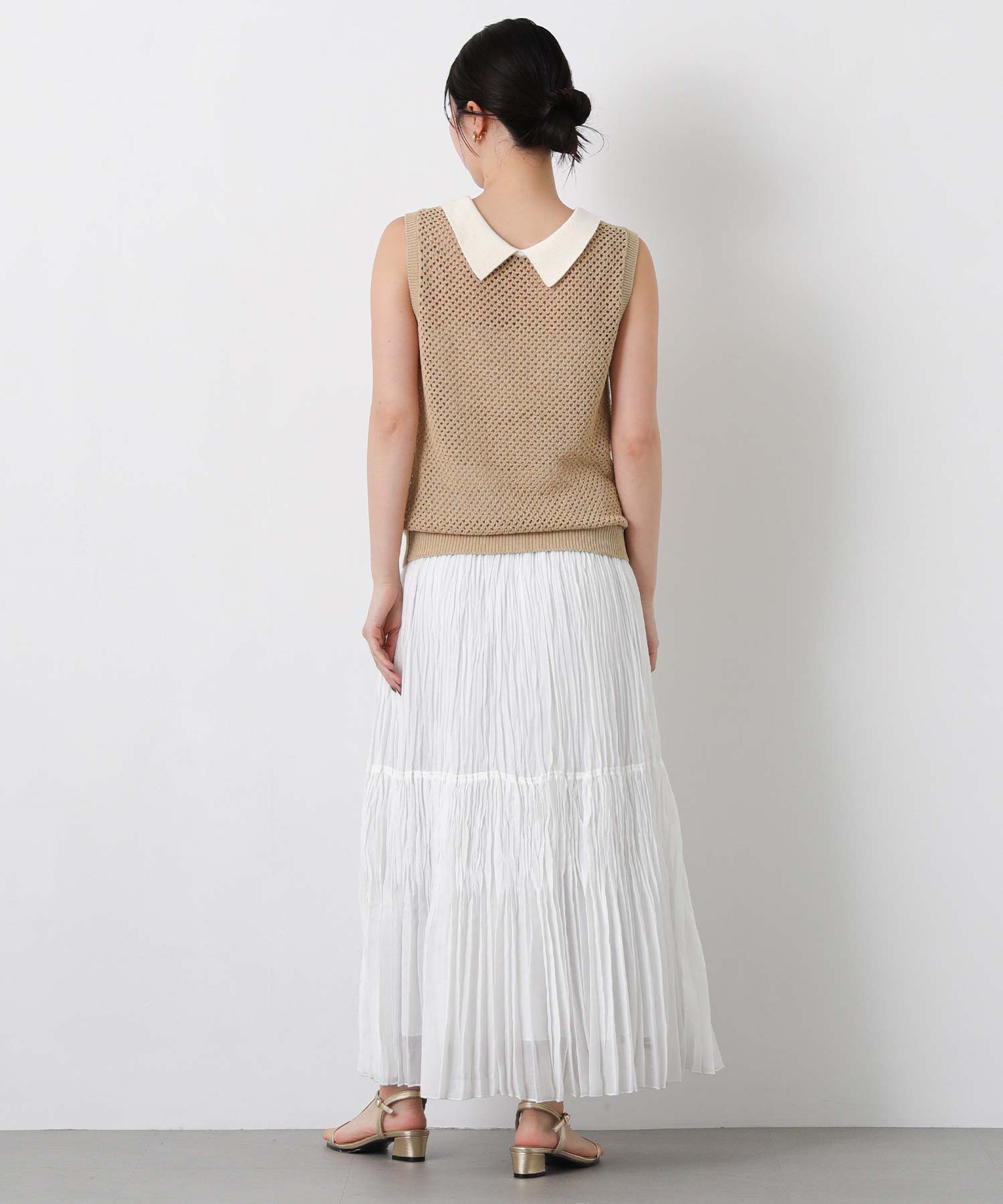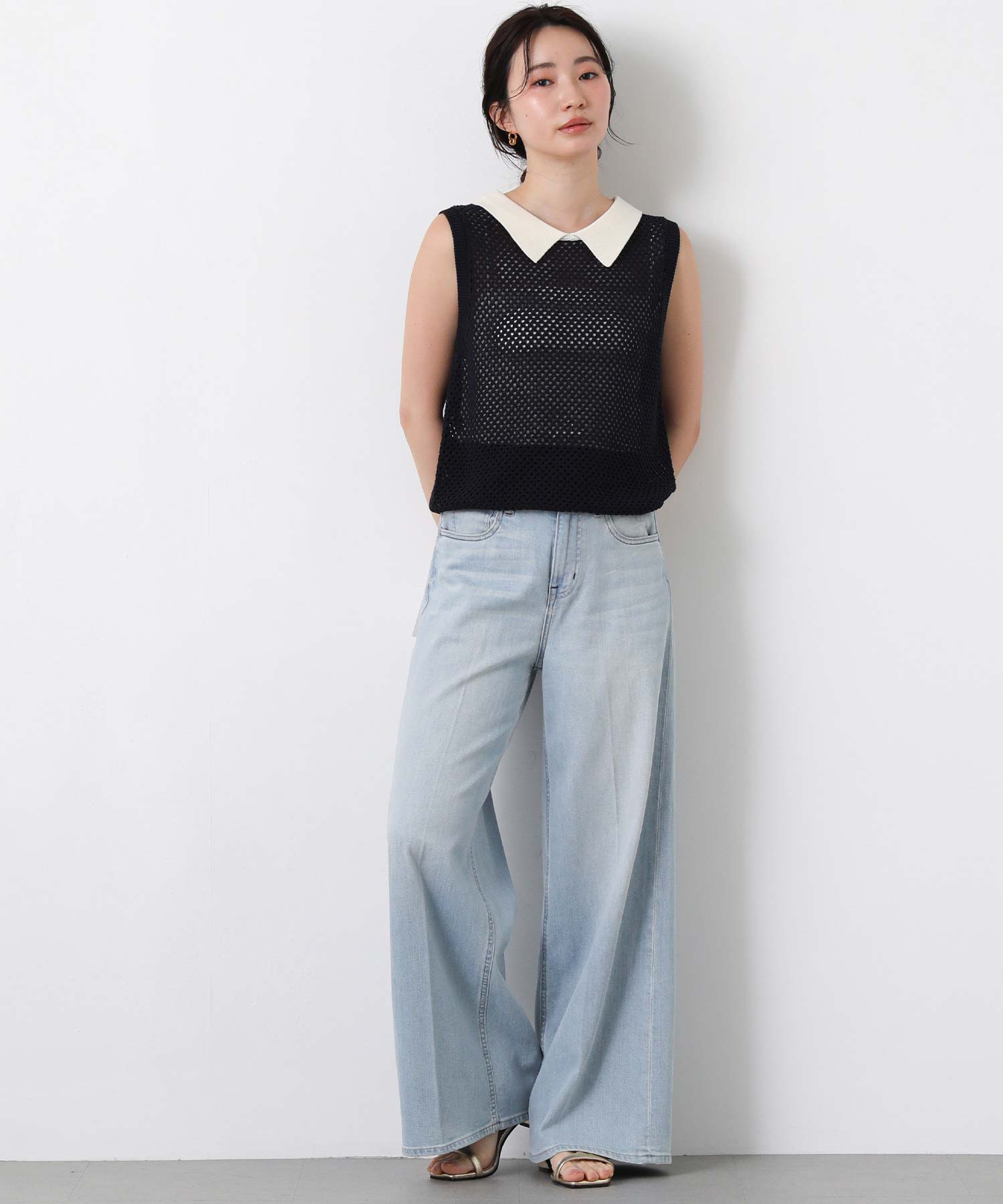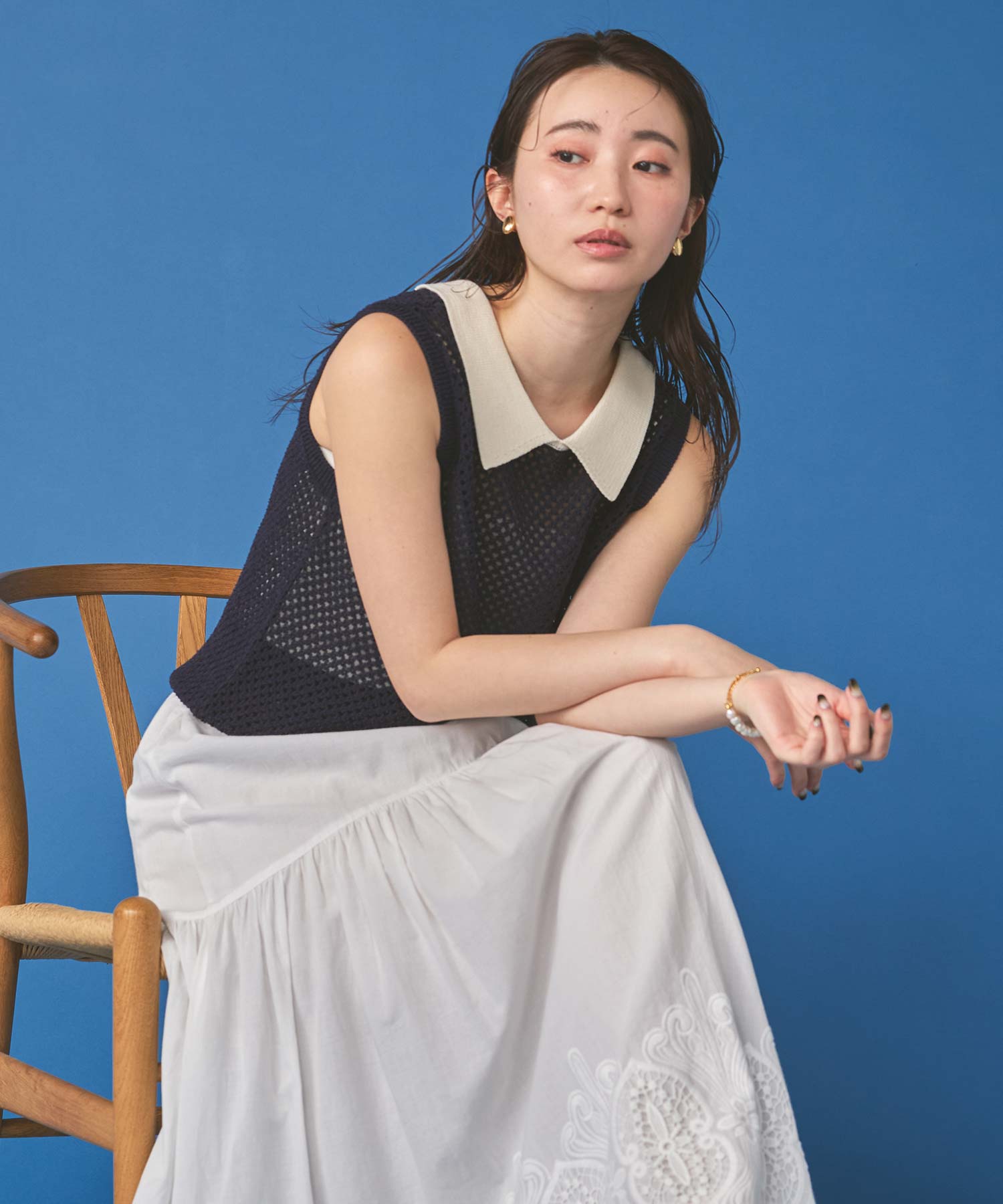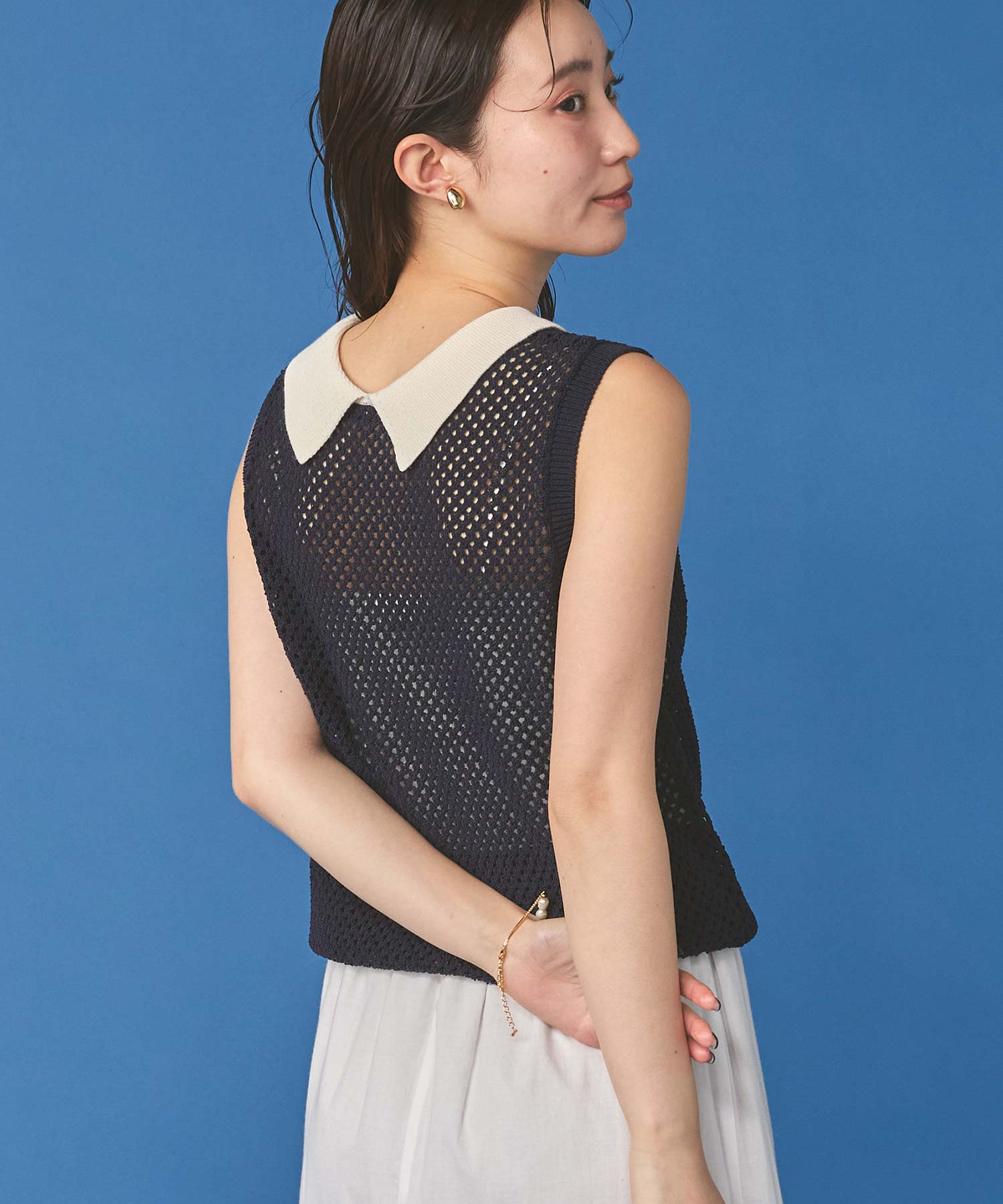 【TorrazzoDonna(トラッツォドンナ)】から、上品なメッシュ編みにポロ衿を付けたサマーニットをセレクト。