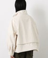 内側に折り返してスナップボタンを留めると着丈が17cmほど短くなり、フィールドジャケットがショートブルゾンに早変わり。