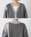 配色になったニットの上には、全体をくるむようにチュールをかぶせたデザインで、レイヤードの表情感が楽しめるアイテム。