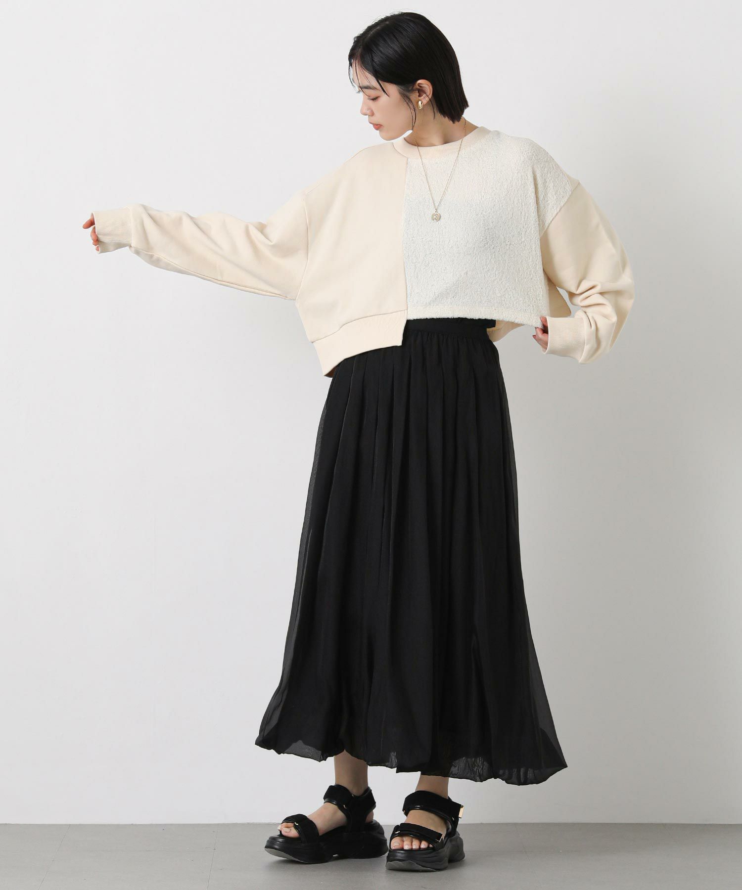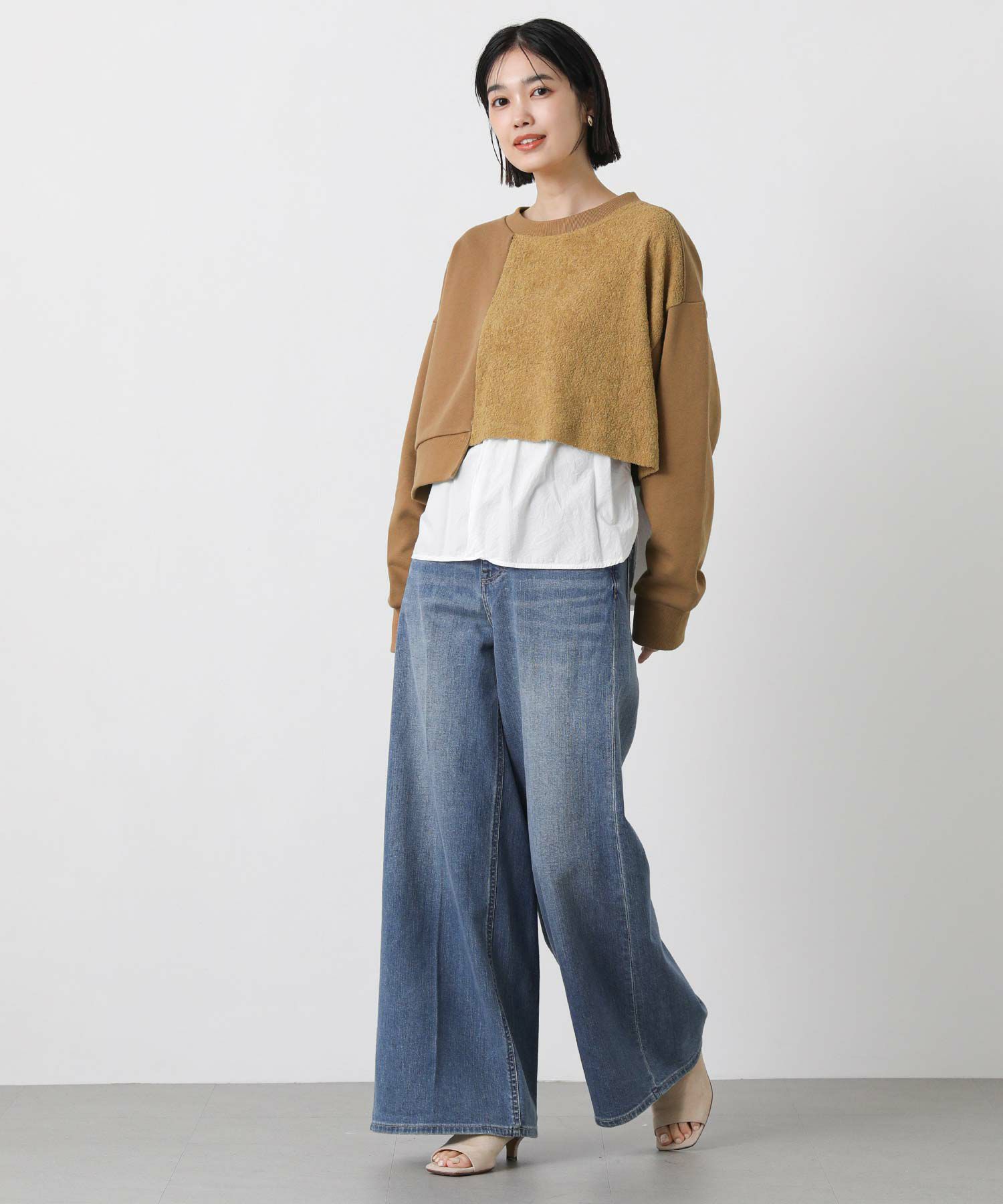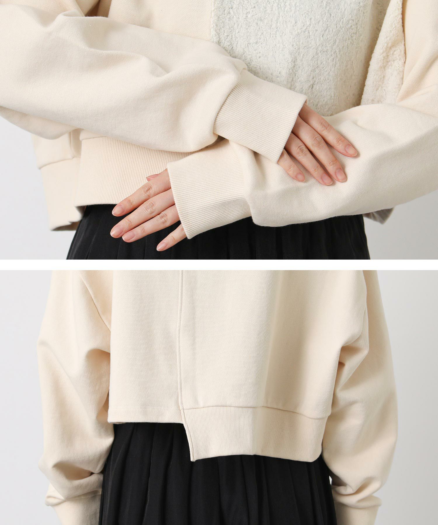 【Munich(ミューニック)】から、アシンメトリーな切り替えとトレンド感あるショート丈が魅力のデザインプルオーバーをセレクト。
