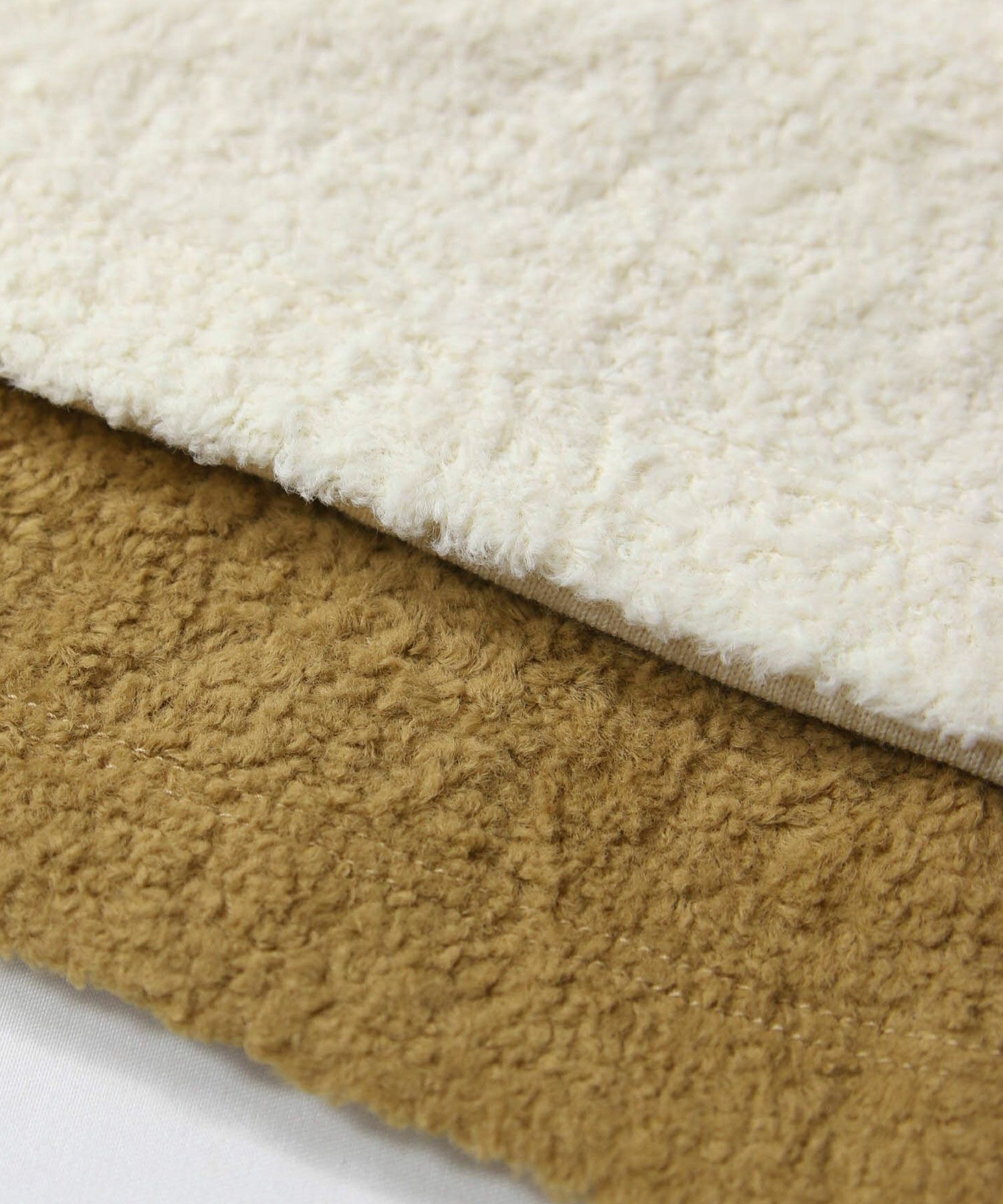 フロントの左身頃側のみ起毛感のあるフリース素材で切り替え、アクセントを加えています。