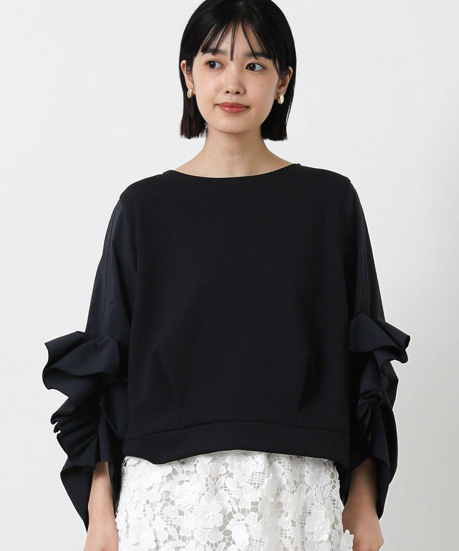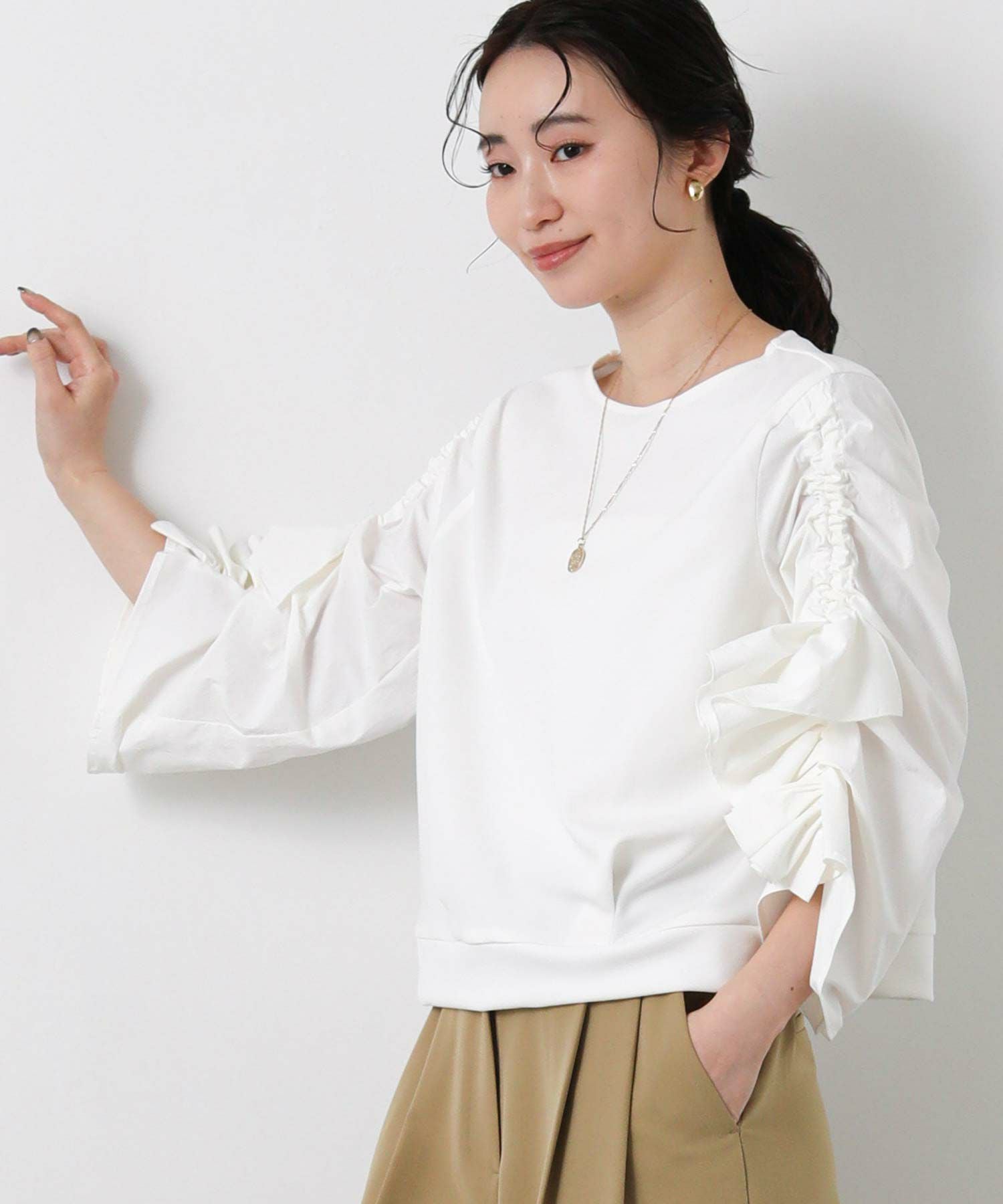 【MARECHALTERRE(マルシャルテル)】から、フェミニンなフリルギャザーが華やかに揺れるボリューム袖が特徴のプルオーバーをセレクト。