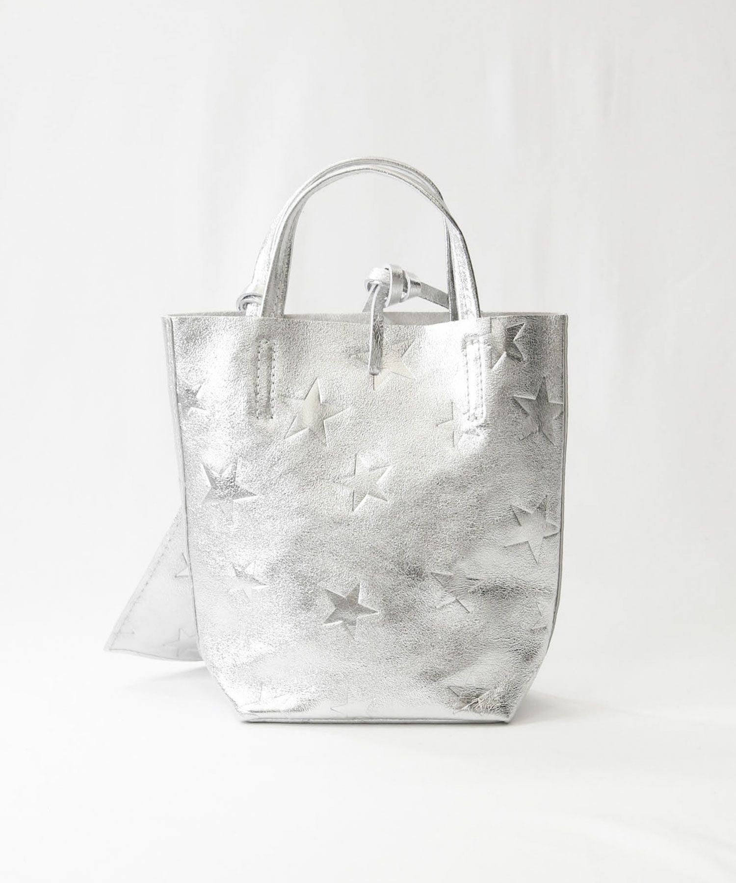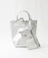 柔らかくリッチな質感のレザーにメタリック加工を施したミニトートバッグ。