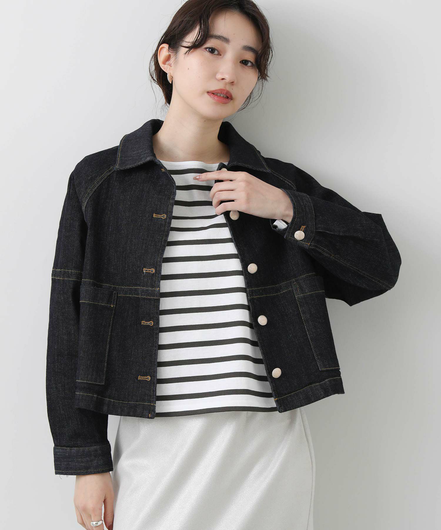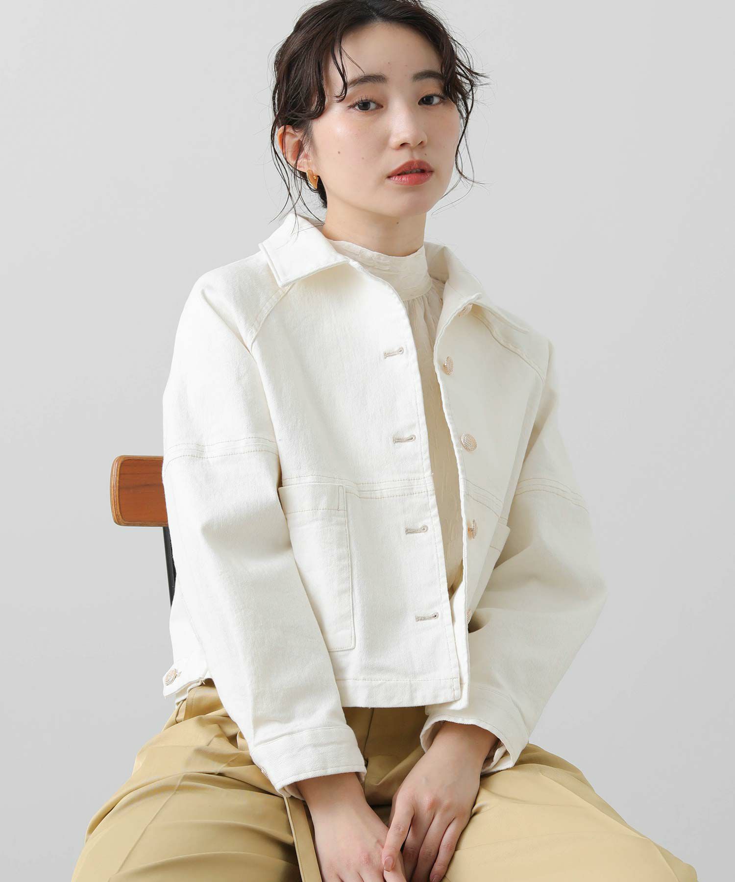デニムのカジュアル感を楽しみつつ、女性らしい着こなしにもマッチするGジャン。襟付きだと、前を開けて着た時にサマになります。存在感のあるゴールド釦や配色ステッチがポイントでシンプルになり過ぎず、ストレッチが効いているので着心地が良いのも特徴です。