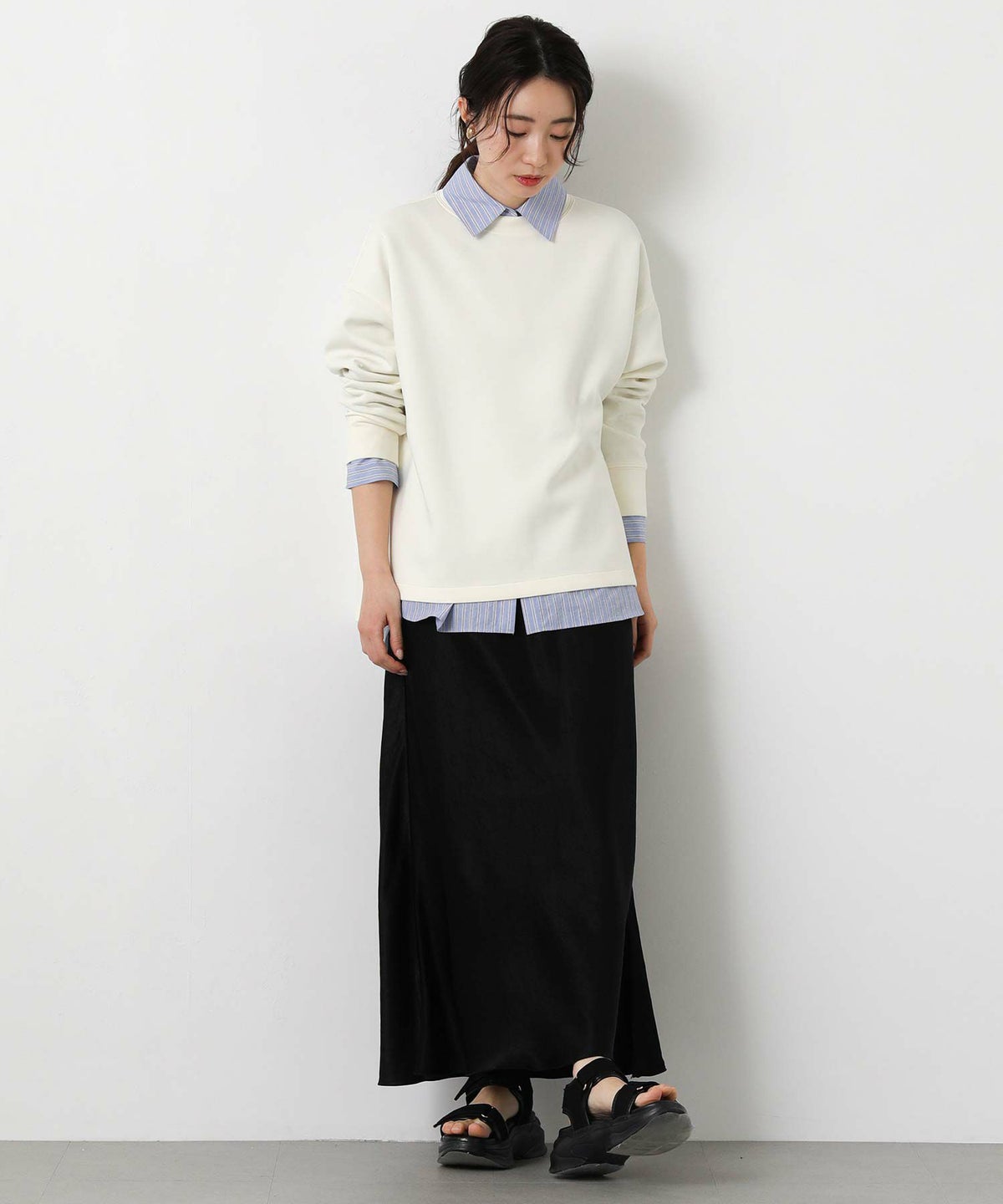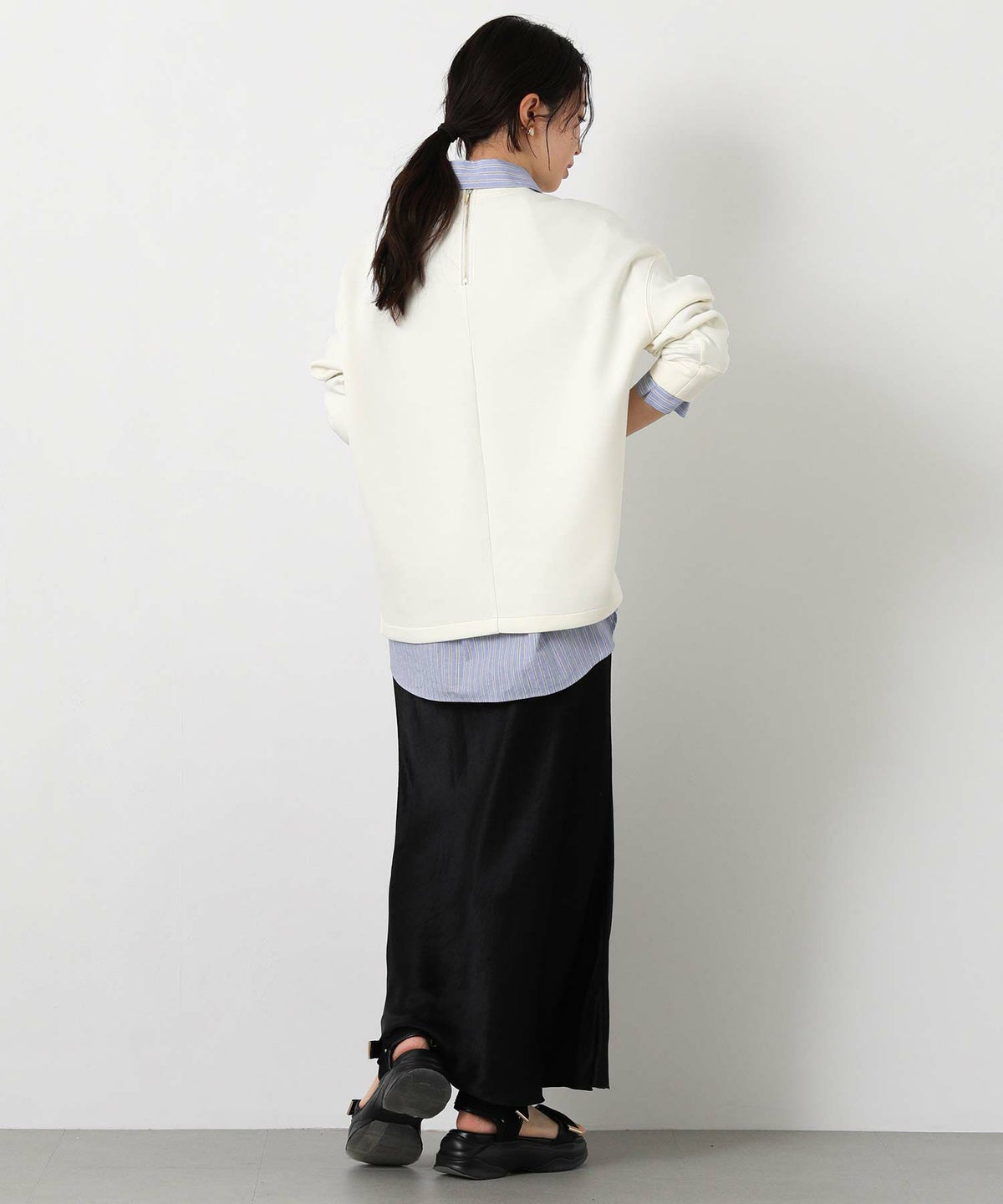 LU浅Vネック後スリットプルオーバー