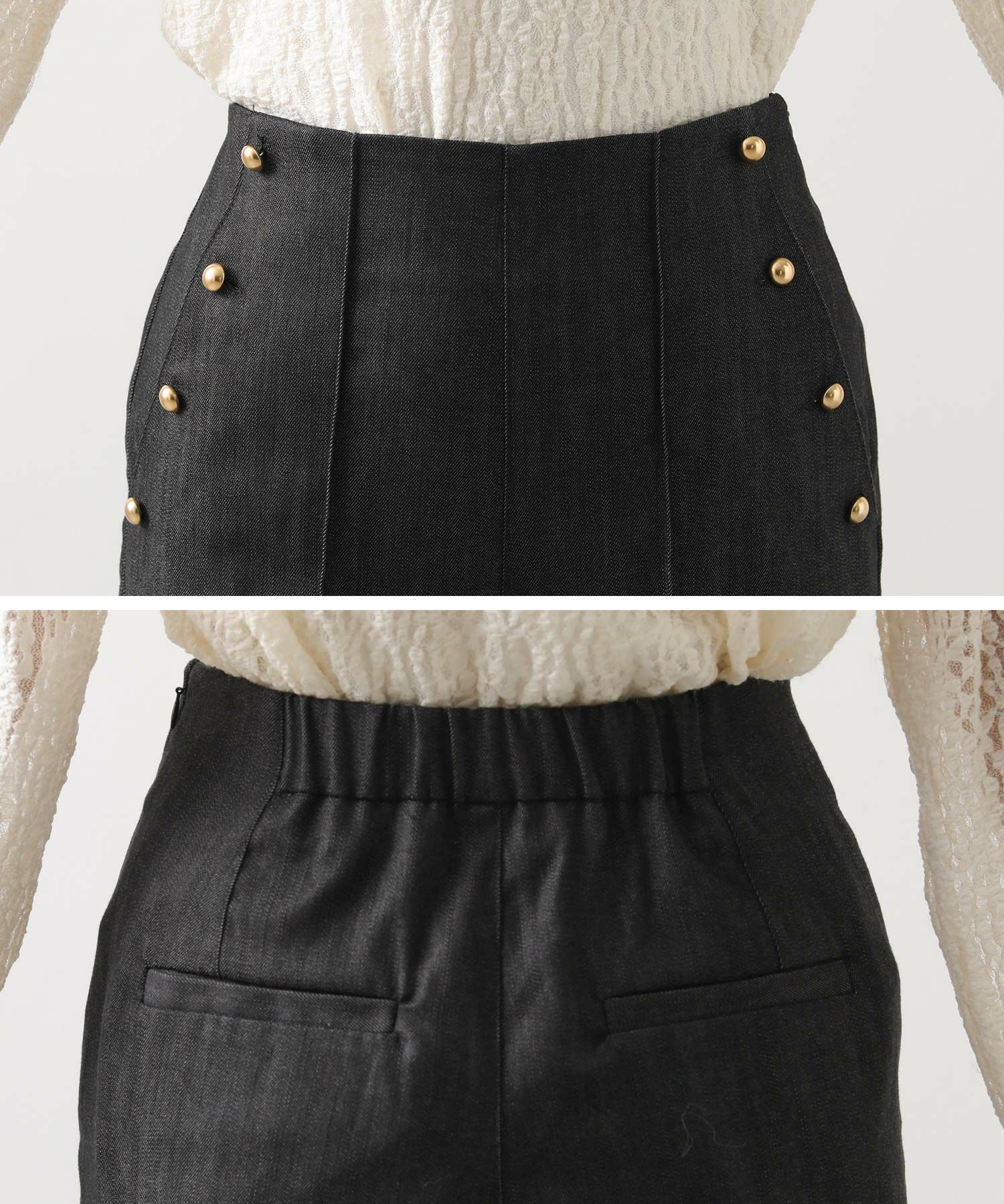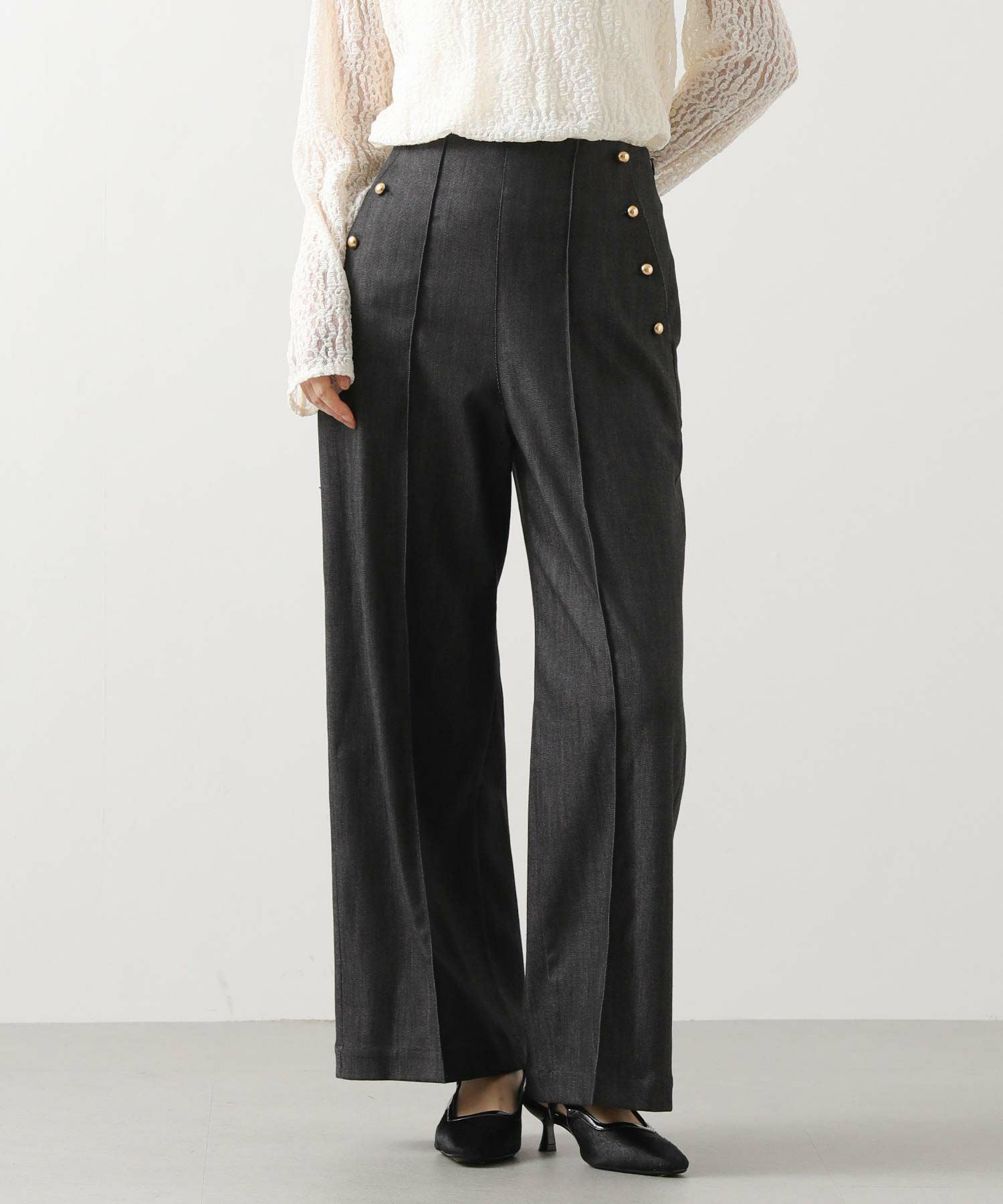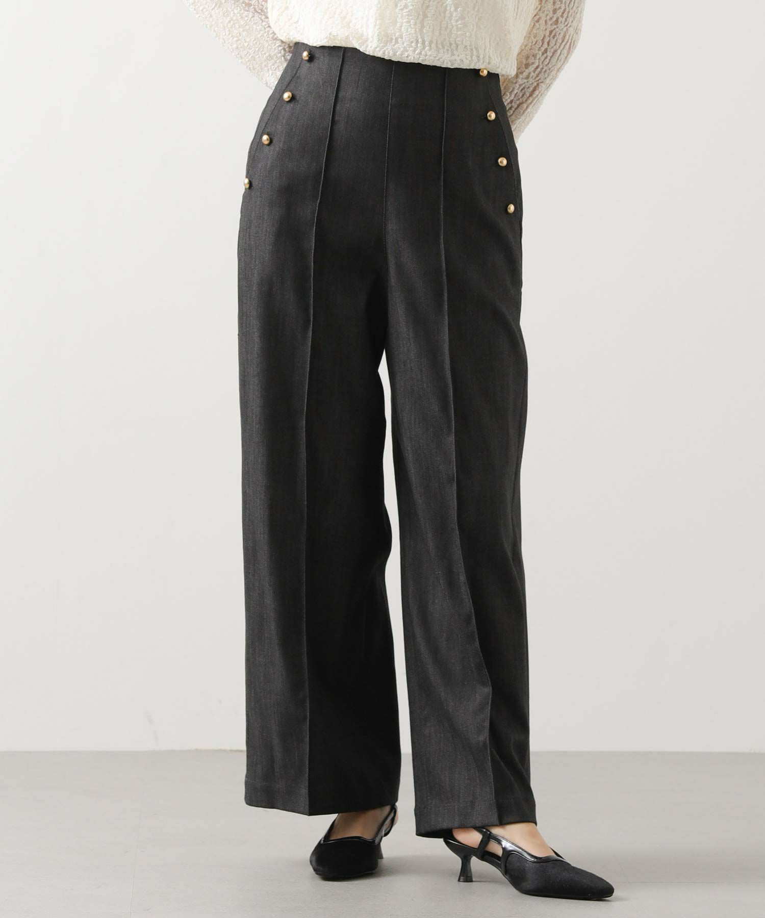 脇にキラッと光る金釦がポイント。カジュアルになりすぎず、シンプルなカットソーやシャツ合わせでも上品な大人のカジュアルスタイルが決まります。