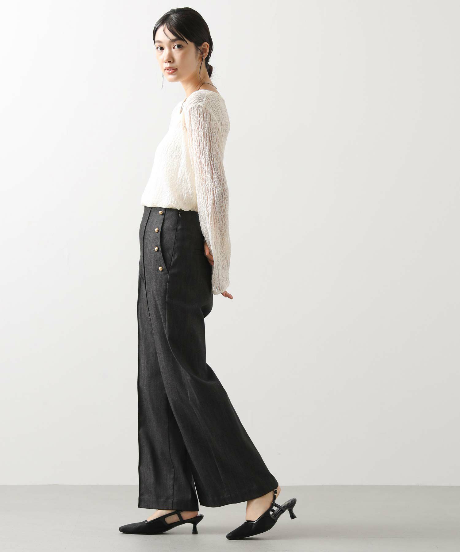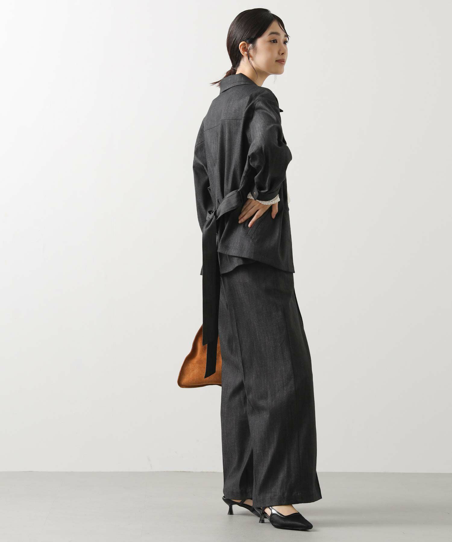 デニムベルト付きジャケット(OEO1034412010)とセットアップでの着用もオススメ。