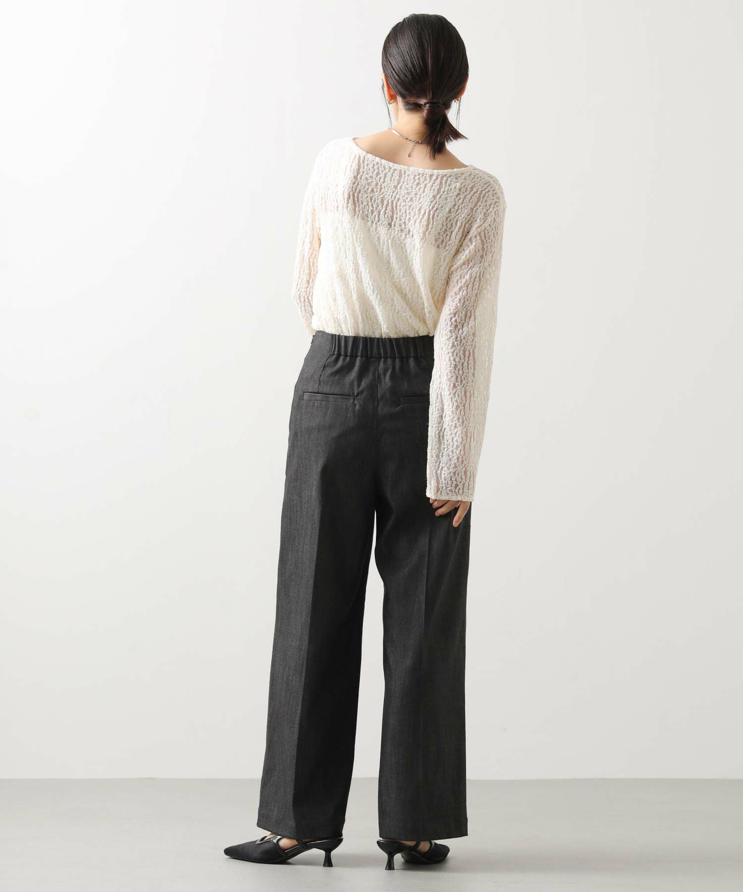 インディゴ特有の色落ちをしない特殊な生地を使用している為、スタイリングするアイテムを選ばずに着用頂けます。