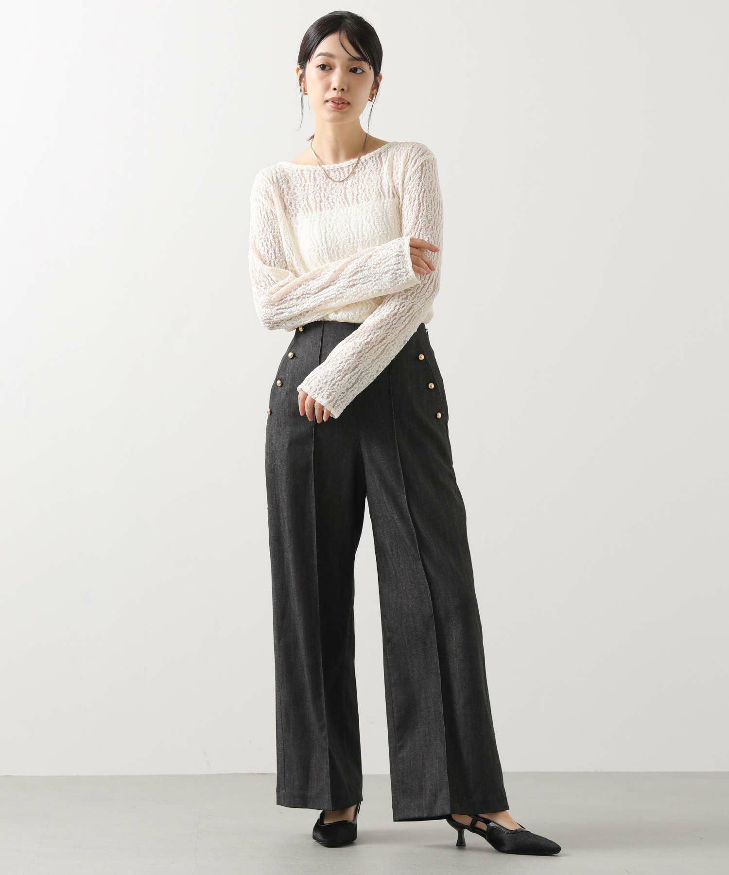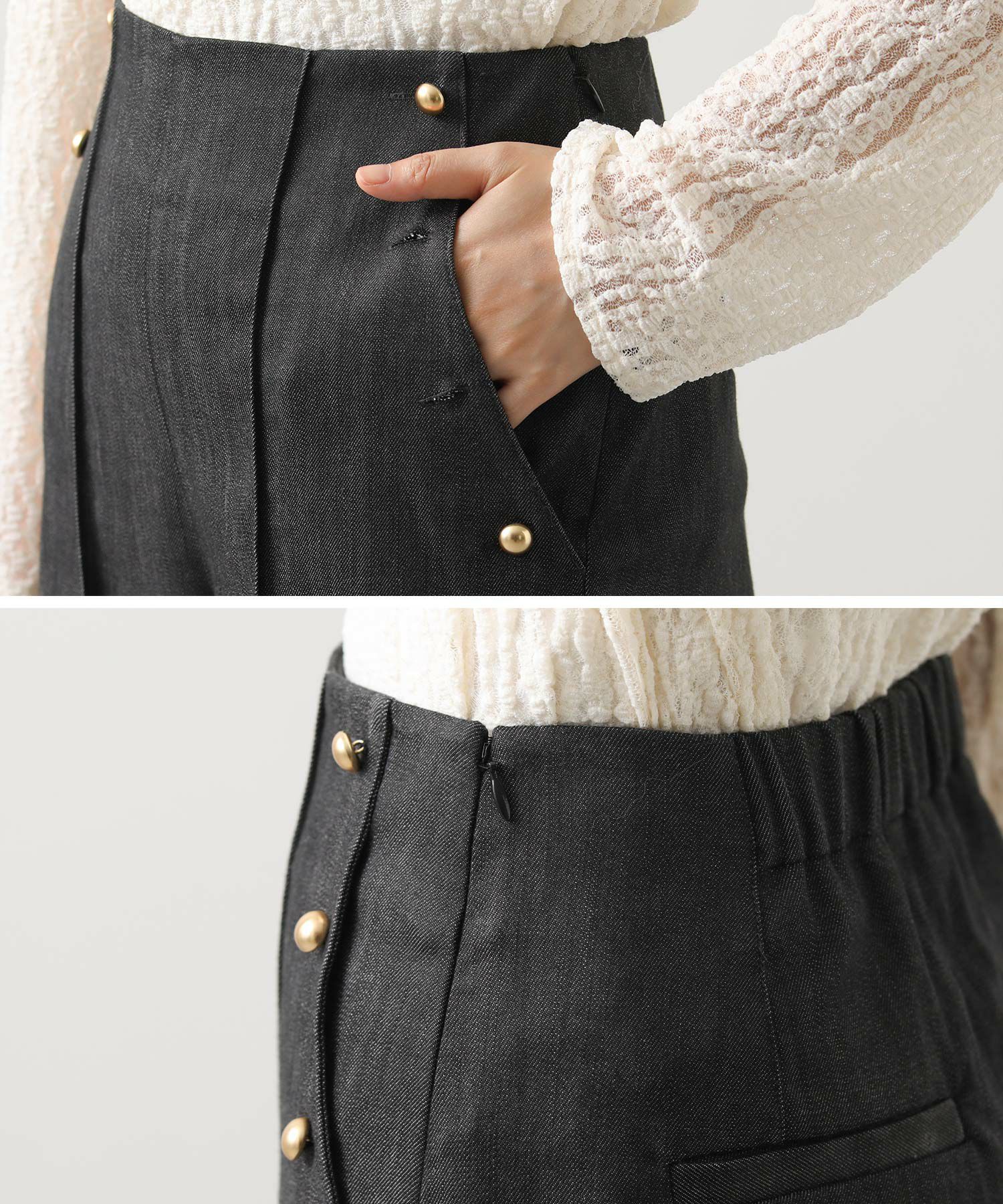 ※着用画像は撮影状況、光の当たり具合で色みが違って見える場合がございます。実際の色みについては、画像一覧の最後に掲載している詳細画像をご参照ください。