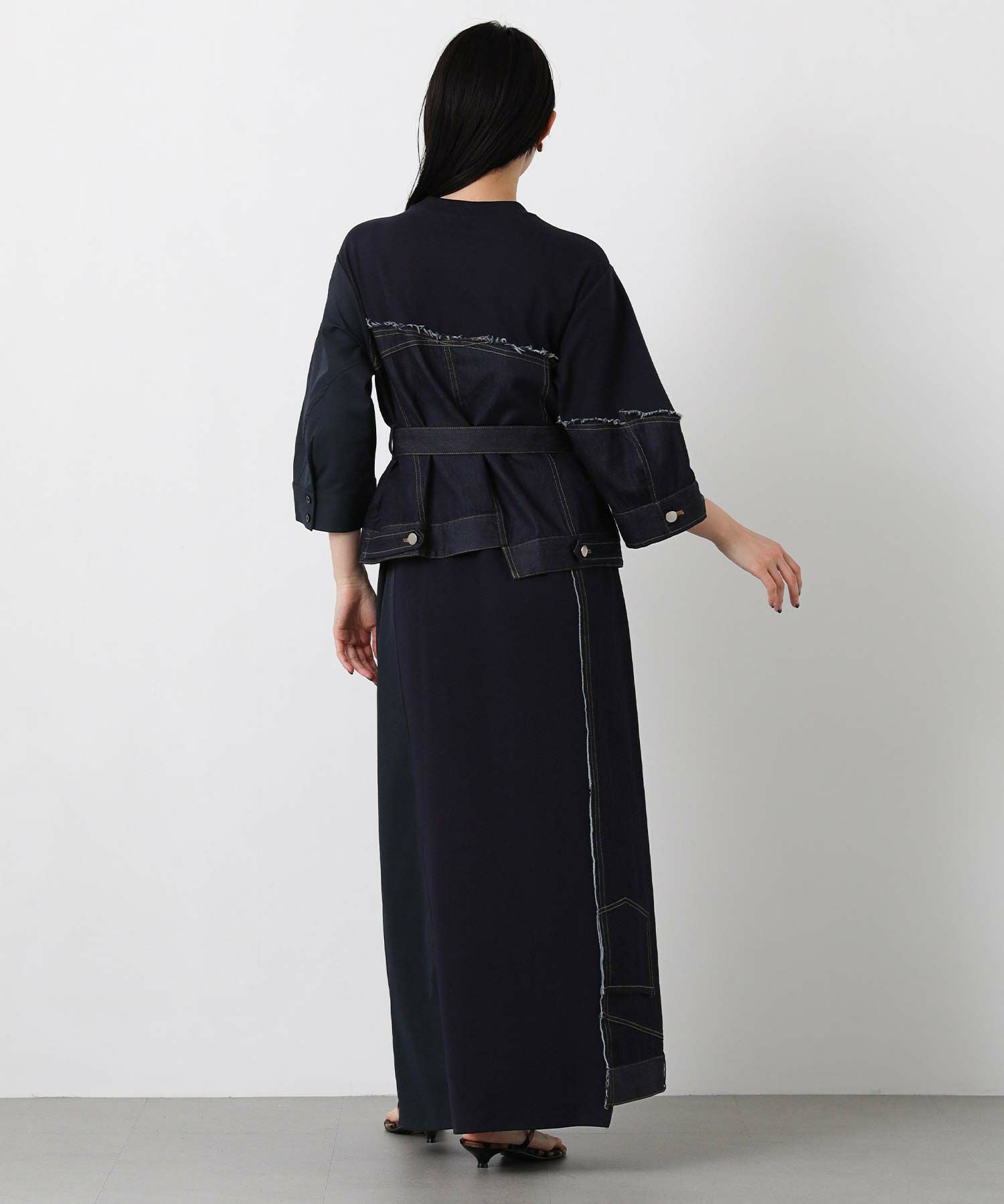 【AULAAILA(アウラアイラ】から、軽くて柔らかく肌触りの良いコットンスムースの素材に、ライトオンスデニムとストレッチタフタをコンビネーションしたワンピースをセレクト。